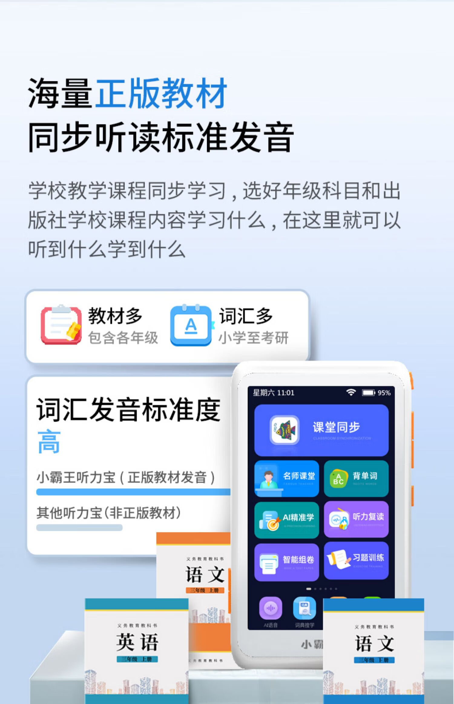 Xiaobawang Learning Machine Pocket Repeater Hearing Treasure Primary School Junior High School High School Synchronous Reading Machine Portable Learning Machine 5.5-inch high-end version C3 (textbook reading) 64G/genuine textbook full subject video explanation