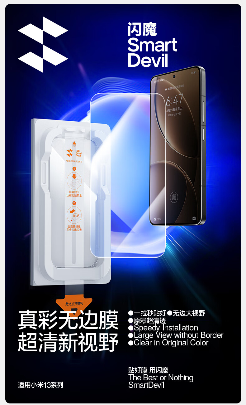 Flash Magic suitable for Redmi k80/pro tempered film redmiK70 mobile phone film champion version full screen high-definition anti-fingerprint anti-fall protection 2 pieces * seconds to apply one cover and one pull | ultra-clear edge-less film k80/80pro/champion version