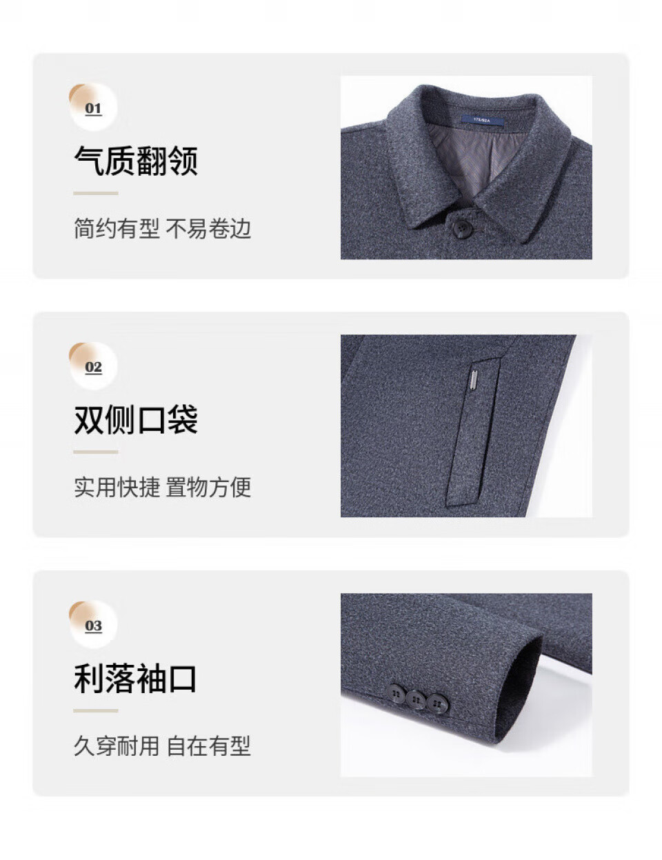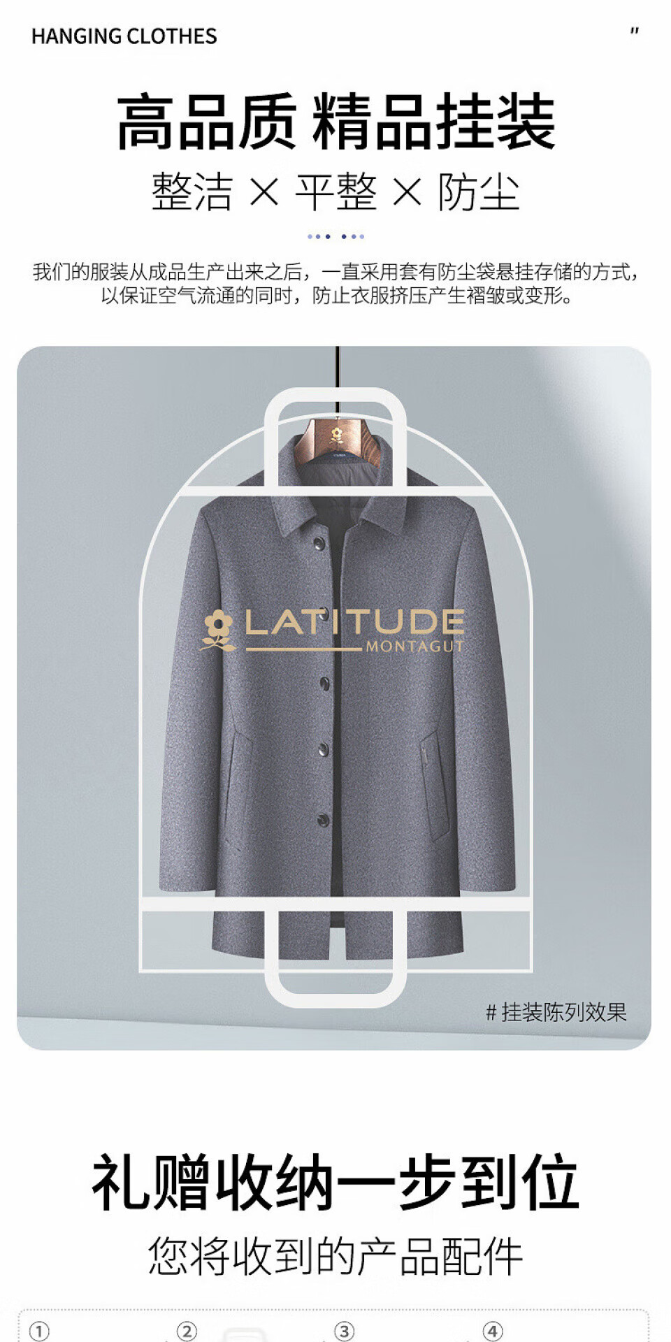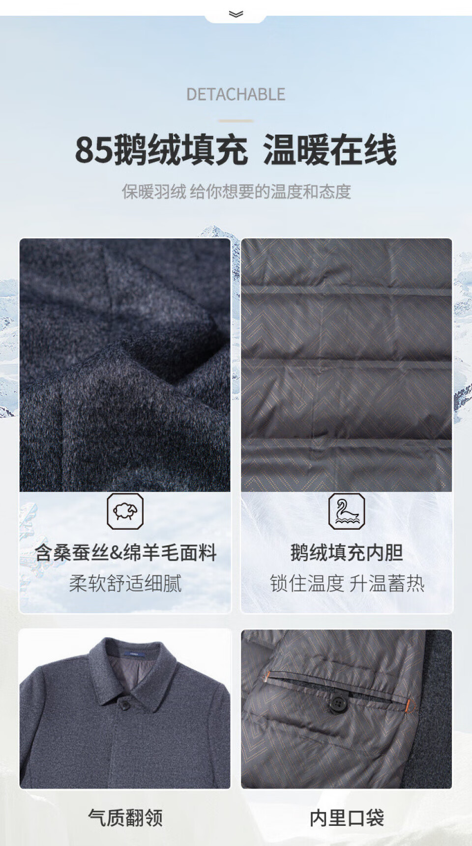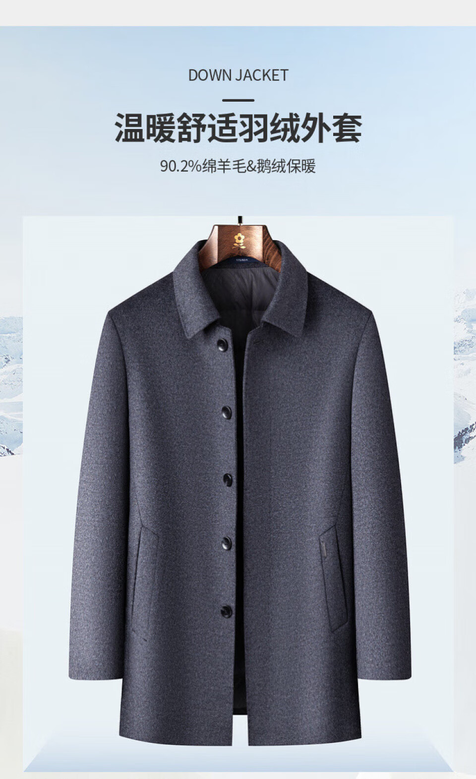 Montagut Wool Silk & Goose Down Warm Winter Men's Woolen Coat Thickened Warm Goose Down Jacket Dark Gray M /48