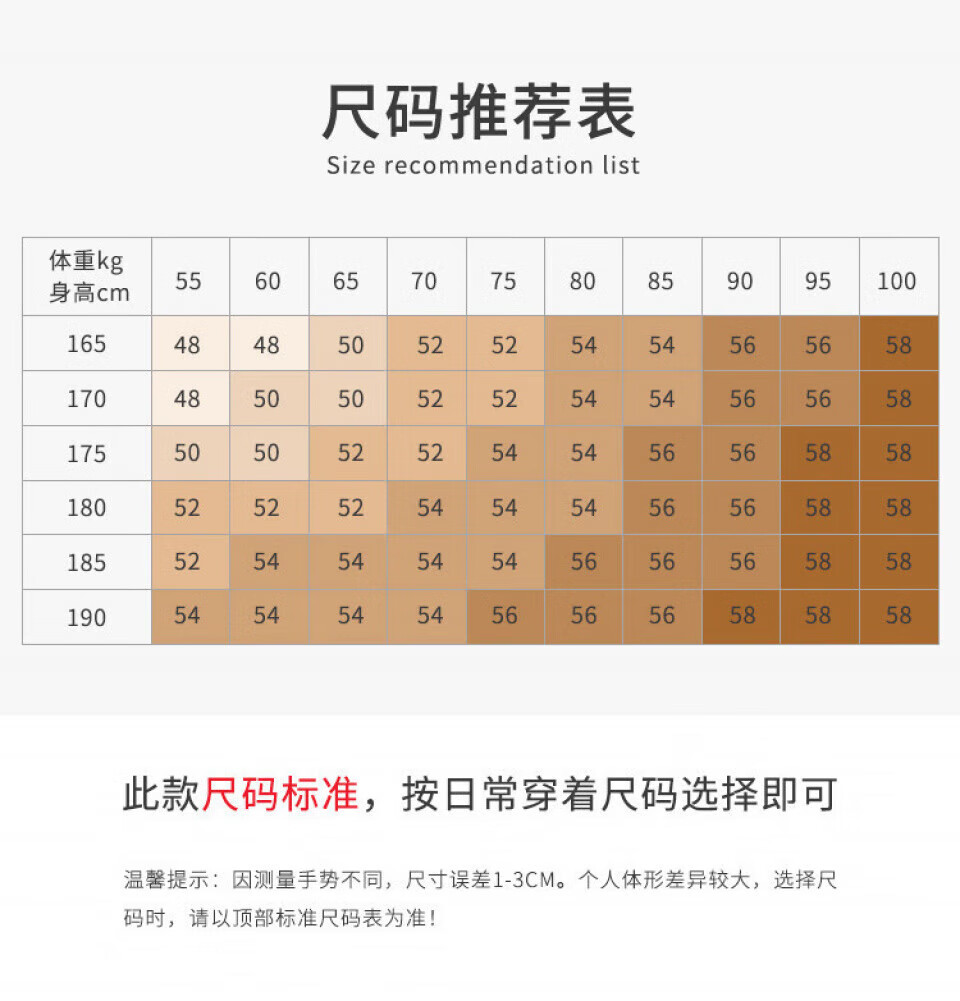 China (cm) 160-165/84-86 165-170 / 88-90 167-172 / 92-96 168-173 / 98-102 170-176 / 106-110
