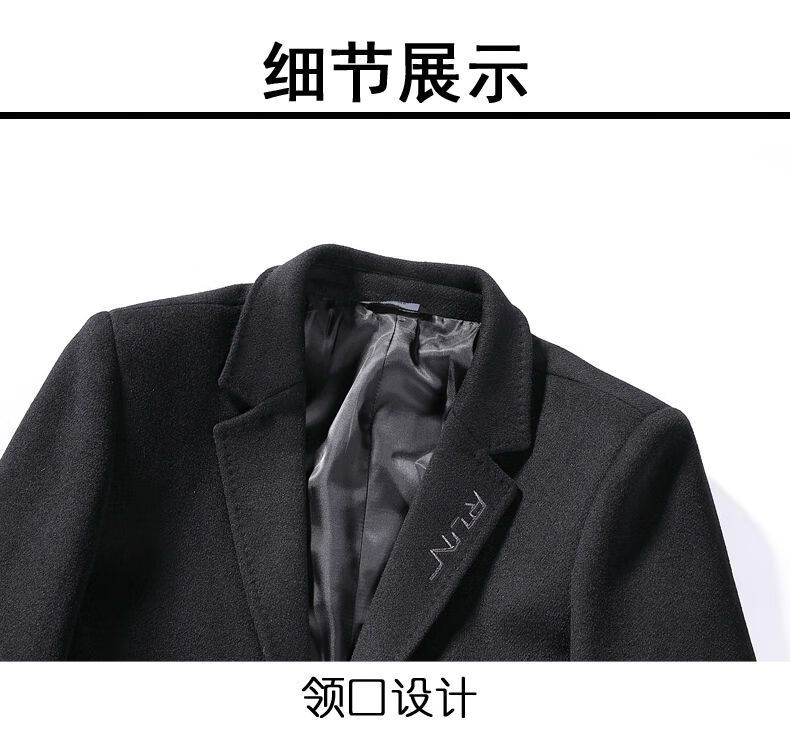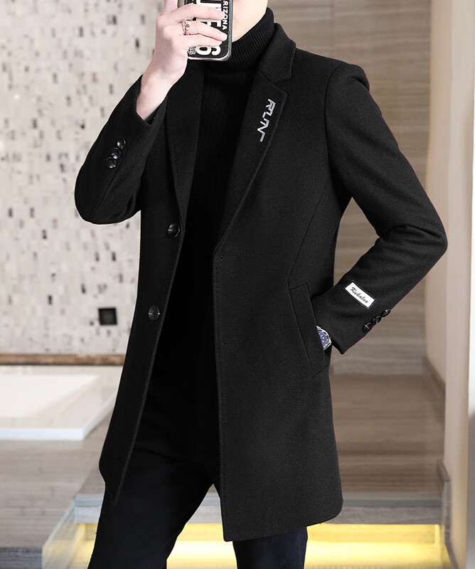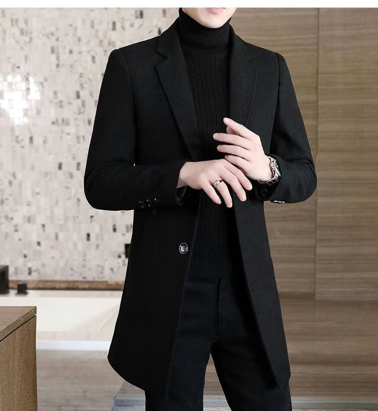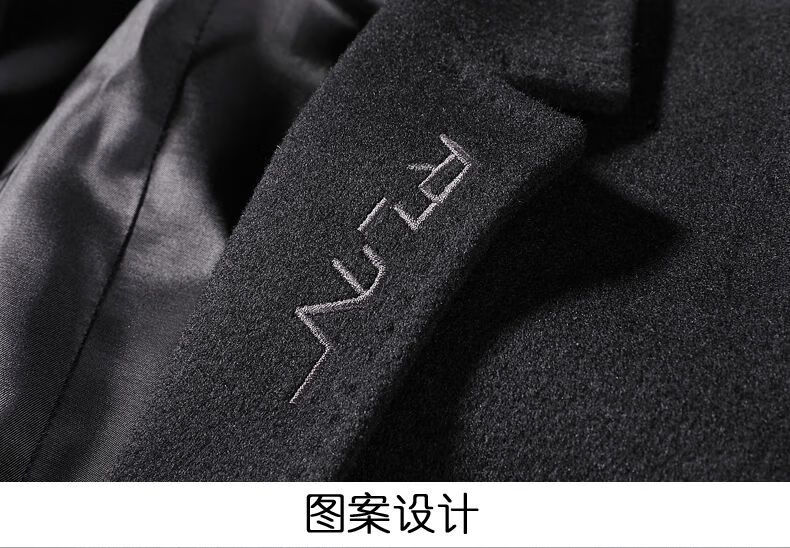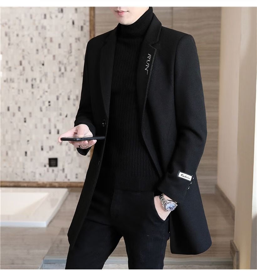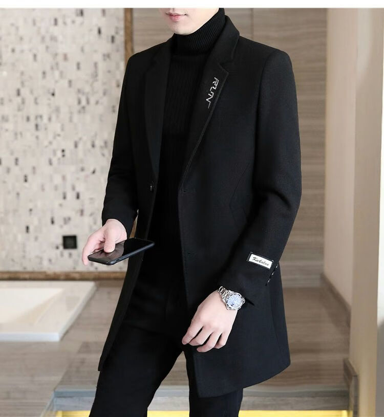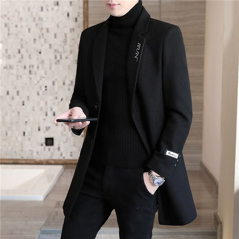 Playboy autumn and winter men's windbreaker mid-length Korean style slim woolen men's coat handsome high-end long woolen coat F81 black cotton thickened 2XL (130-145Jin Jin equals 0.5kg)