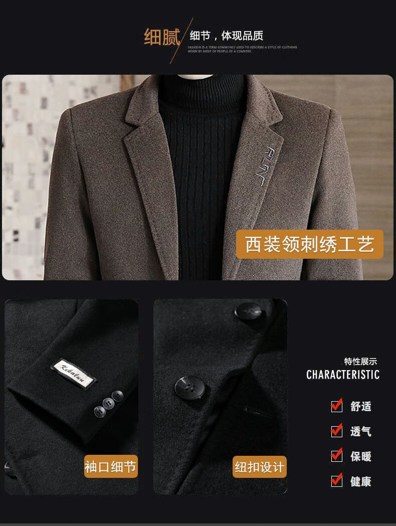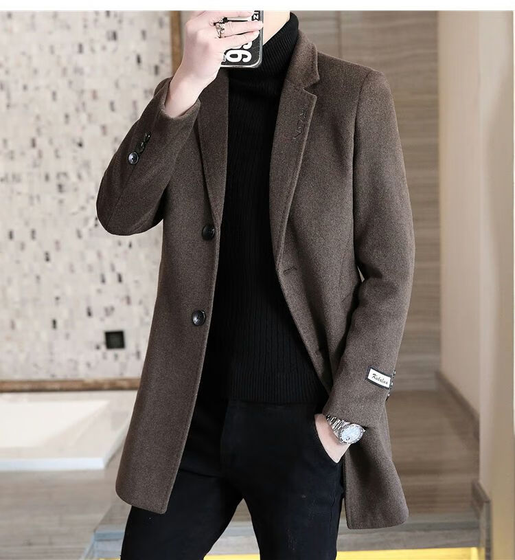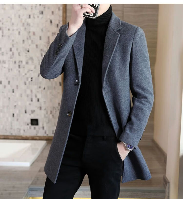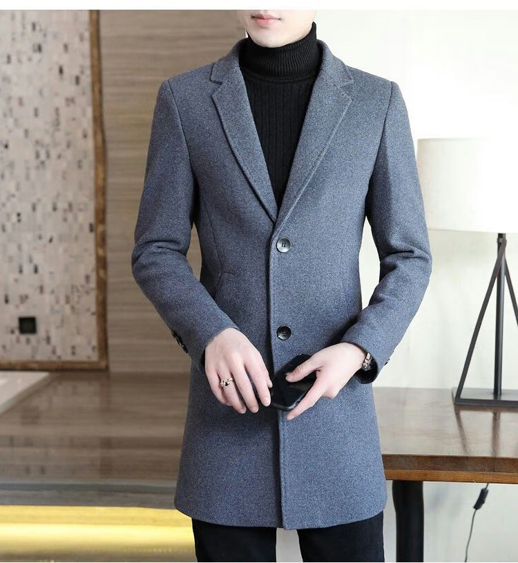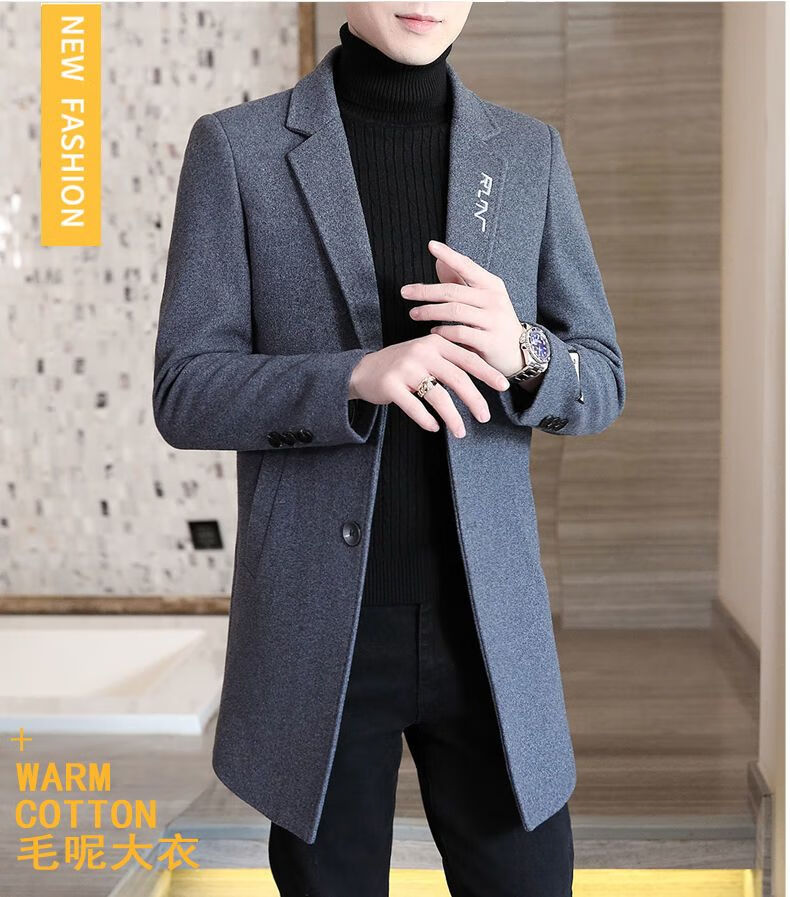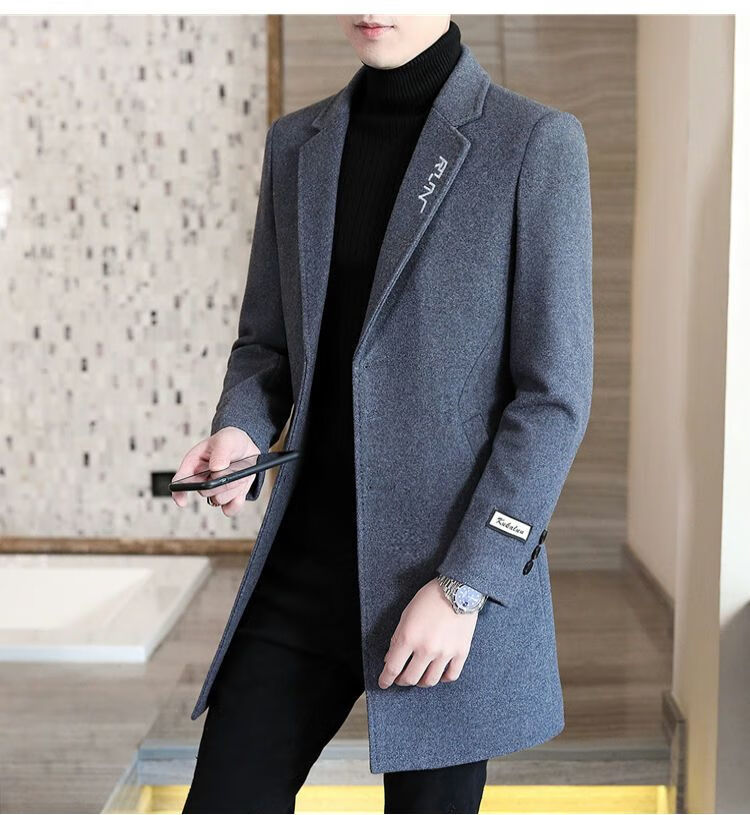 Playboy autumn and winter men's windbreaker mid-length Korean style slim woolen men's coat handsome high-end long woolen coat F81 black cotton thickened 2XL (130-145Jin Jin equals 0.5kg)