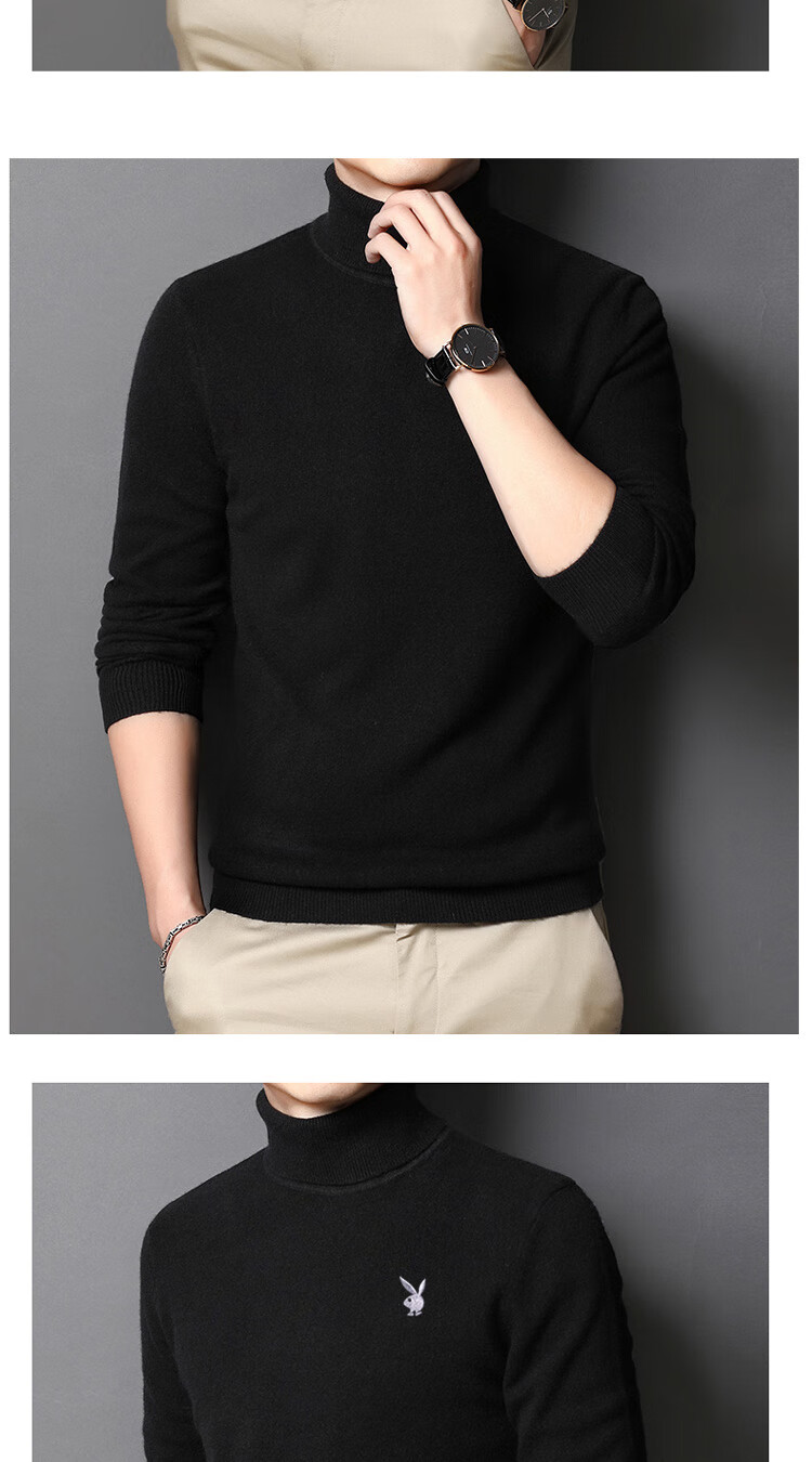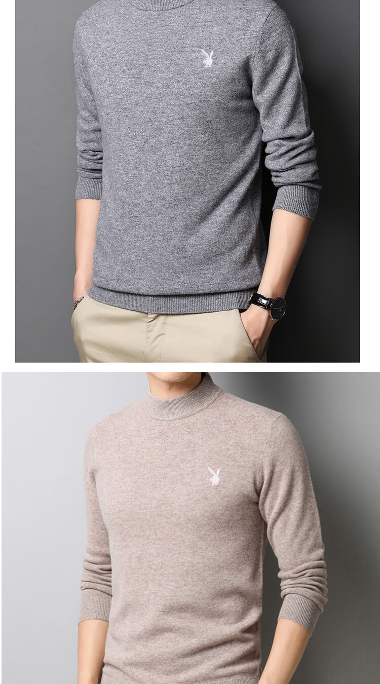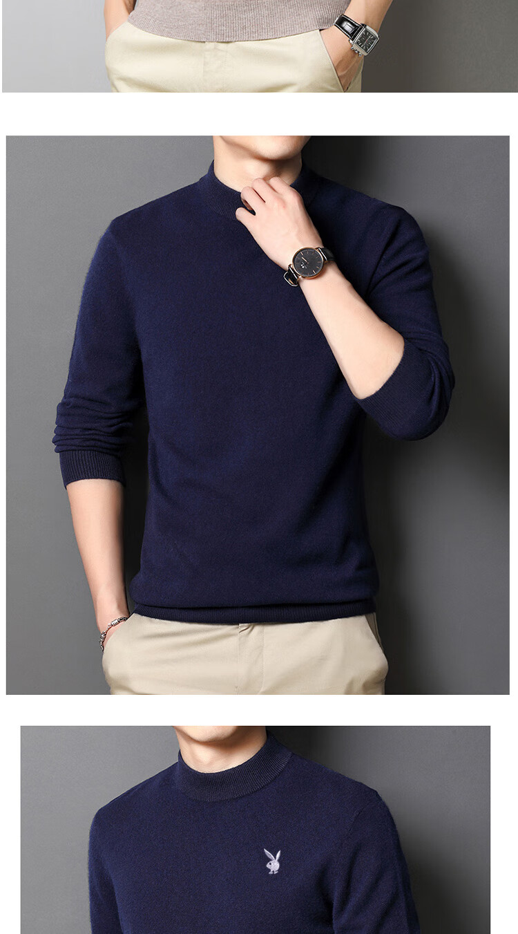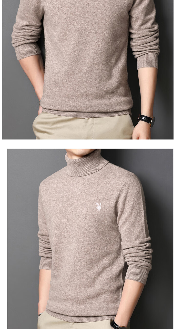 Playboy Cardigan Men's 100% Pure Wool Half Turtleneck Sweater Plus Velvet Thickened Warm One-piece Velvet Bottoming Shirt Men's Half Turtleneck Camel-Thick Velvet XL 175 Recommendation 130-150 Jin Jin is equal to 0.5 kg Wear