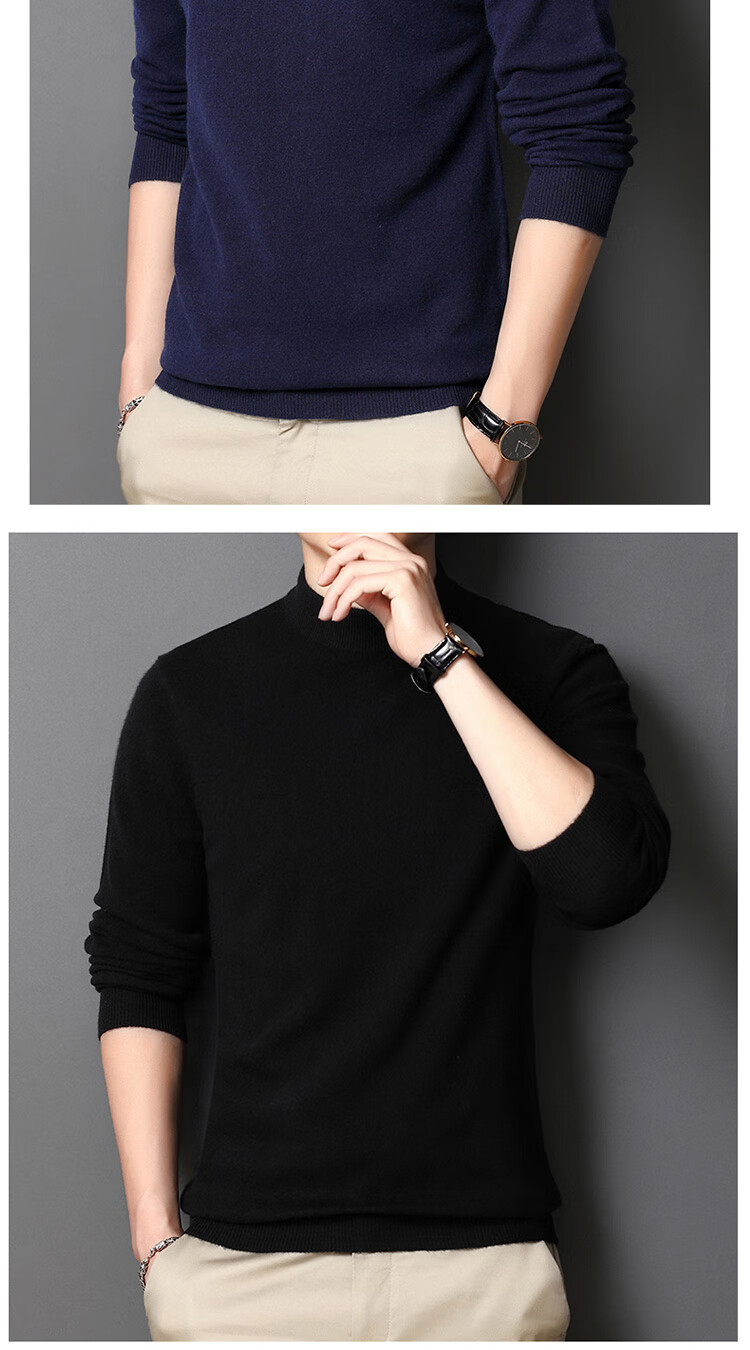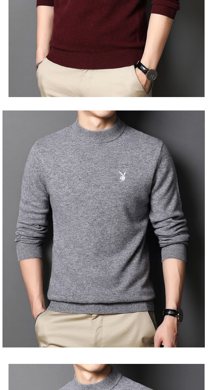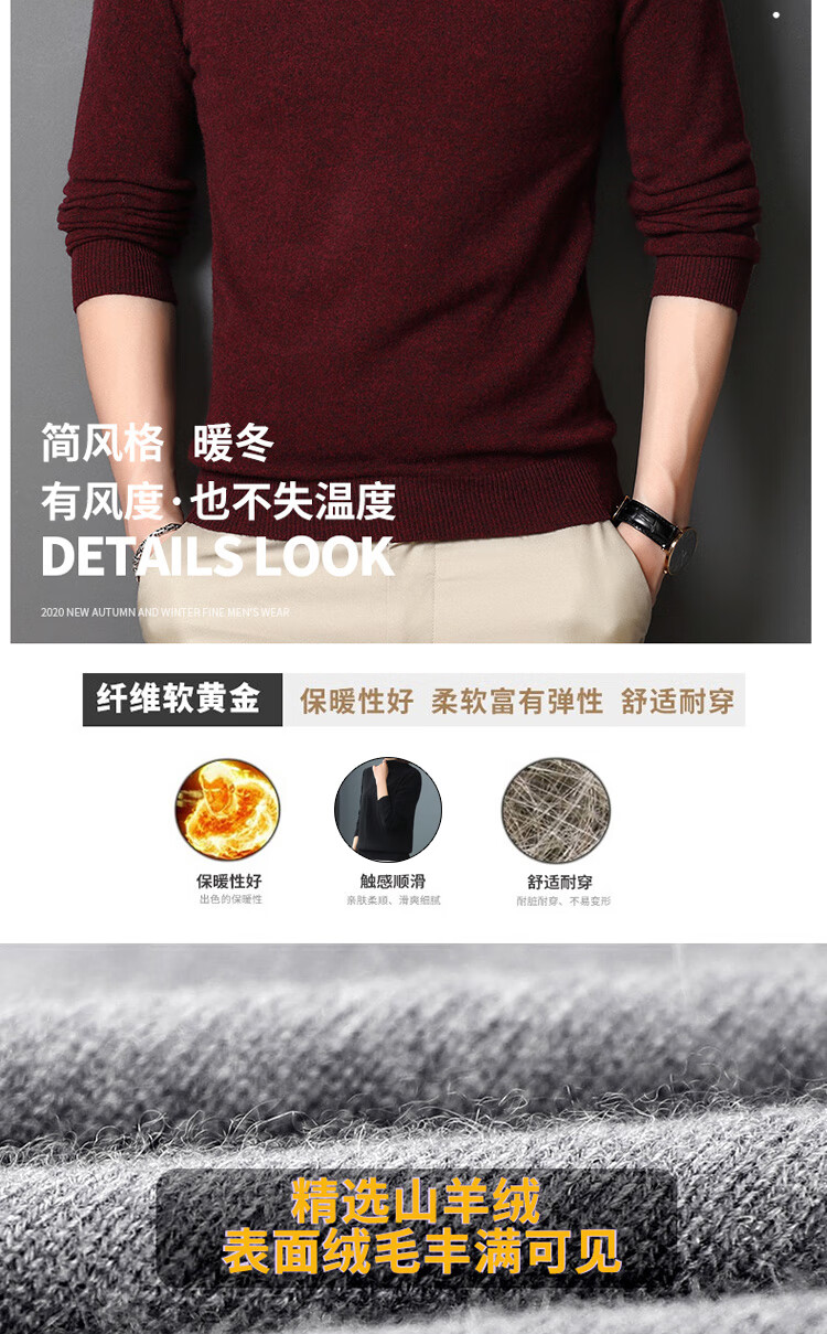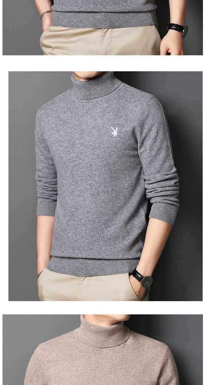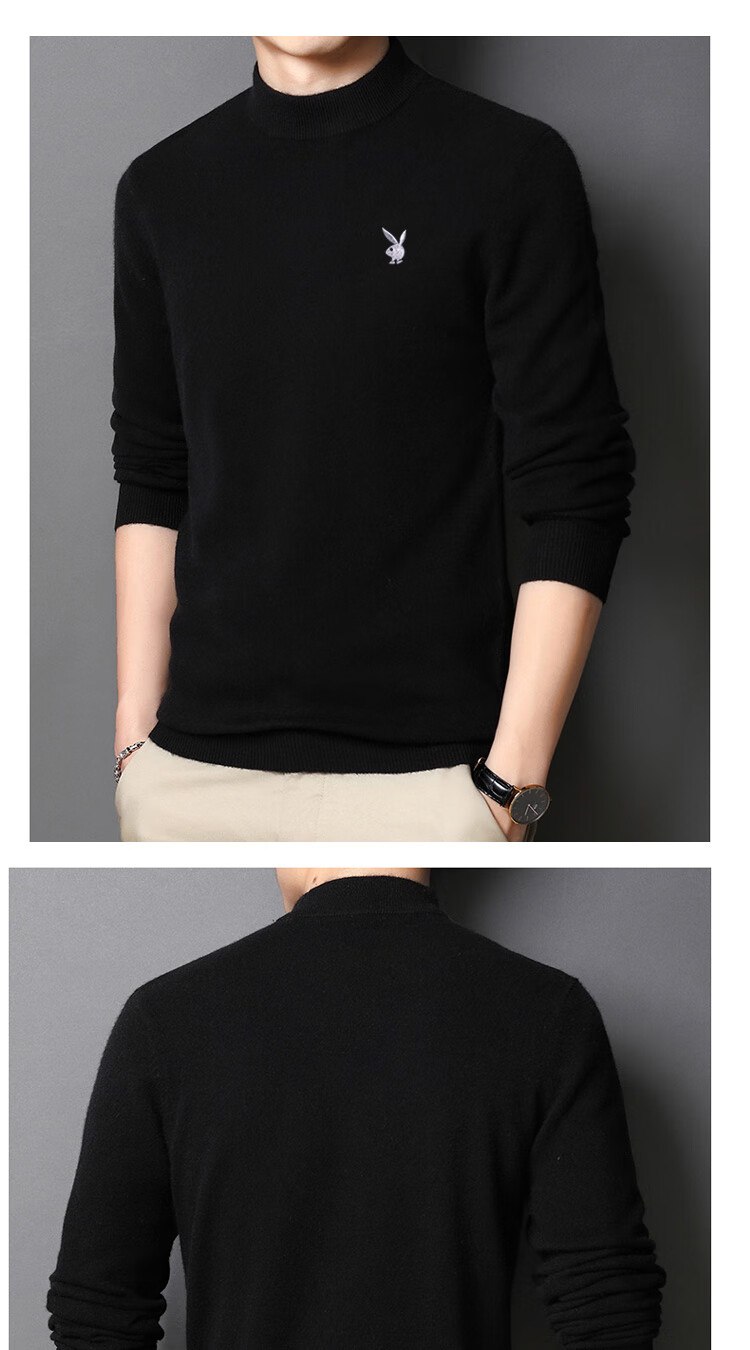 Playboy Cardigan Men's 100% Pure Wool Half Turtleneck Sweater Plus Velvet Thickened Warm One-piece Velvet Bottoming Shirt Men's Half Turtleneck Camel-Thick Velvet XL 175 Recommendation 130-150 Jin Jin is equal to 0.5 kg Wear