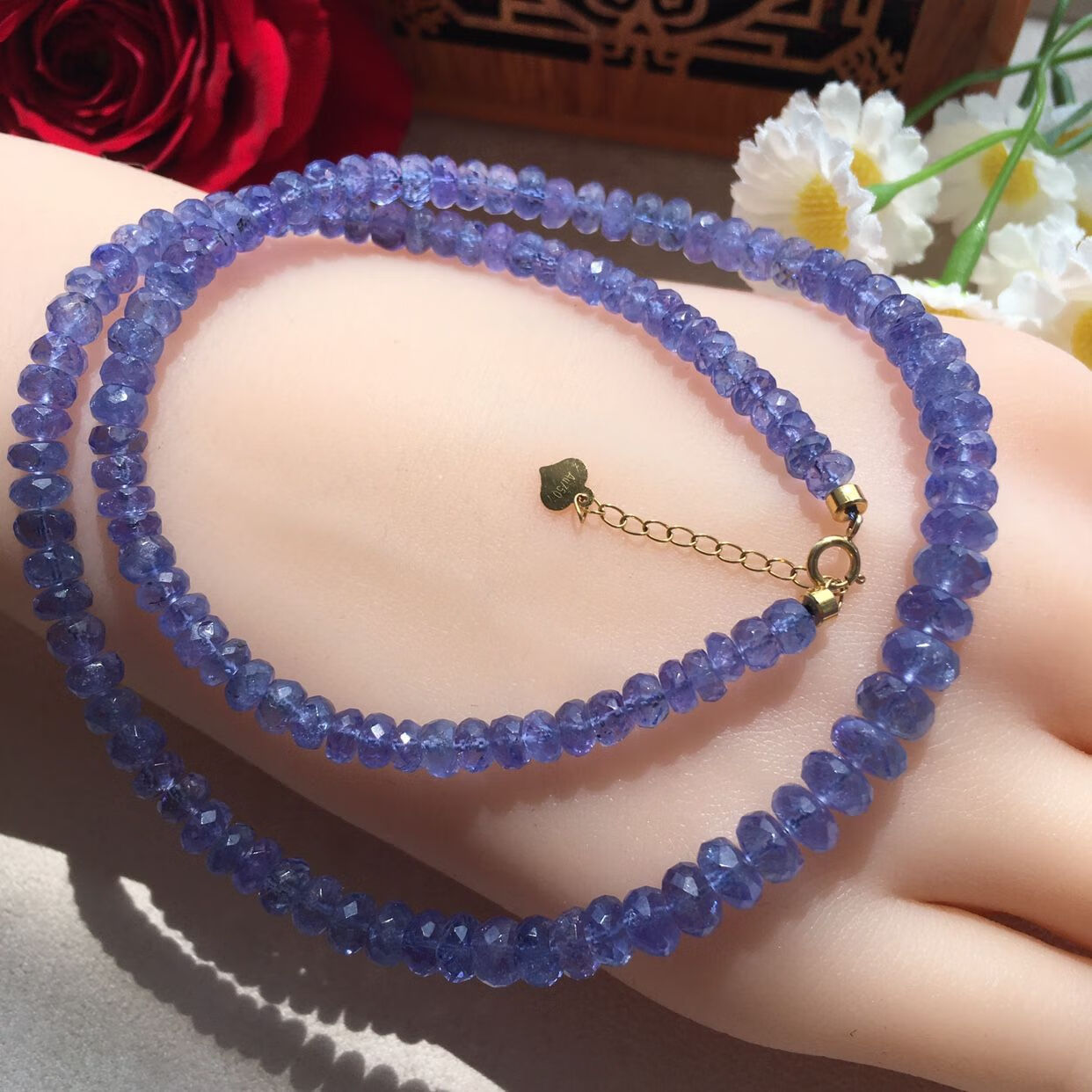 Peimeng light blue slightly purple tanzanite bead necklace bracelet with smooth facet and elegant temperament that matches the skin color of women. Fanta stone moonlight 18 gold faceted tanzanite necklace 4 o'clock 1-5 o'clock 8m