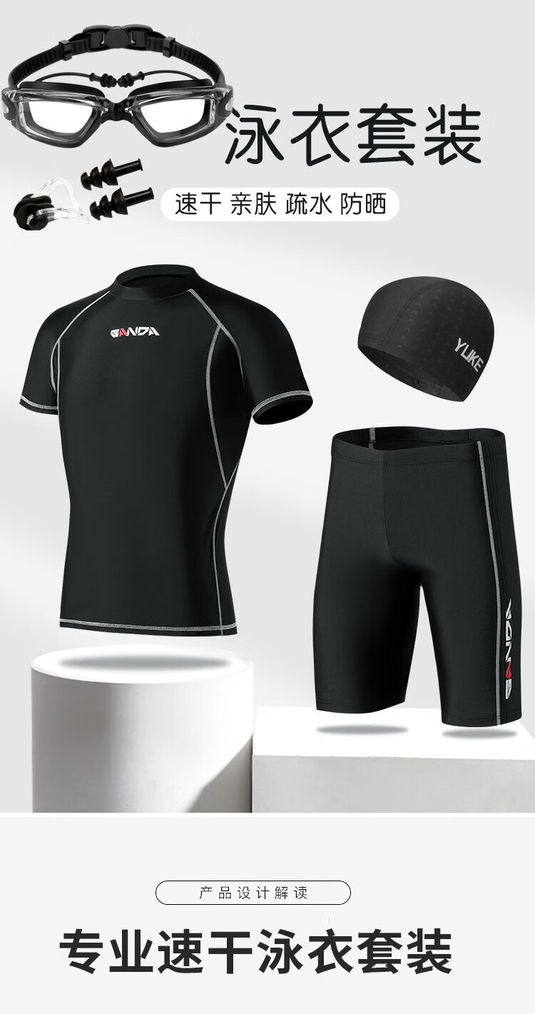 Yuke Youth and Adult Children's Swimming Training Swimwear High School and Junior High School Student Examination Swimsuit and Swimwear Set Black Swimsuit Bottom Cap + Swimming Goggles Earplugs Nose Clip XL (90-115Jin Jin is equal to 0.5kg)