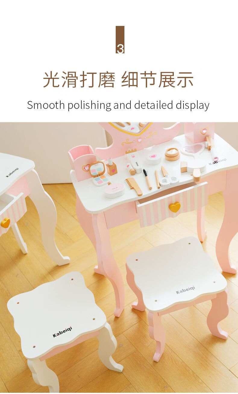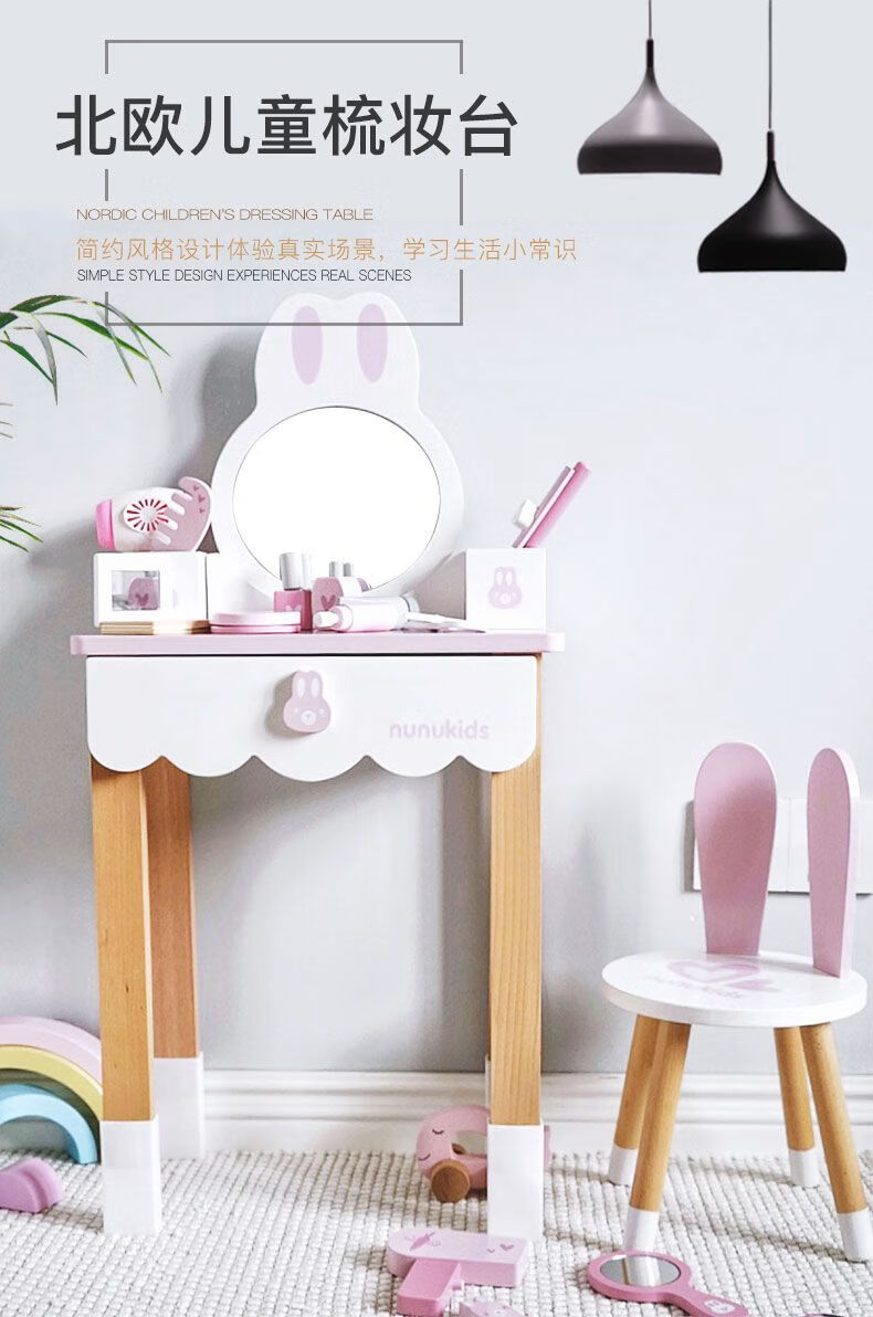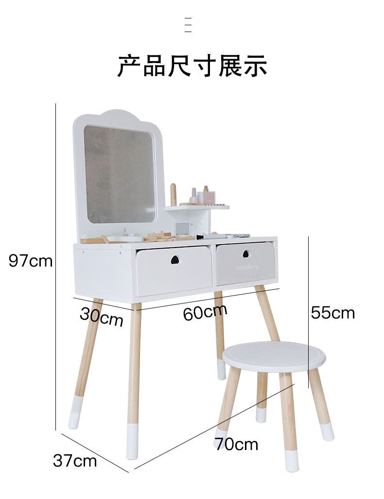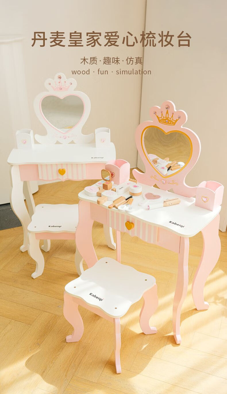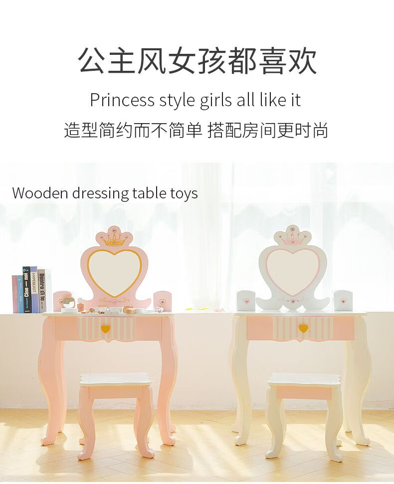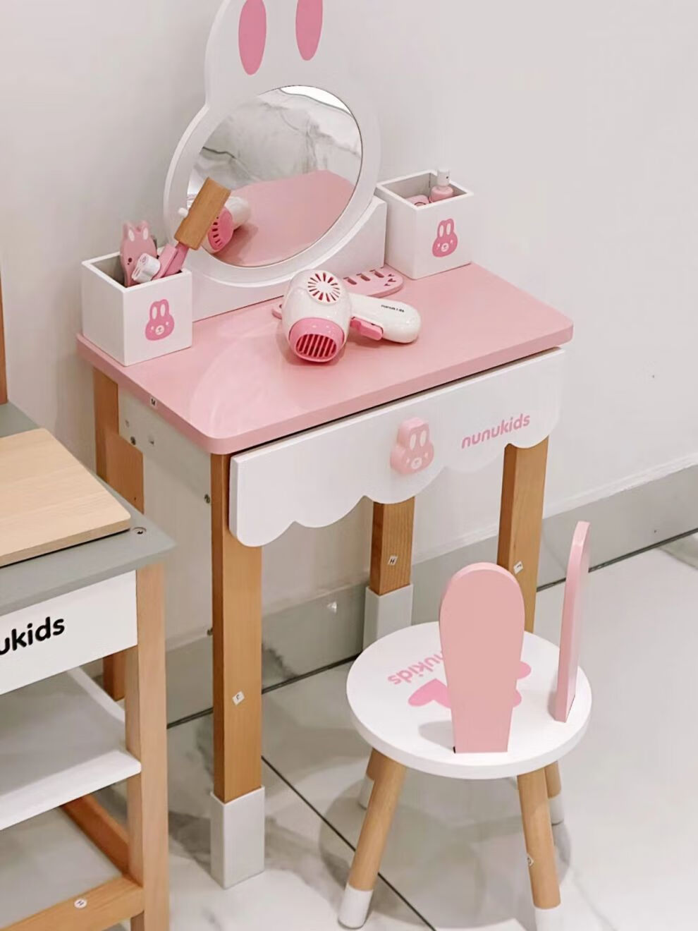 Shantoulin Village Danish children's dressing table girl little princess cosmetics toy table wooden jewelry box play house birthday gift Danish pink love dressing table + stool
