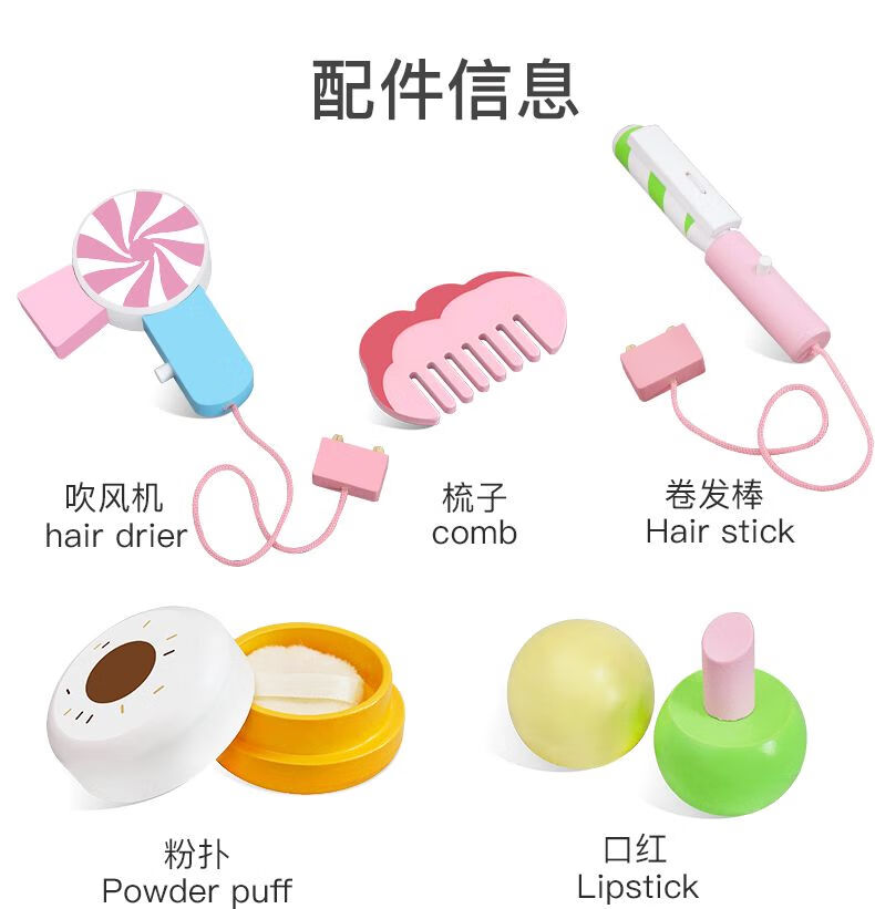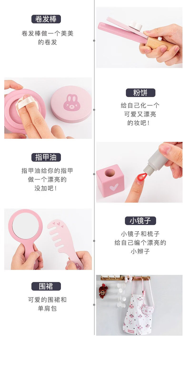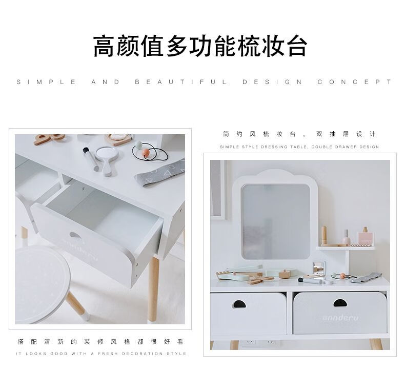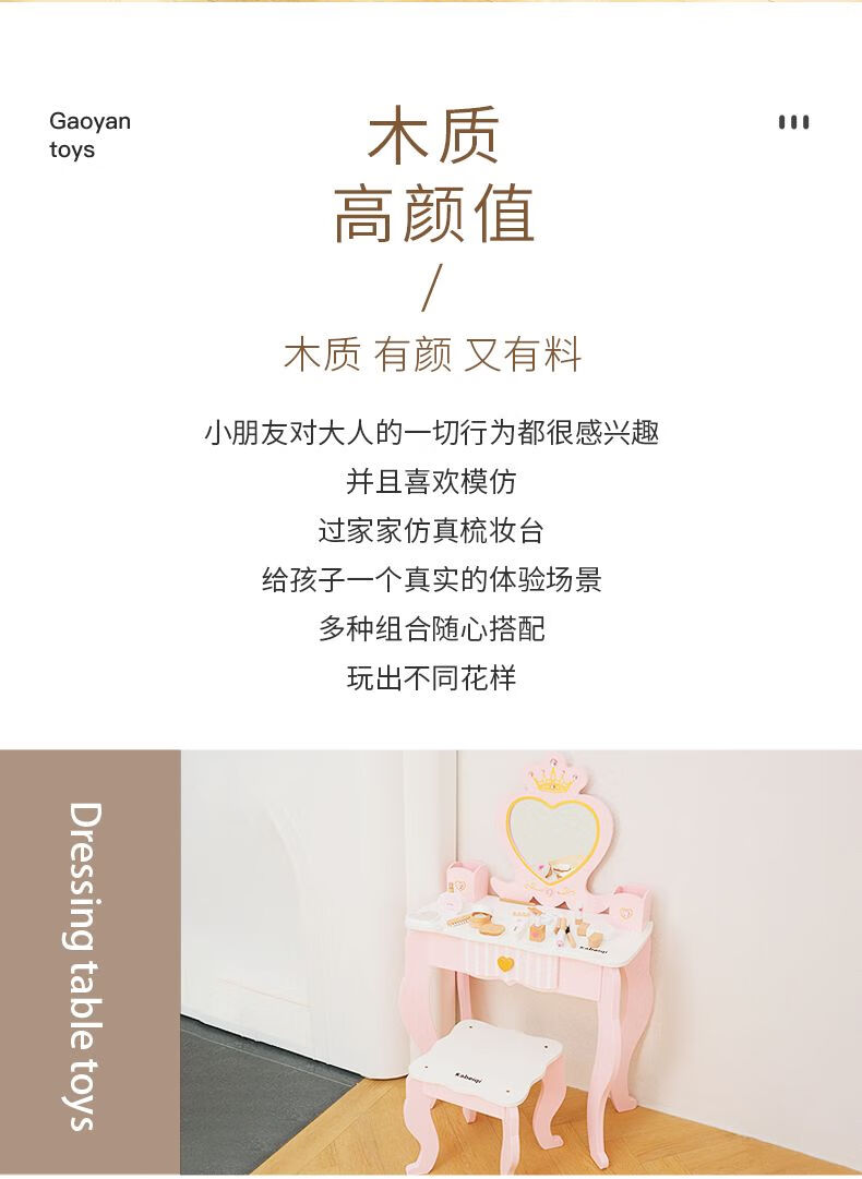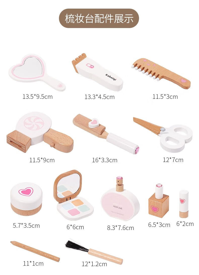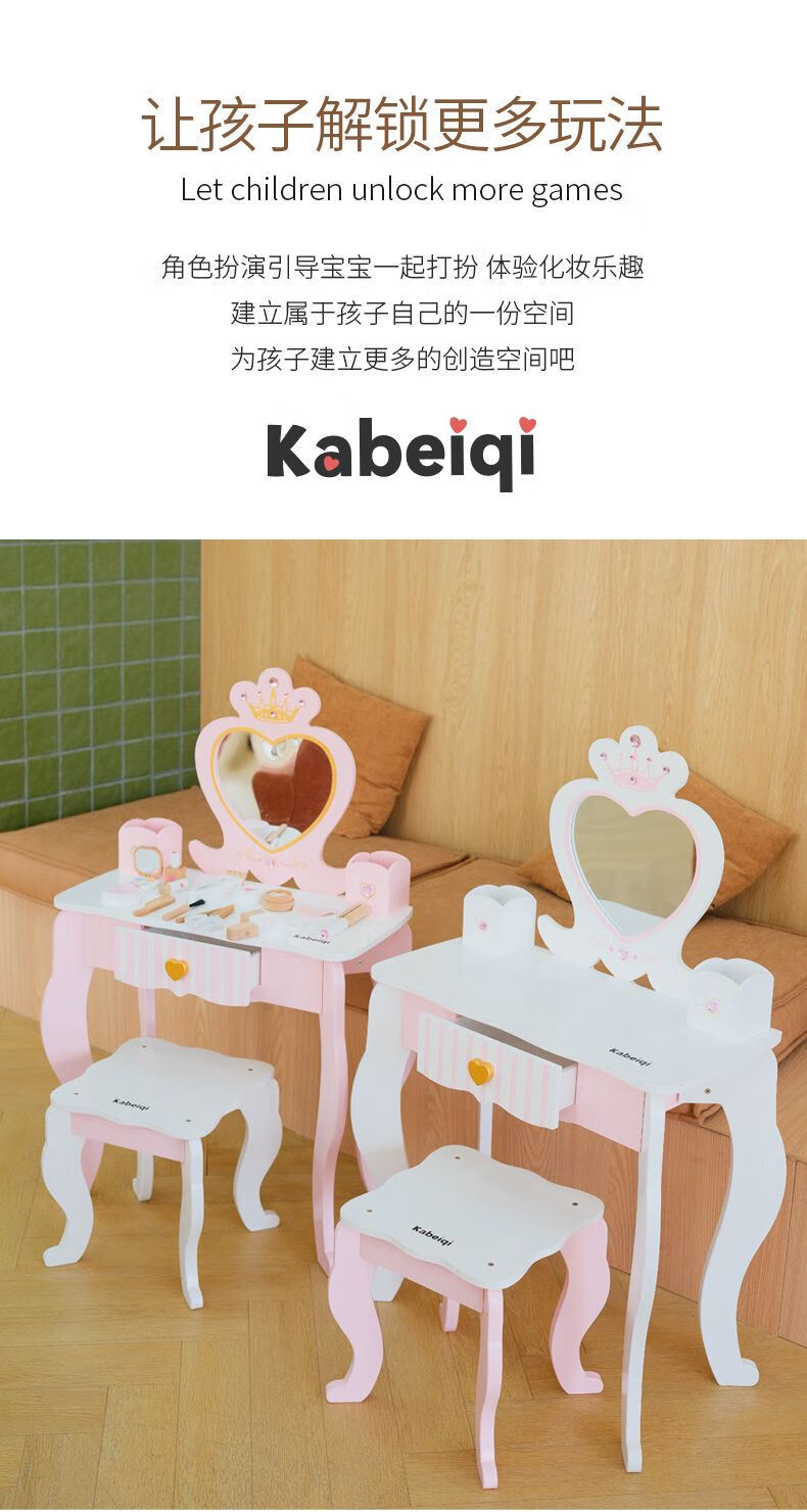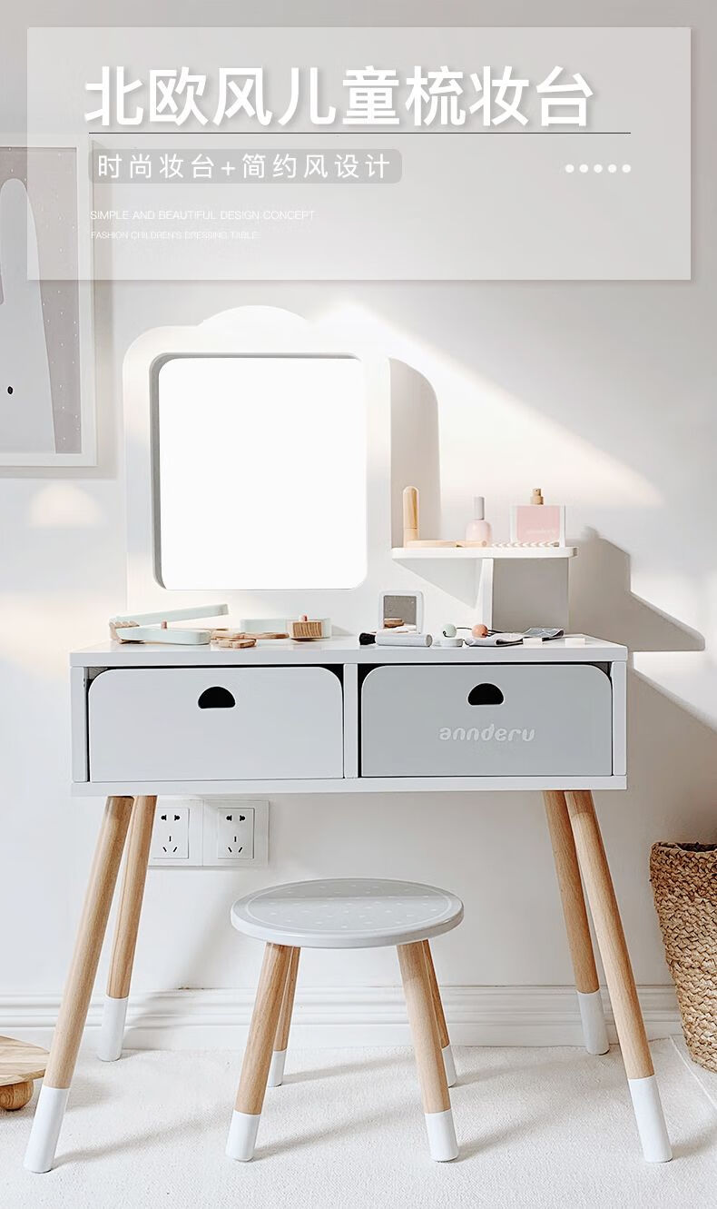 Shantoulin Village Danish children's dressing table girl little princess cosmetics toy table wooden jewelry box play house birthday gift Danish pink love dressing table + stool