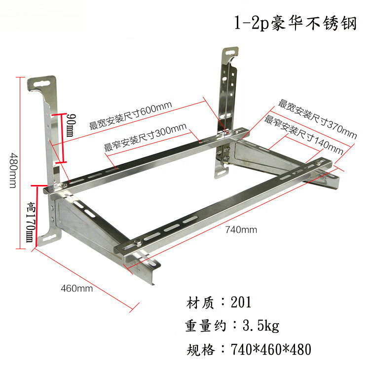 Shantou Lincun universal air conditioning bracket thickened stainless steel outdoor unit bracket 15P2P3P5P horse hanger hanger 2-3P bracket with cross bar hanging basket