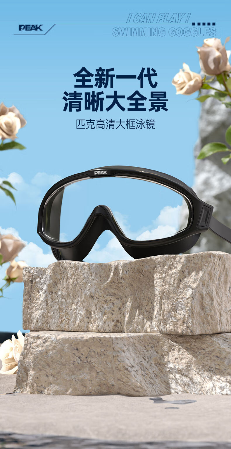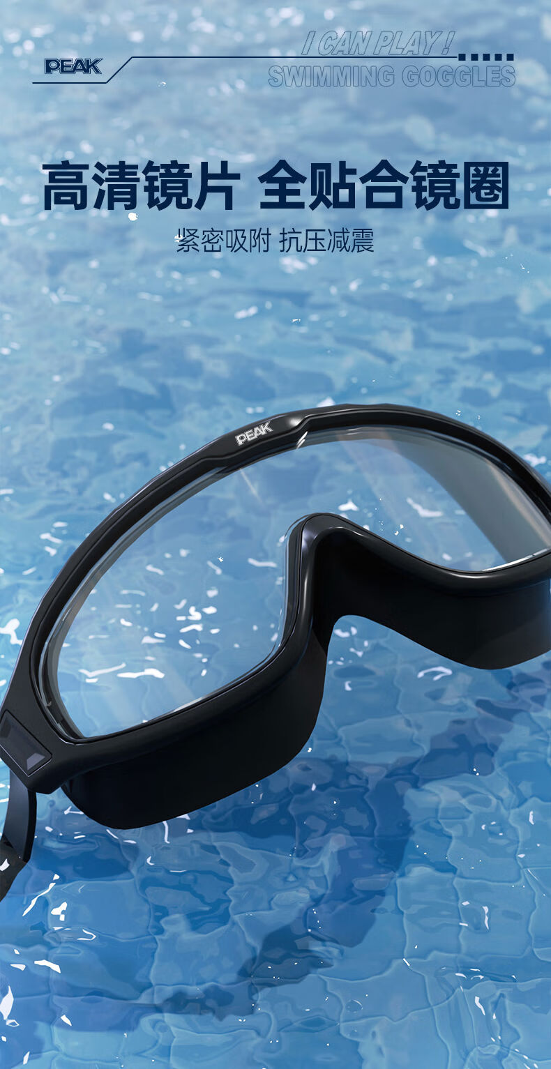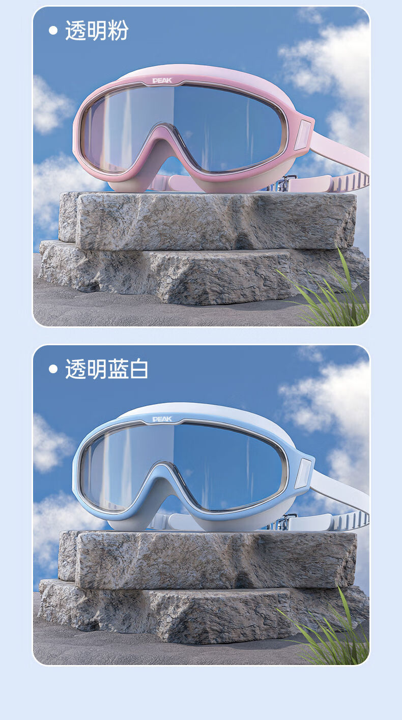 Men's swimming goggles with large frame, high definition waterproof and anti-fog, women's diving swimming goggles and swimming cap set, transparent pink 4-piece set, swimming goggles + swimming cap + nose clip + earplugs, flat light