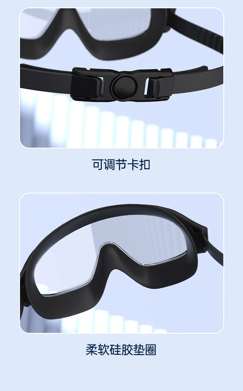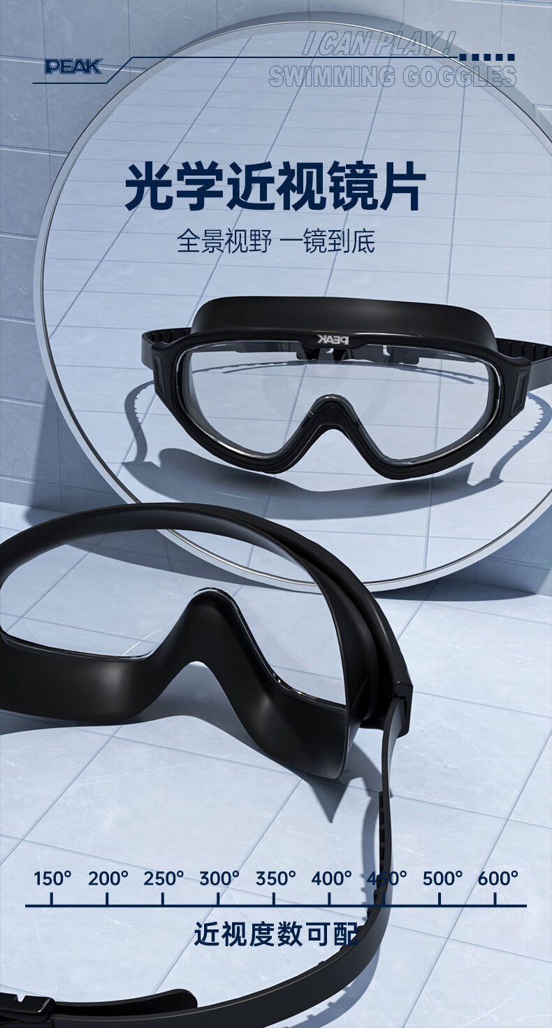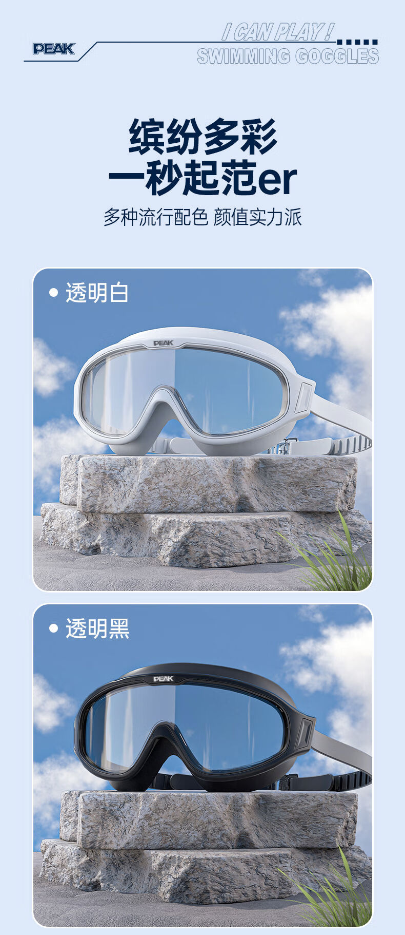 Men's swimming goggles with large frame, high definition waterproof and anti-fog, women's diving swimming goggles and swimming cap set, transparent pink 4-piece set, swimming goggles + swimming cap + nose clip + earplugs, flat light