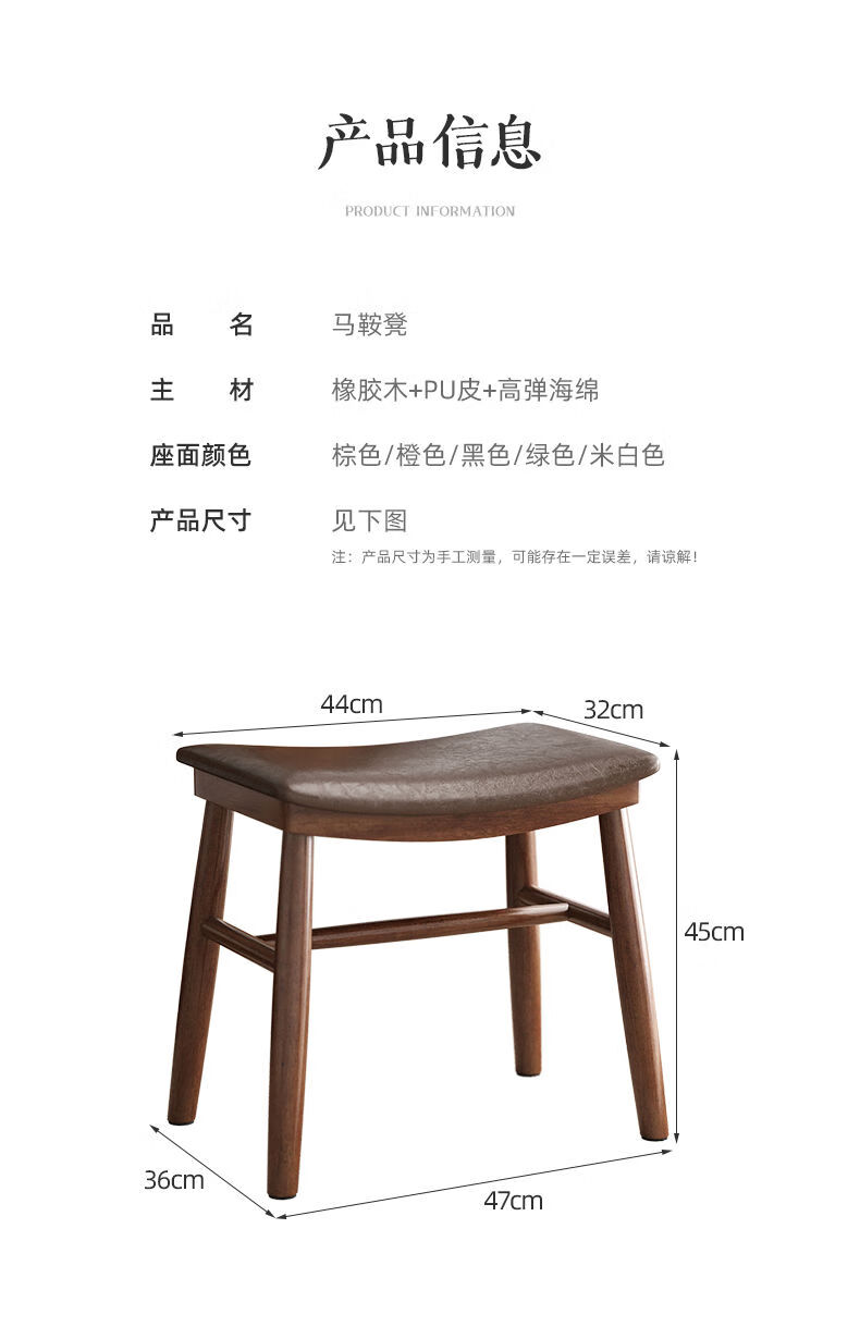 Yusenyi Stool Dining Stool Dining Chair Home Bench Living Room Shoe Changing Stool Dressing Stool Low Stool Reinforced H-shaped Saddle Stool Walnut Stool Legs + Brown Stool Surface