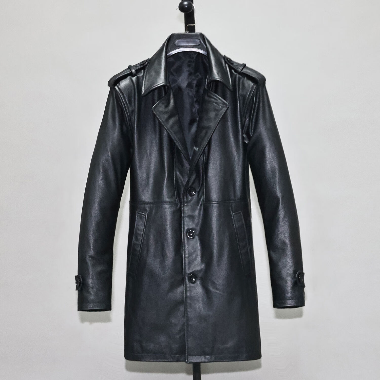 First-layer thin soft cowhide genuine leather jacket for men and women, slim-fitting, mid-length youth lapel casual business windbreaker jacket, single style - black thin soft cowhide M M recommended 100-129 Jin Jin equals 0.5 kg