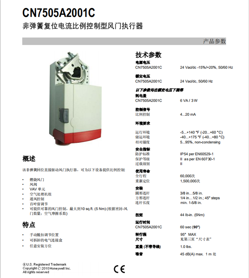 Honeywell CN7510A/CN7505A2001C/7234A2008 air valve actuator CN7505A2001 24V adjustment_5NM