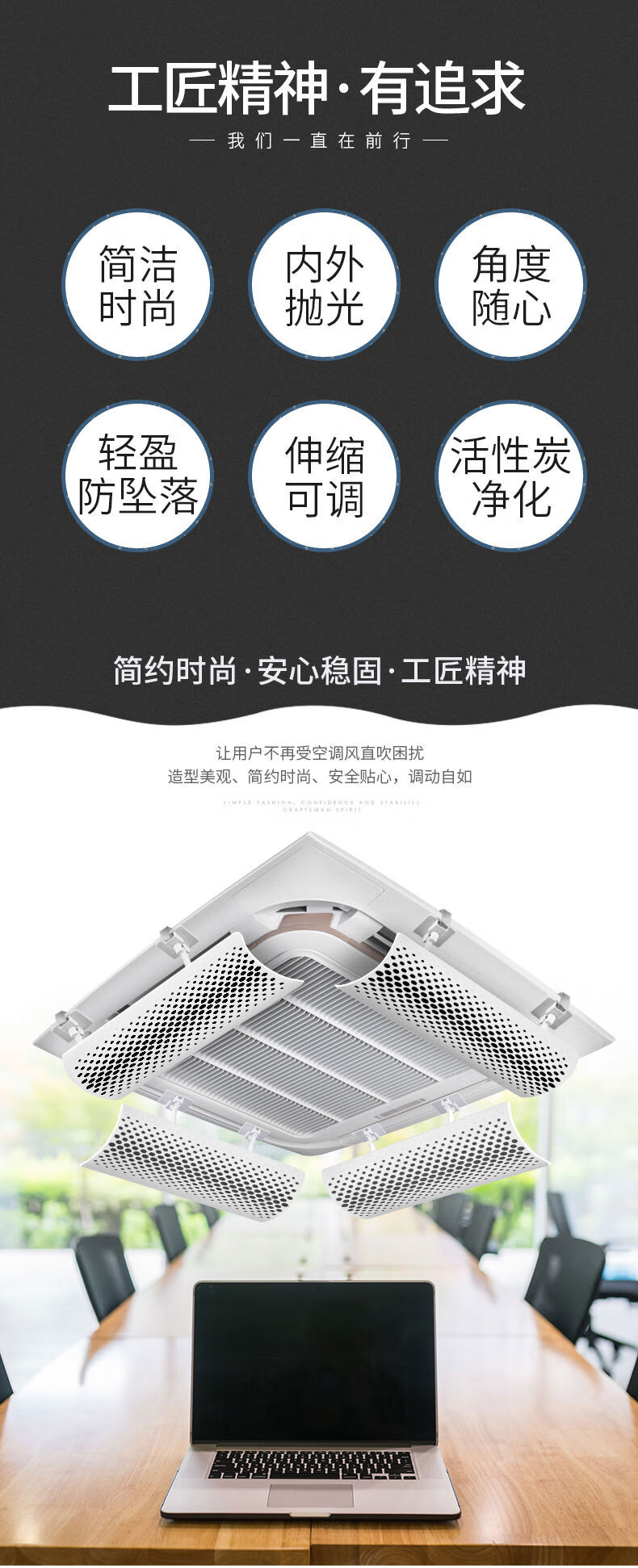 Air conditioner windshield, air conditioner air outlet windshield, anti-direct blow ceiling ceiling machine universal wind deflector, single-piece integrated plate model 60CM angle adjustable, waterproof cotton included