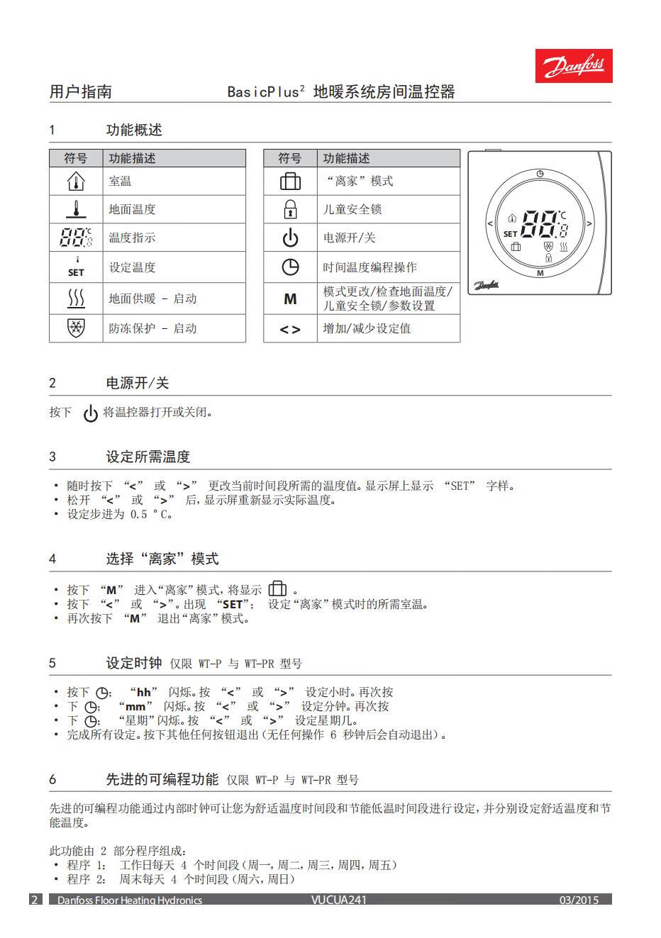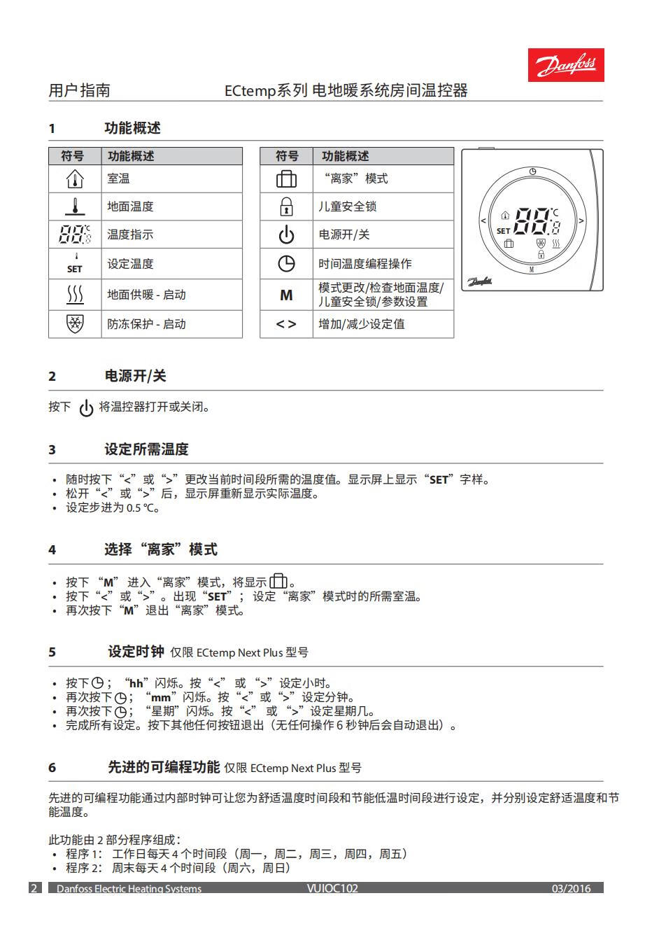 Danfoss water and electricity floor heating thermostat WT-D/P time program design RS485M-BUS temperature control panel switch water floor heating #WT-DL_edge button_0640