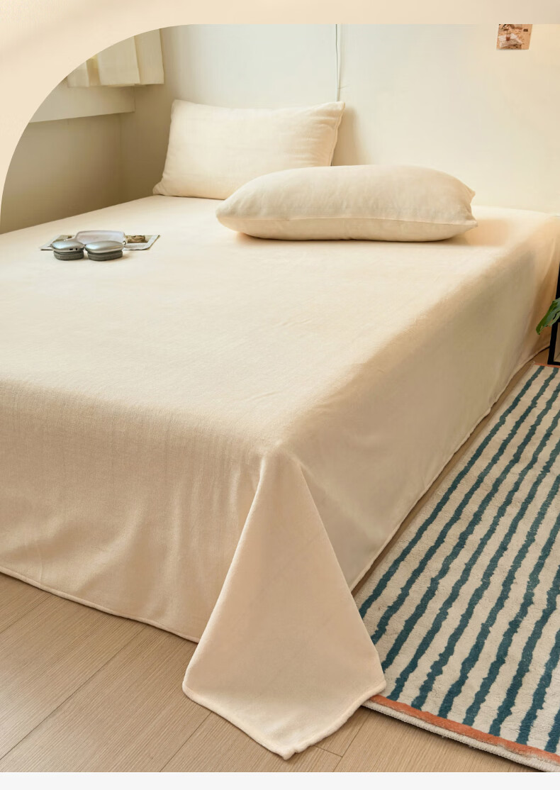 Class A winter milk velvet sheet single piece thickened plus plush blanket coral velvet winter plush single quilt cover baby blue Class A mother and baby grade milk velvet, suitable for naked sleeping three-piece set sheet + pillowcase pair 200cm*230cm