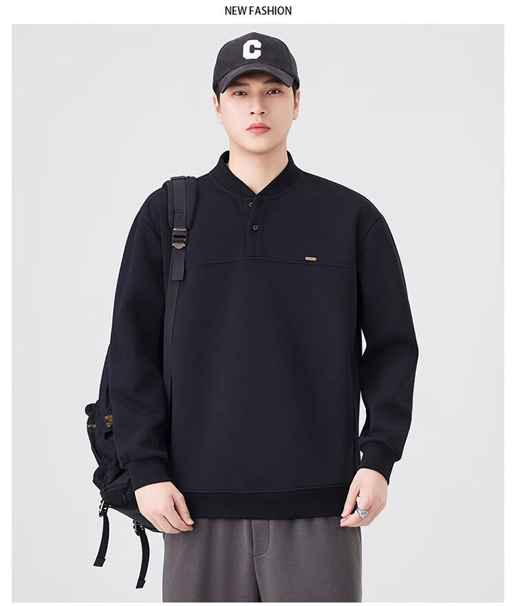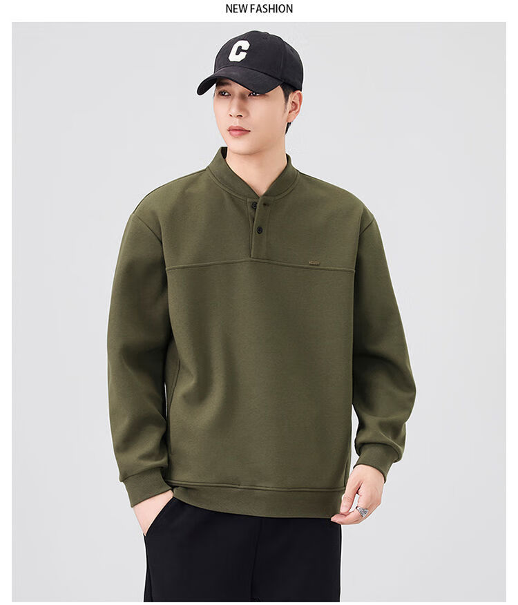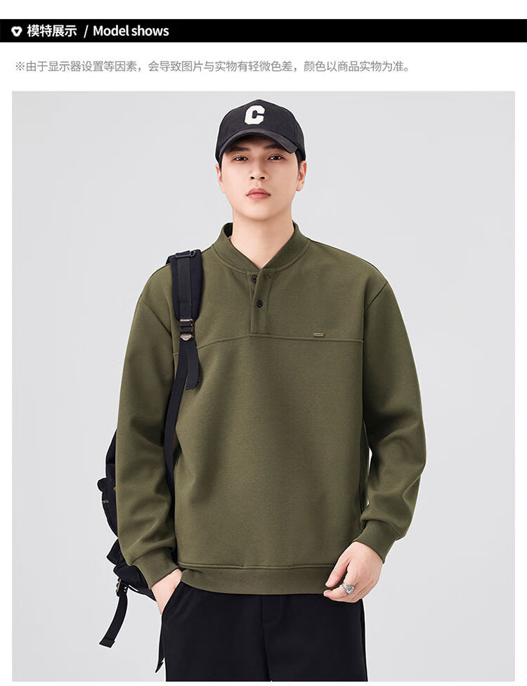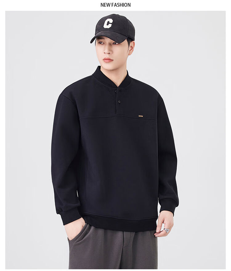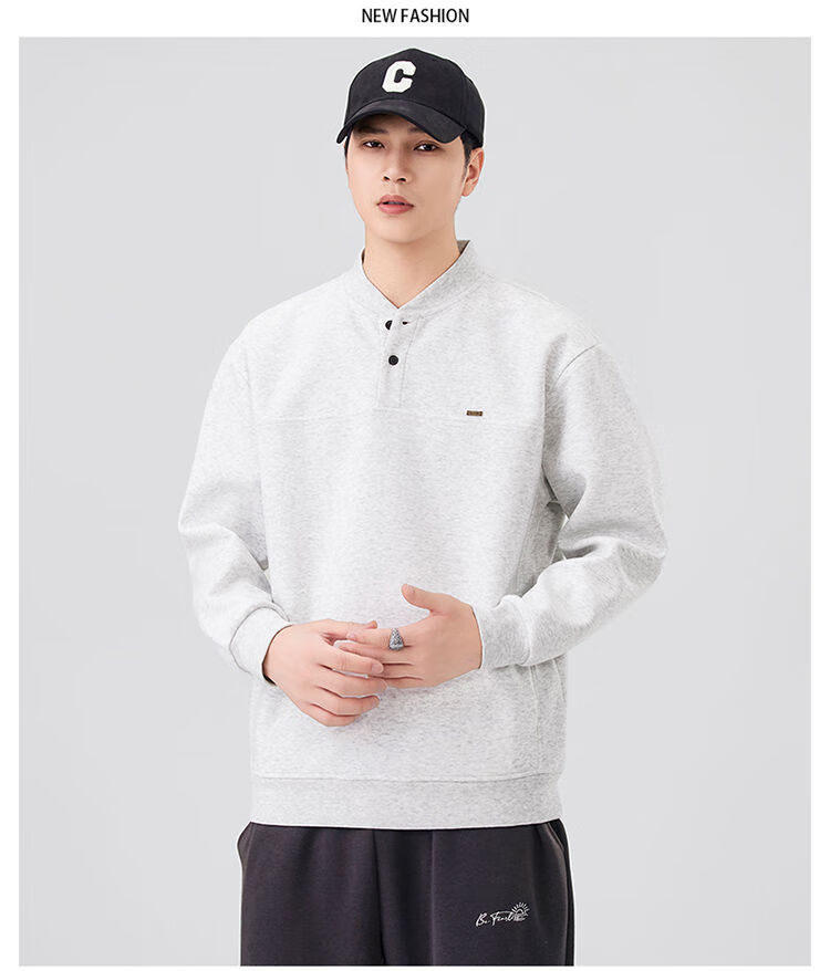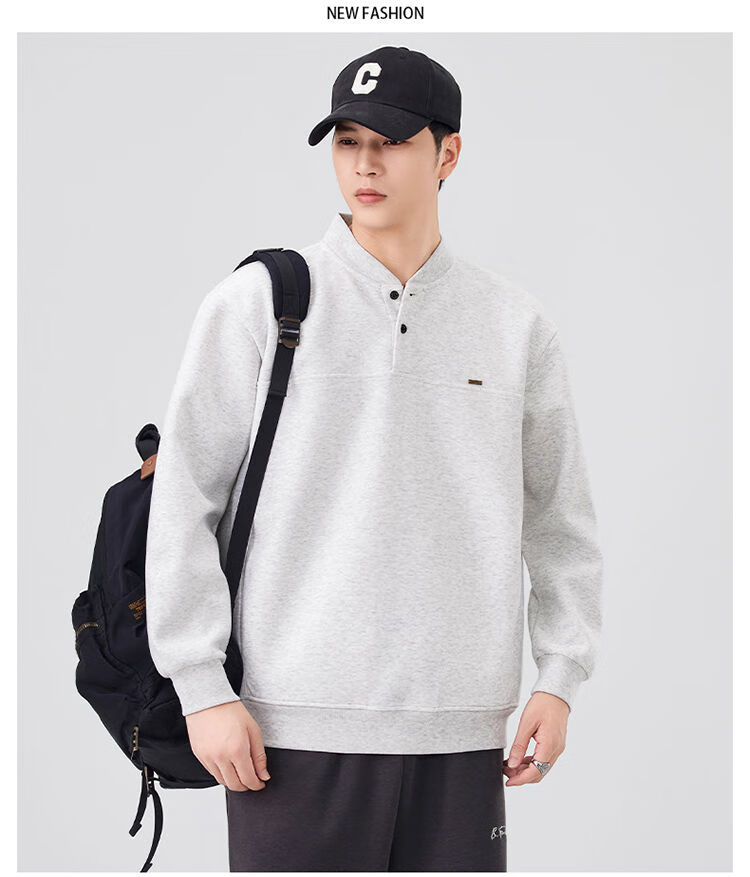 Xiaohongshu's popular Xiaohongshu's popular sweatshirt for men in spring and autumn heavyweight Henry collar bottoming shirt loose trendy splicing light gray M MM120Jin Jin is equal to within 0.5 kg