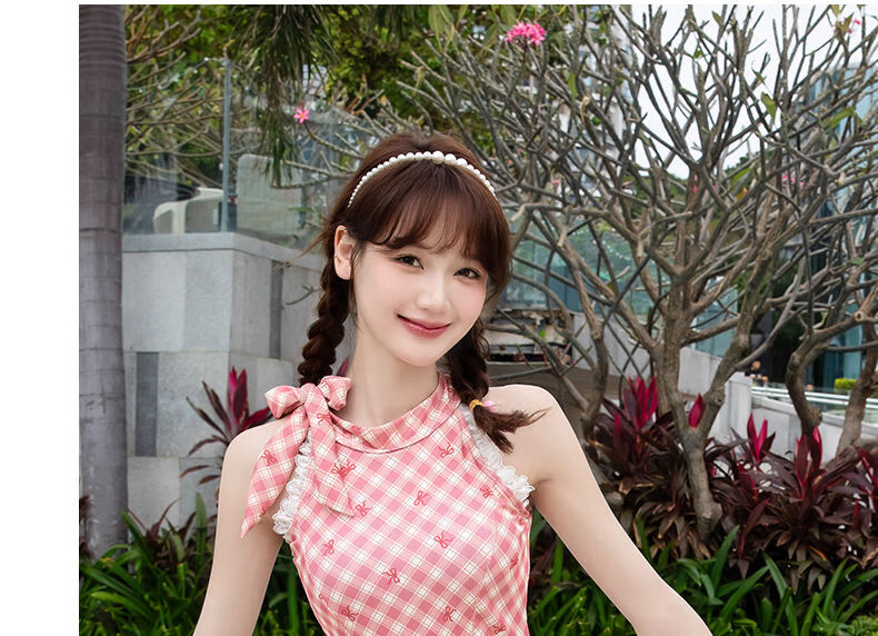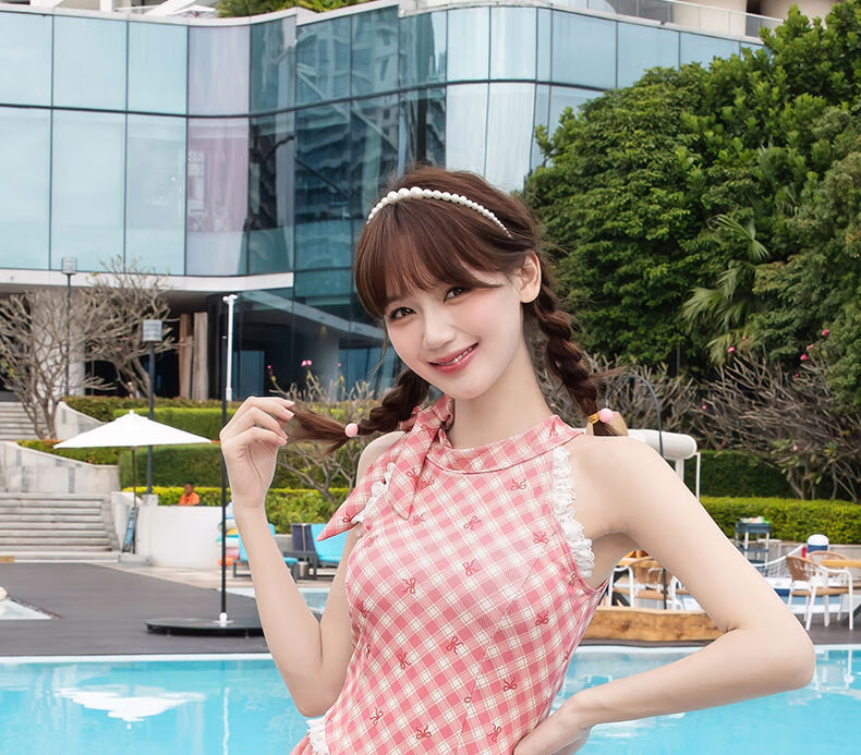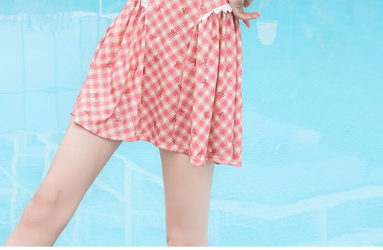 2025 New Swimsuit Women's Summer One-piece Skirt Style Conservative Slim Covering Belly Covering Hot Spring Student Girls Beautiful and Cute Swimsuit + Electroplated Swimming Goggles + Swimming Cap + Nose Clip + Earplugs M M