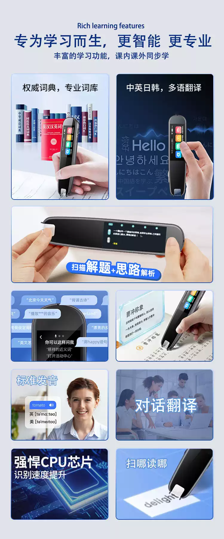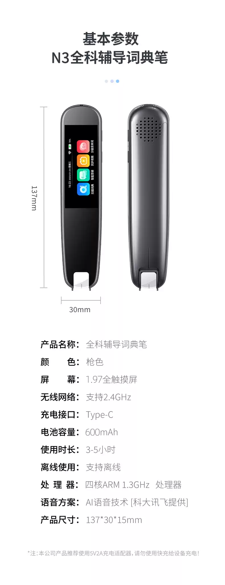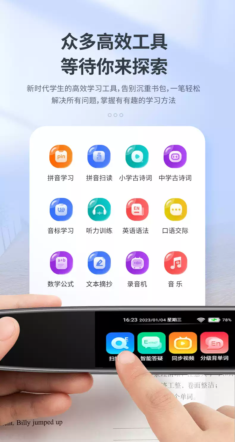 Sanqihu N3 reading pen electronic dictionary pen scans and translates words for primary school students, junior high and high schools to learn English. N3 upgraded version 1.97-inch screen full subject offline scanning national textbooks universal standard