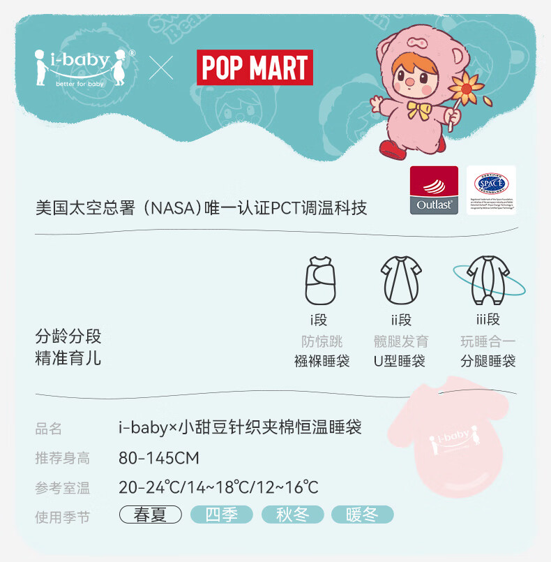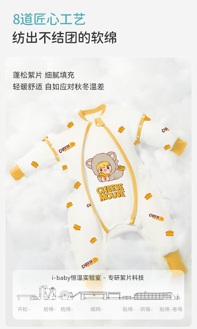 I-baby/British Bubble Mart children's sleeping bag quilted split-leg baby sleeping bag baby constant temperature anti-kick quilt comfortable cheese mouse (suitable for room temperature 20~24) 90 size height 80-90cm recommended age 1.5-2 years old