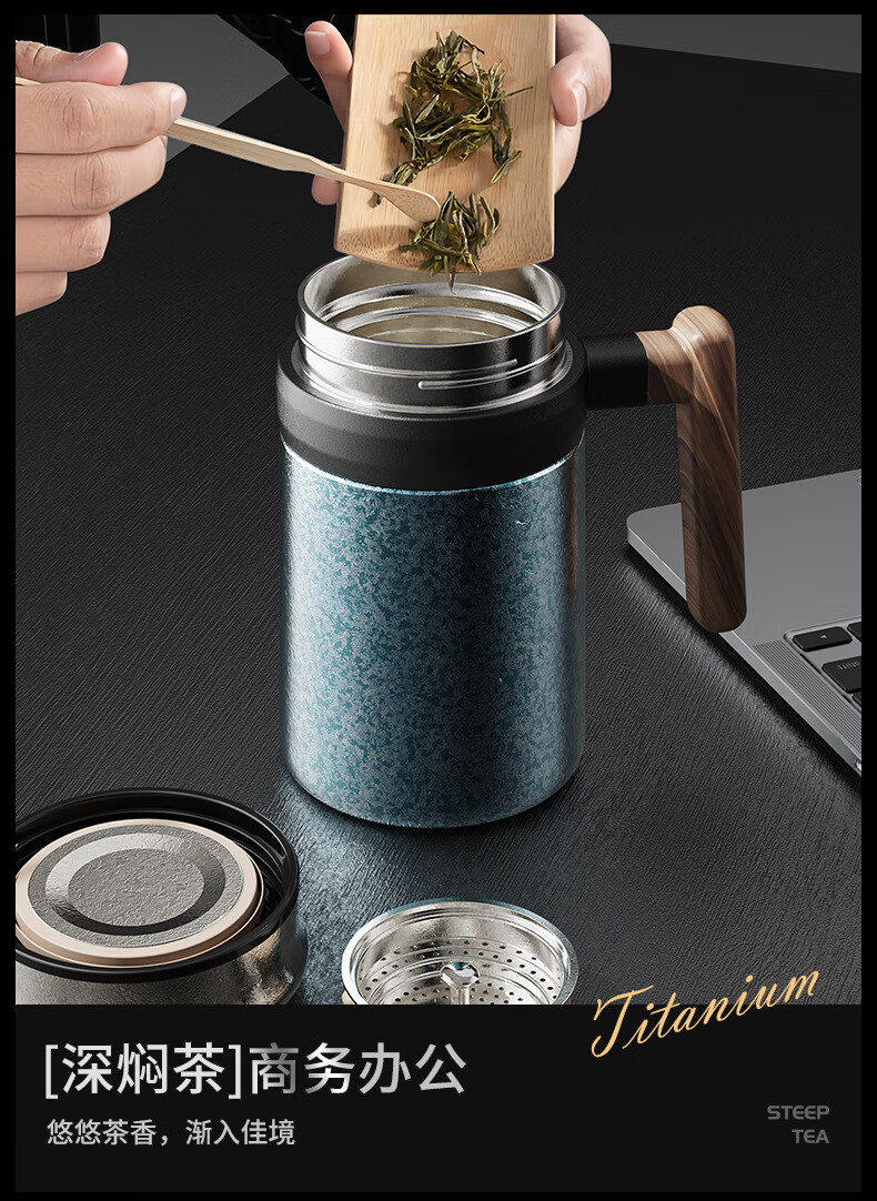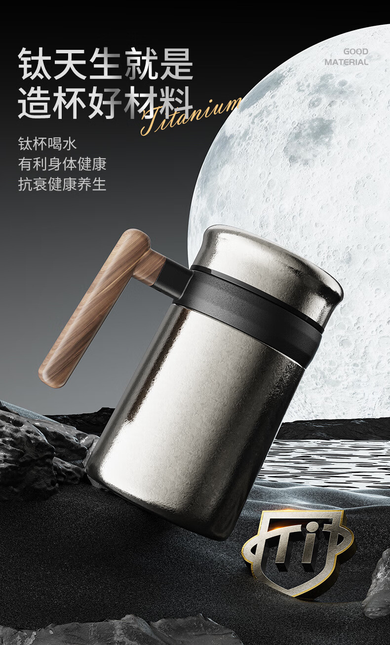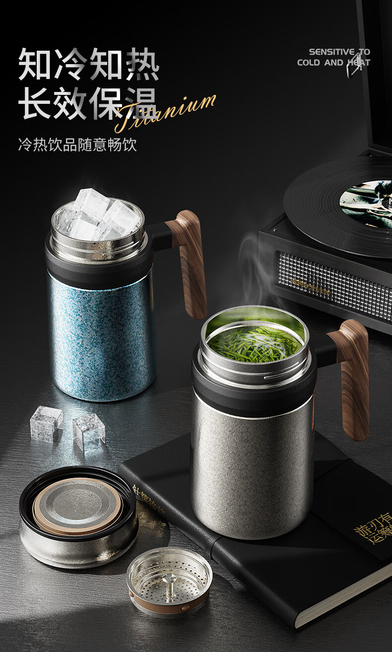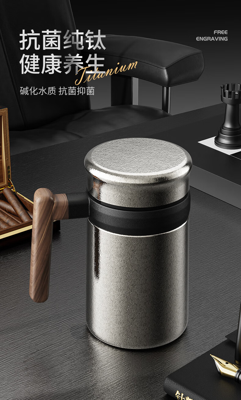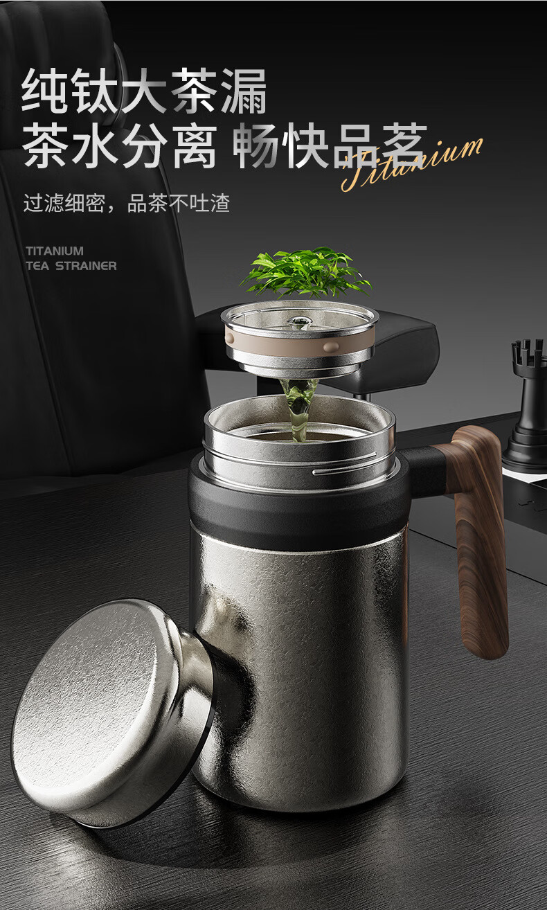 Lanjingge new pure titanium office thermos cup large capacity titanium cup with handle tea water separation tea cup gift cup with tea separator Xuanjing Silver (pure titanium + gift box) 500ml