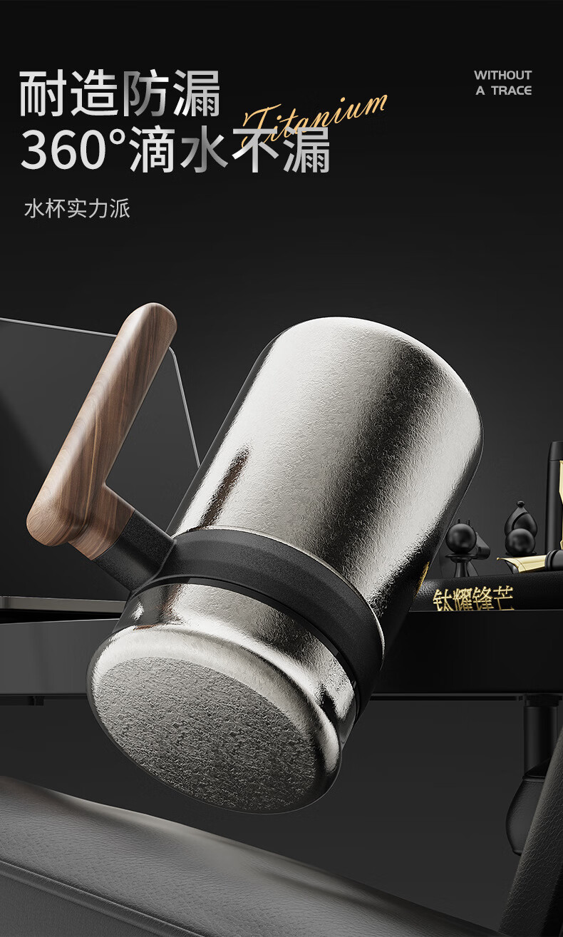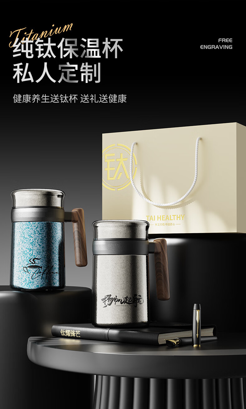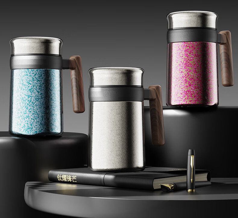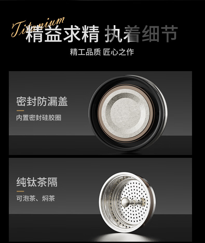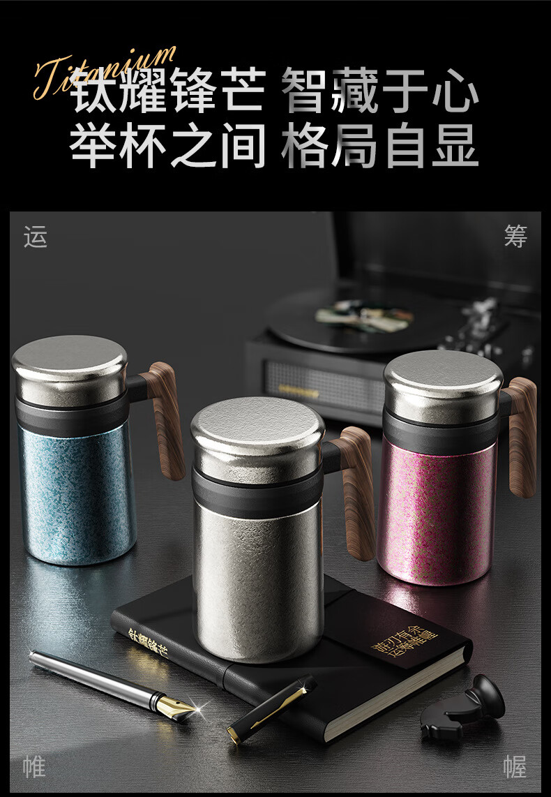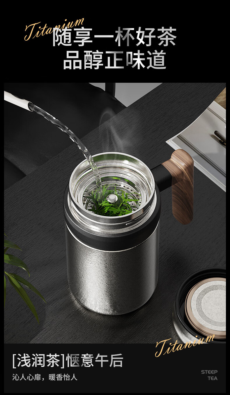Lanjingge new pure titanium office thermos cup large capacity titanium cup with handle tea water separation tea cup gift cup with tea separator Xuanjing Silver (pure titanium + gift box) 500ml