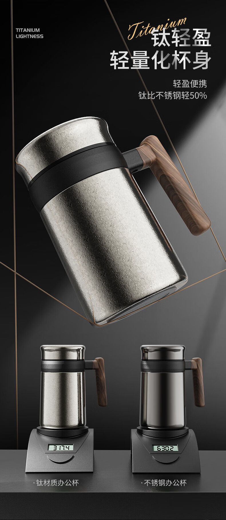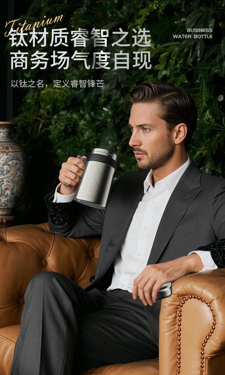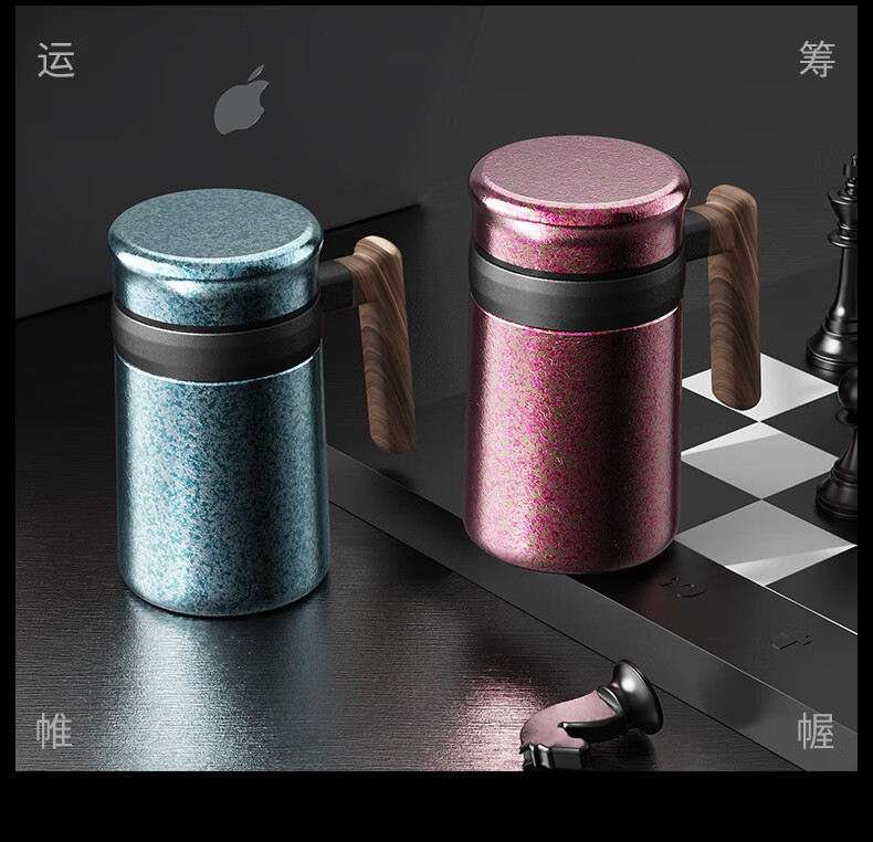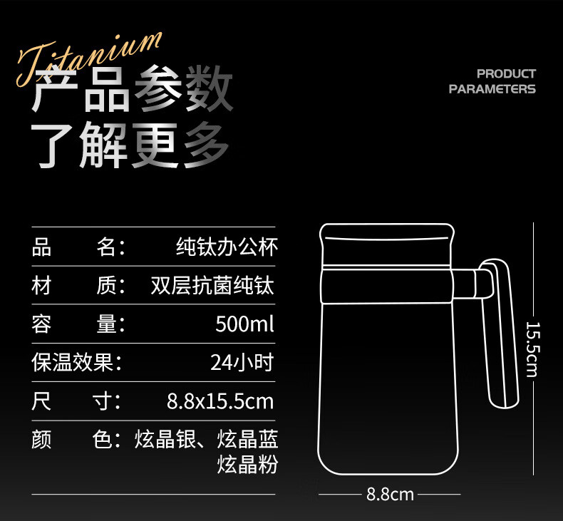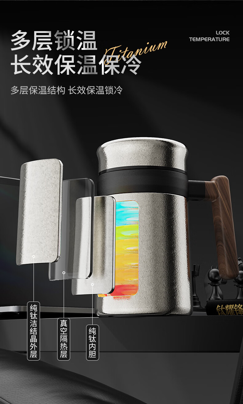 Lanjingge new pure titanium office thermos cup large capacity titanium cup with handle tea water separation tea cup gift cup with tea separator Xuanjing Silver (pure titanium + gift box) 500ml