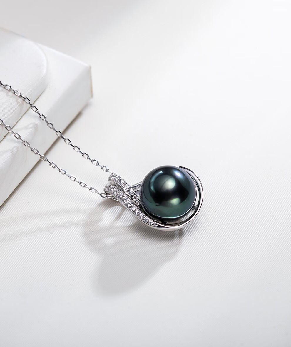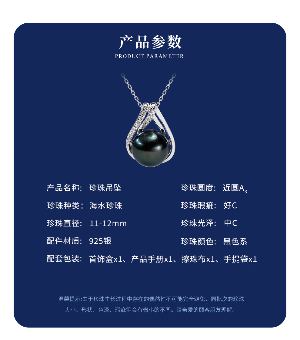 Nanzhu Palace 925 silver Tahitian black pearl pendant holiday gift for girlfriend C-HJD104SN-Y 11.0-12.0mm 925 silver seawater pearl pendant