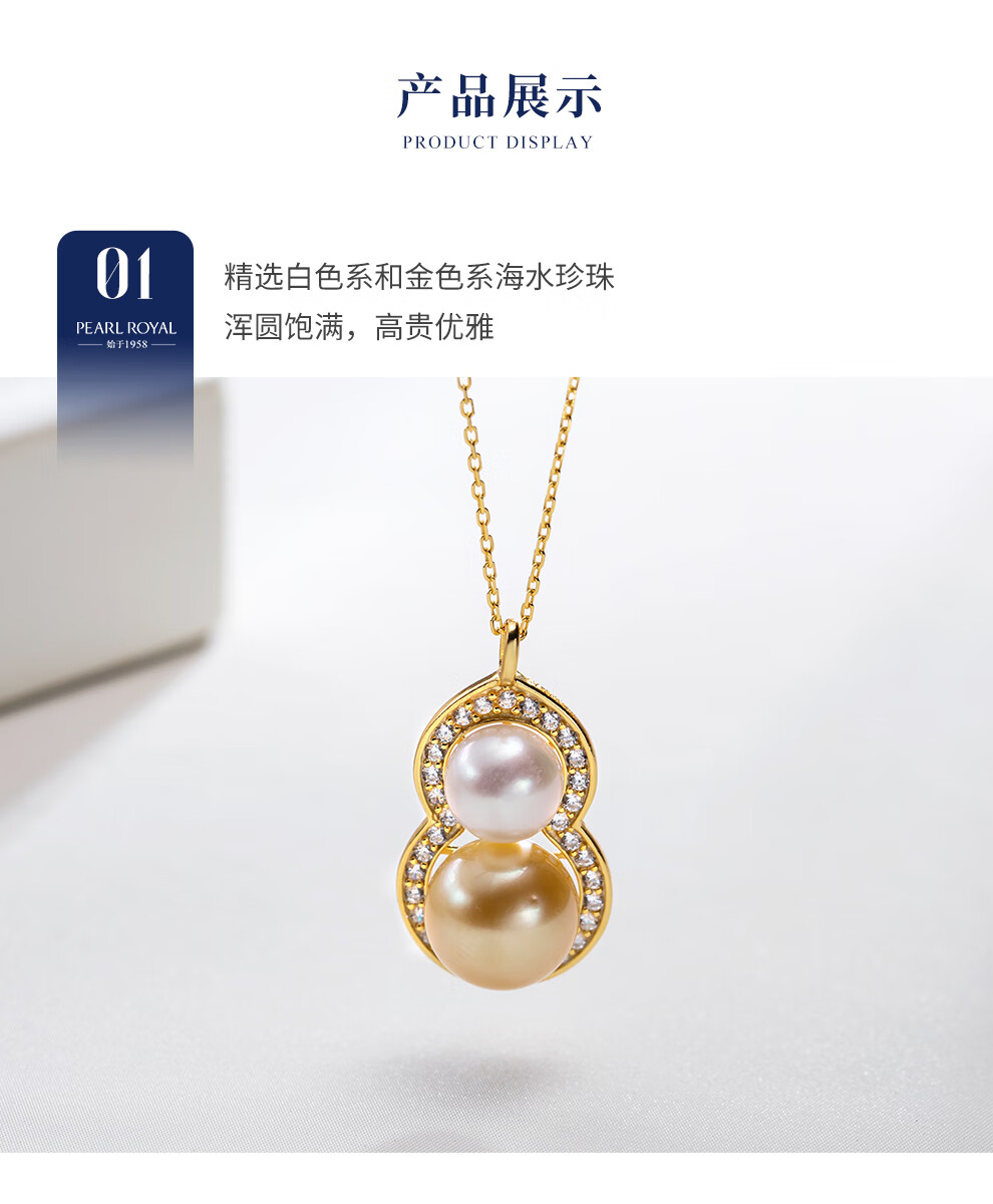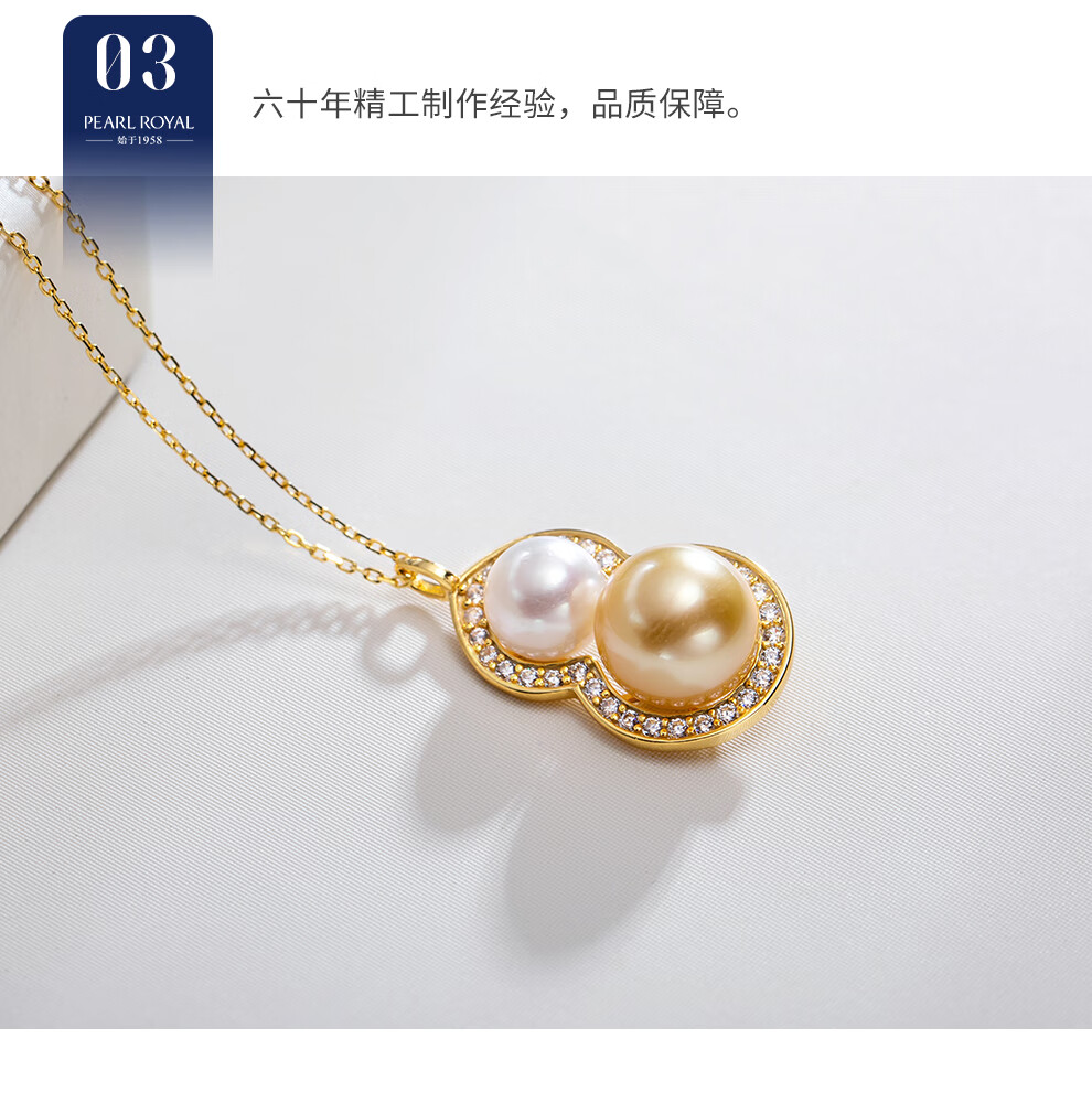 Nanzhu Palace Fulu Double Beads 925 Silver Seawater Gold Pearl Pendant Birthday Gift for Mom C-CJD105SN-J 7.0-11.0mm 925 Silver Seawater Pearl Pendant