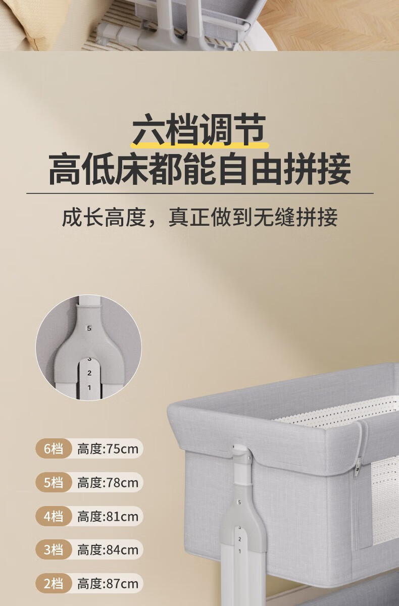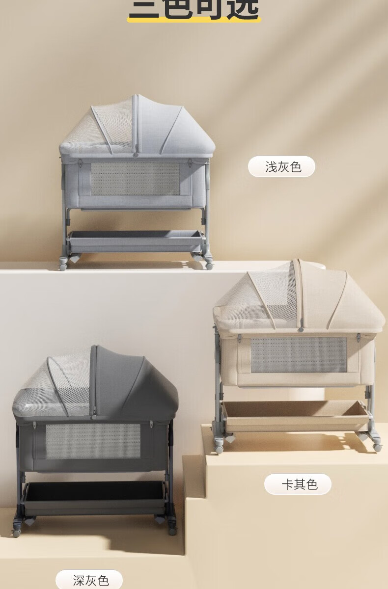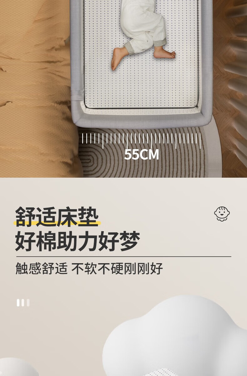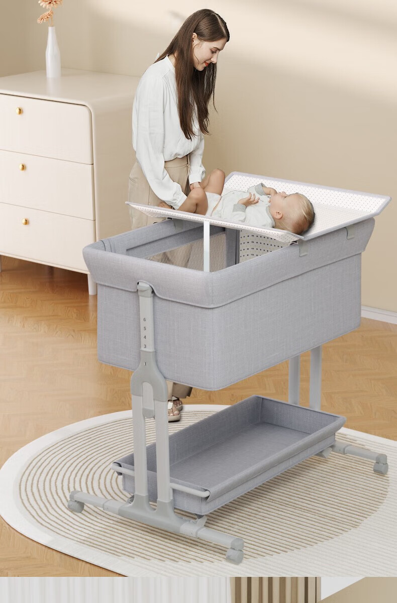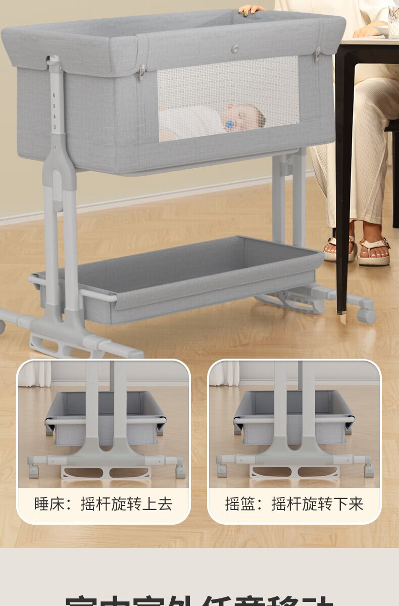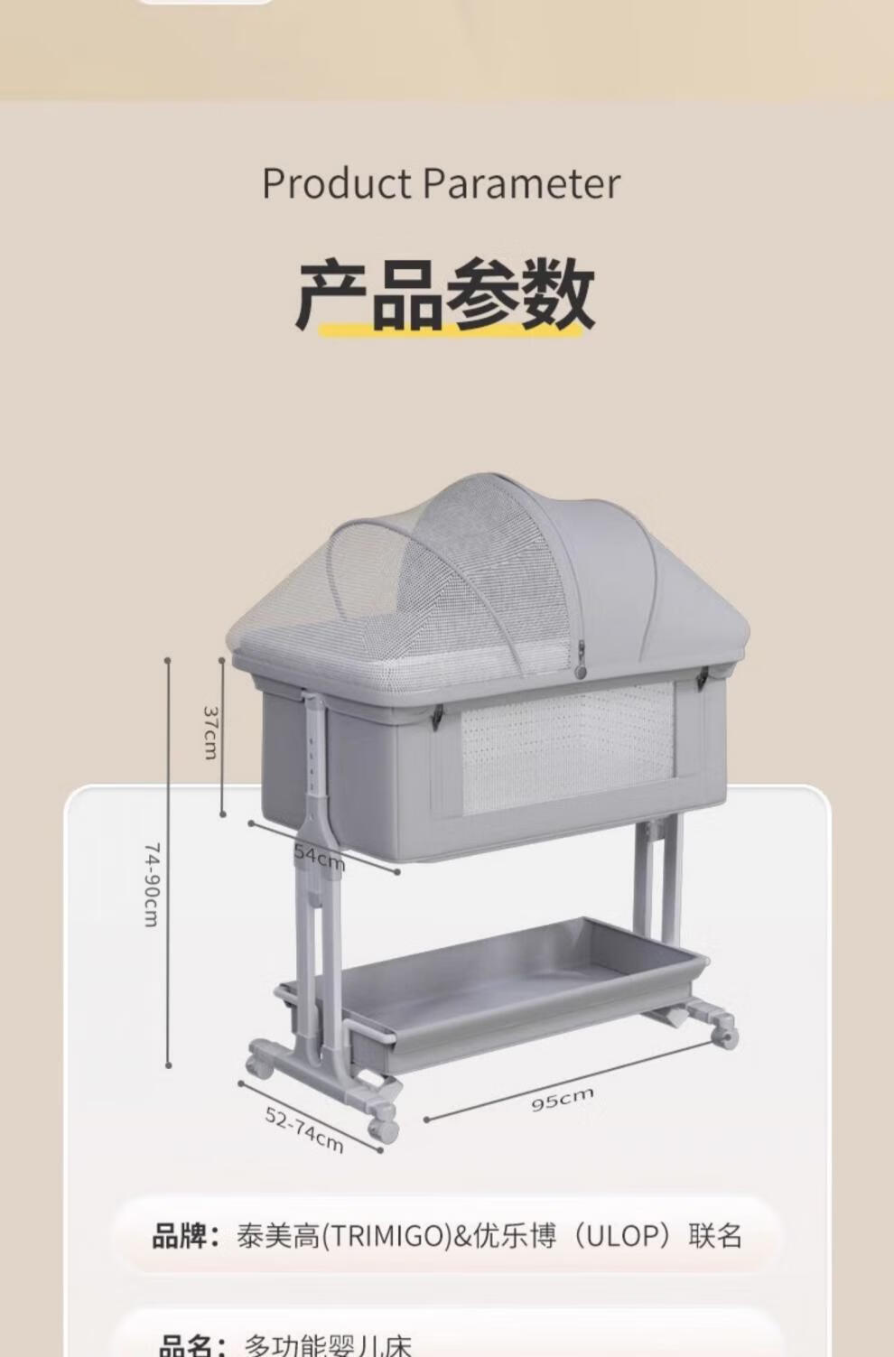 Trimigo crib removable splicing large bed baby multi-functional folding sleeping light gray + electric rocking chair four-wheel universal + mosquito net