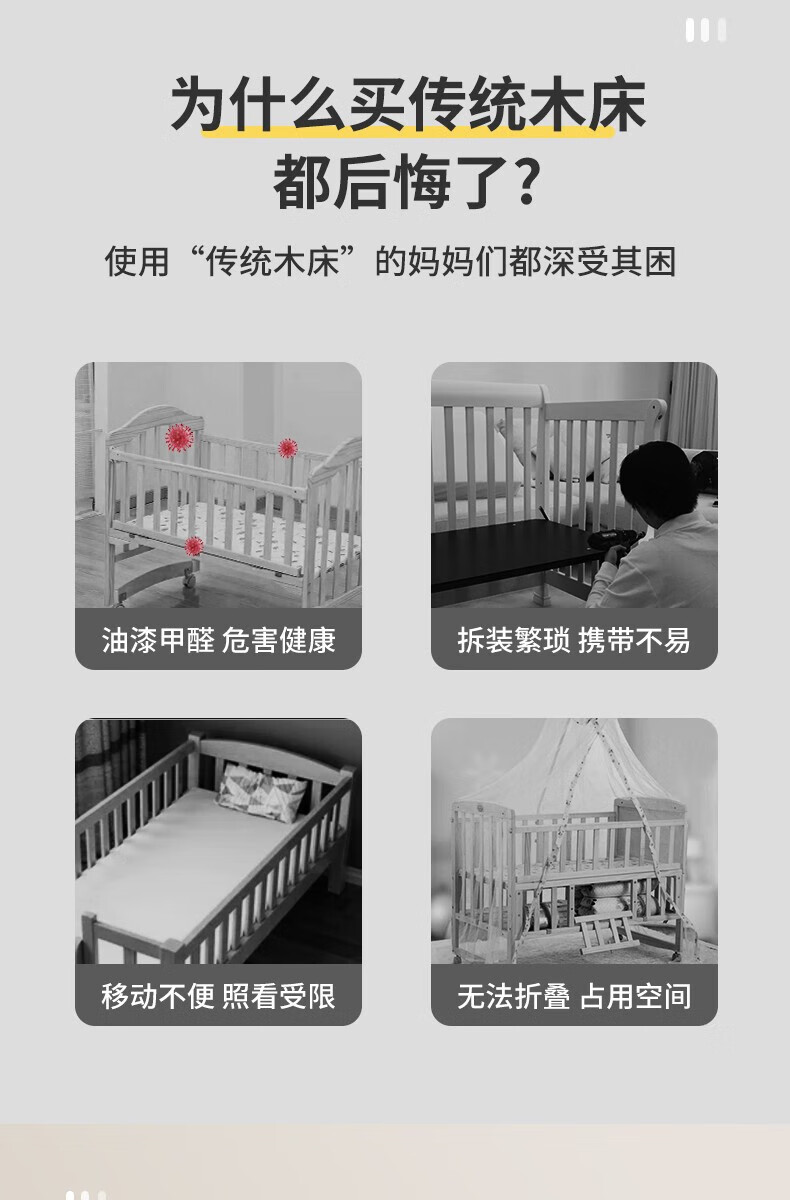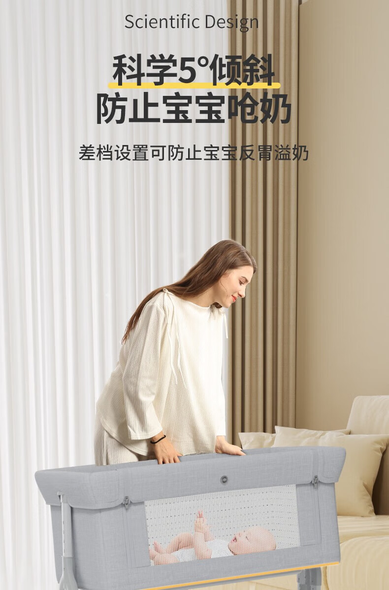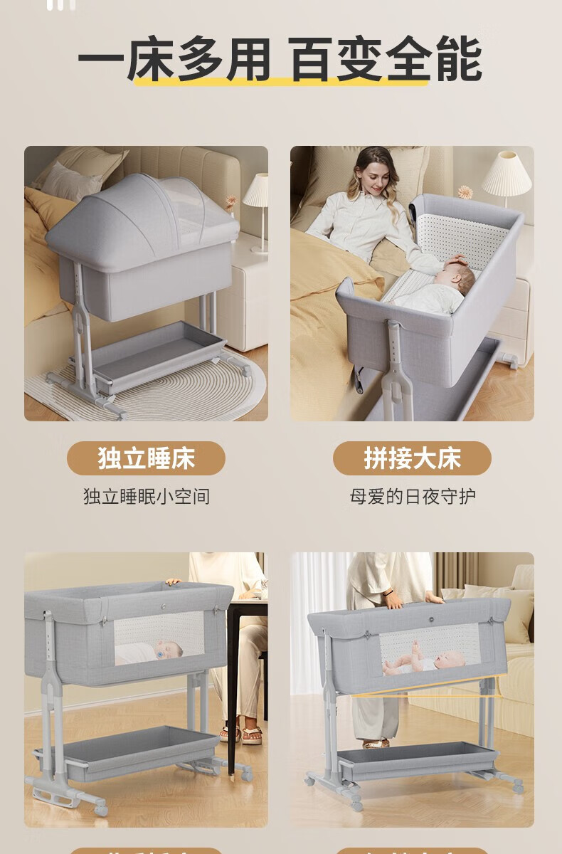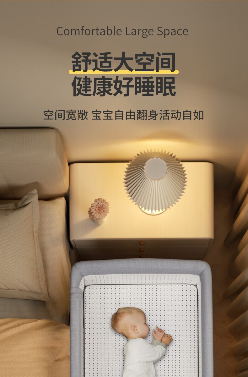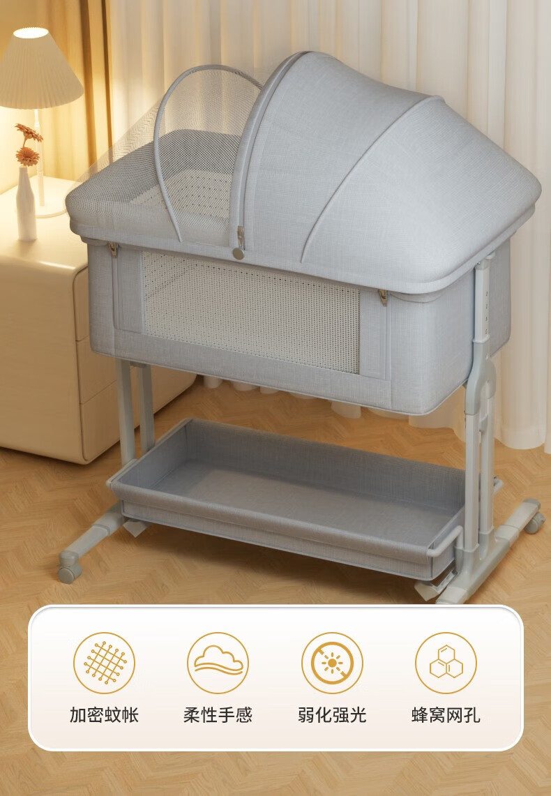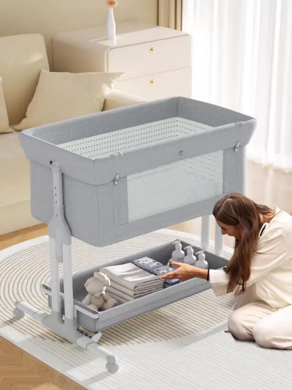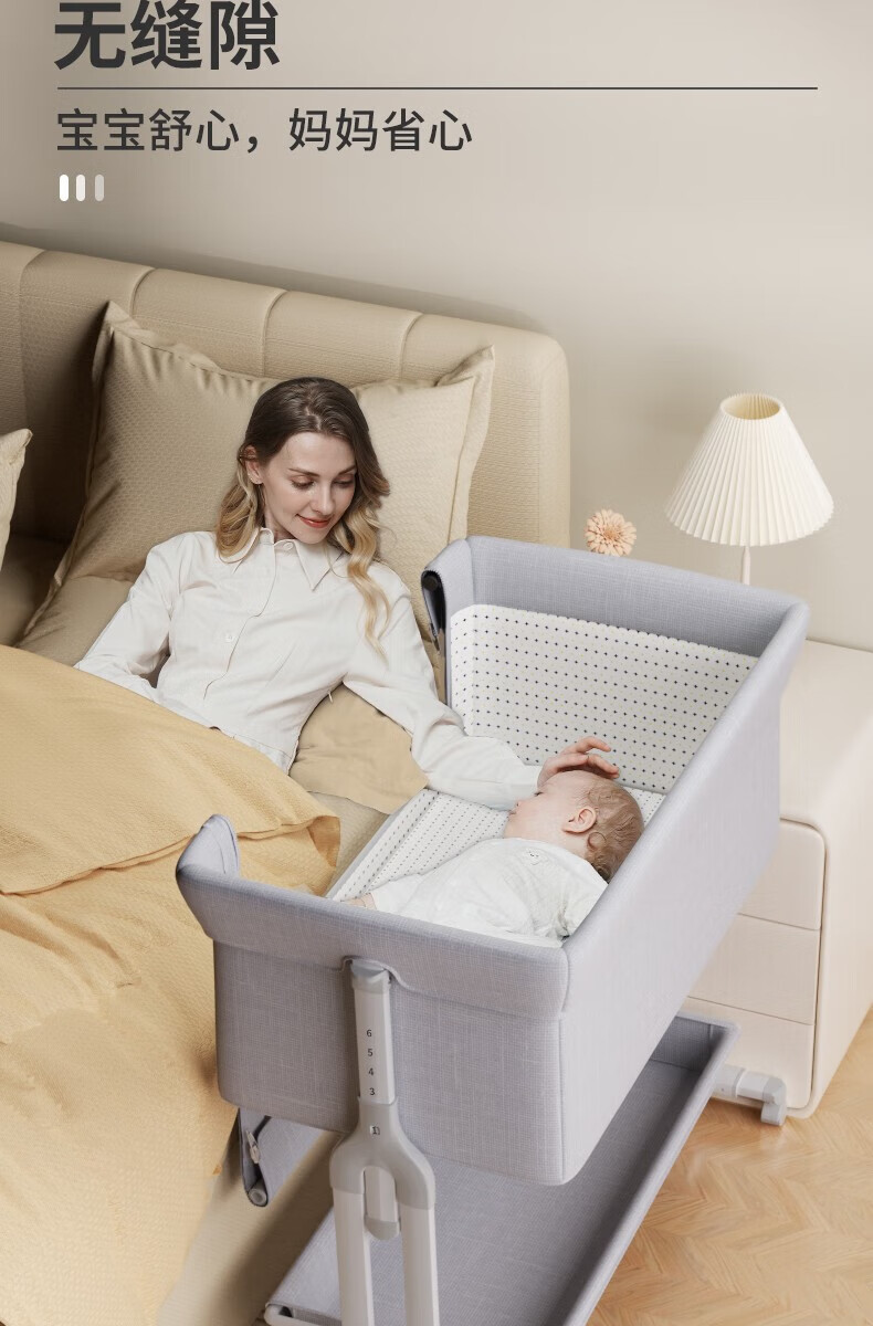 Trimigo crib removable splicing large bed baby multi-functional folding sleeping light gray + electric rocking chair four-wheel universal + mosquito net