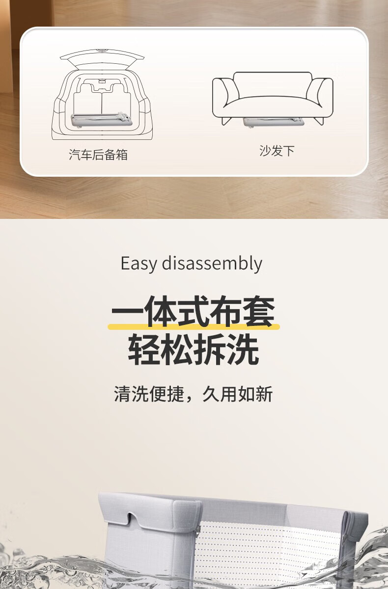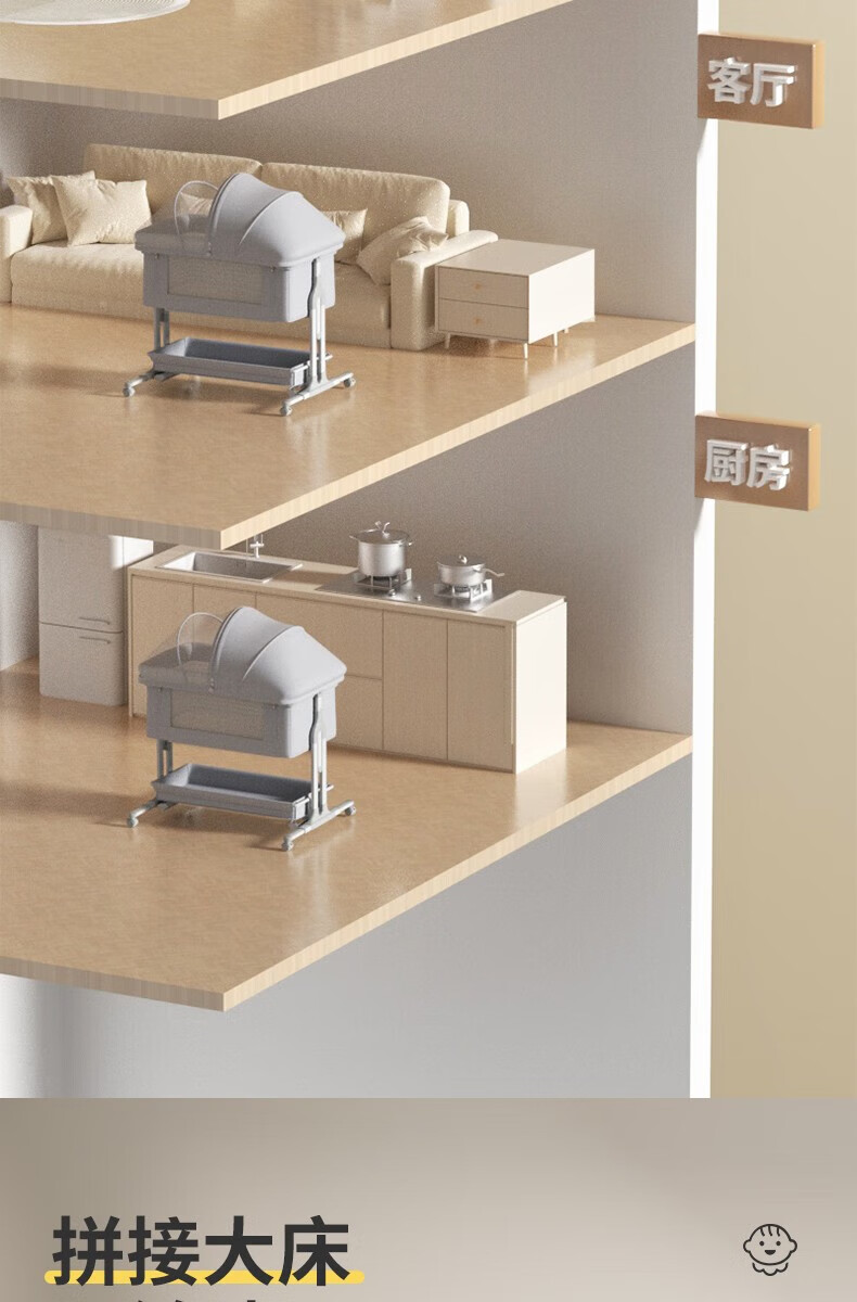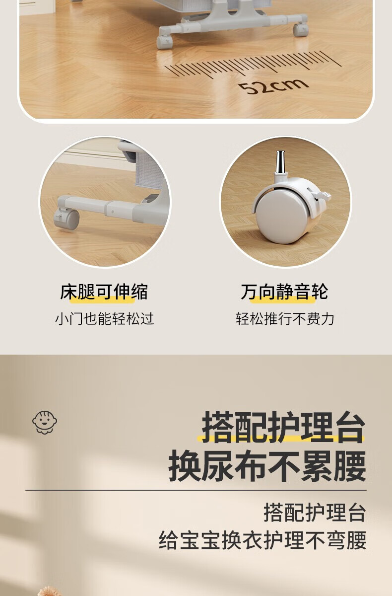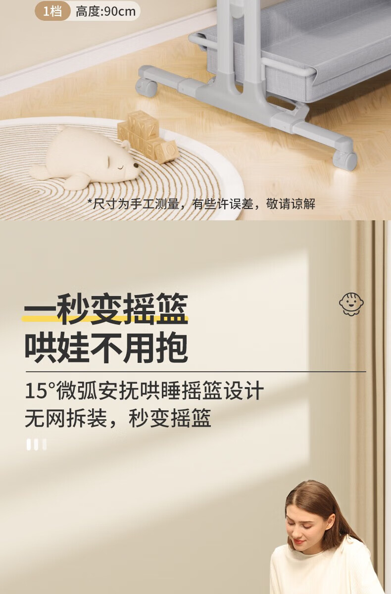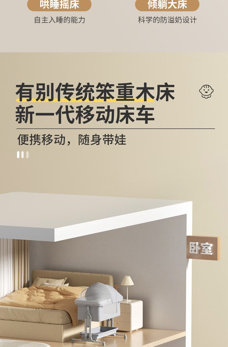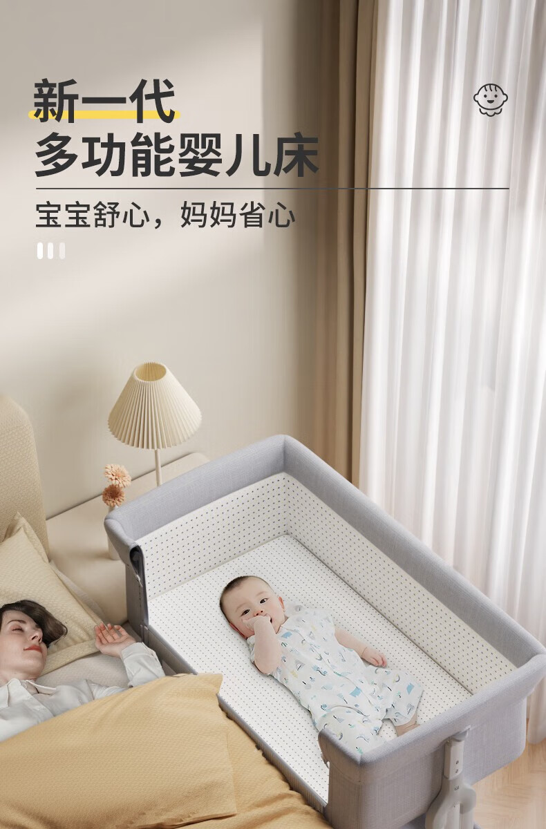 Trimigo crib removable splicing large bed baby multi-functional folding sleeping light gray + electric rocking chair four-wheel universal + mosquito net