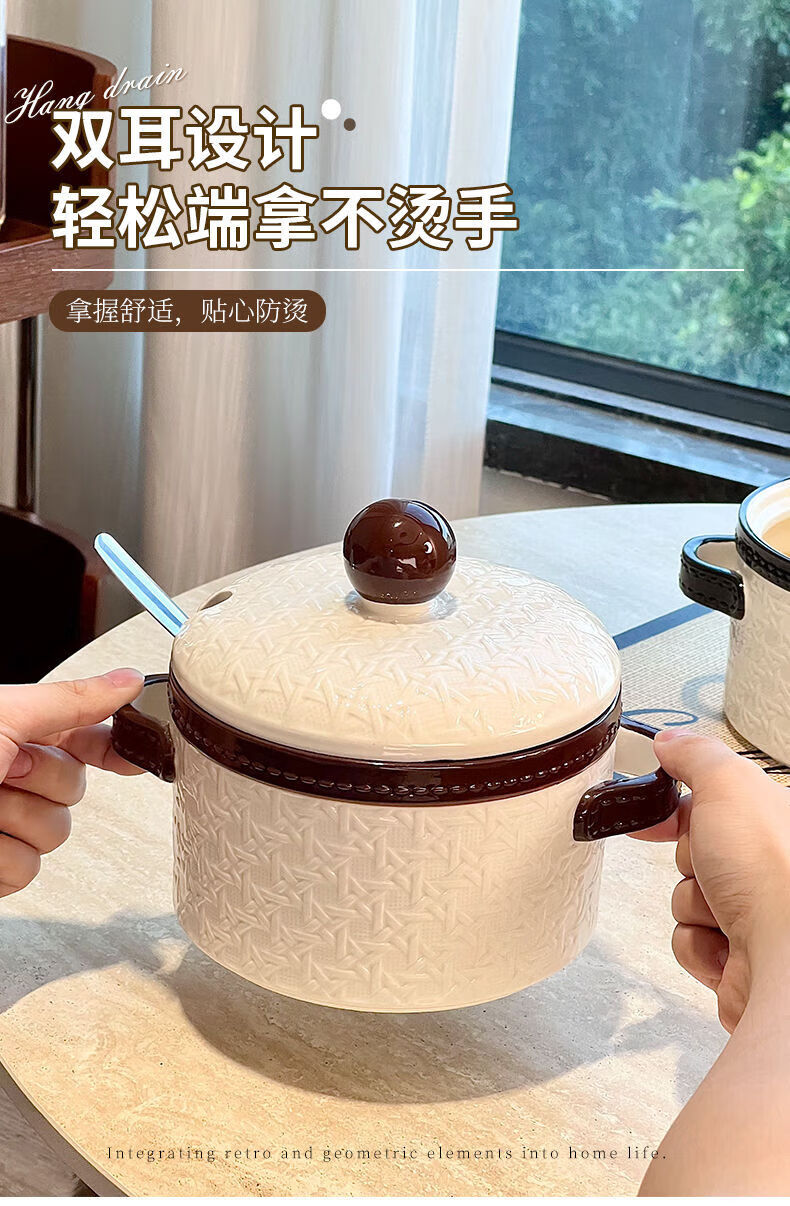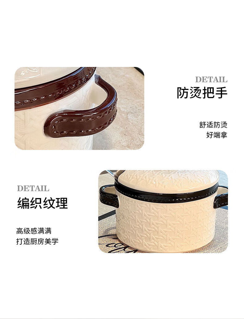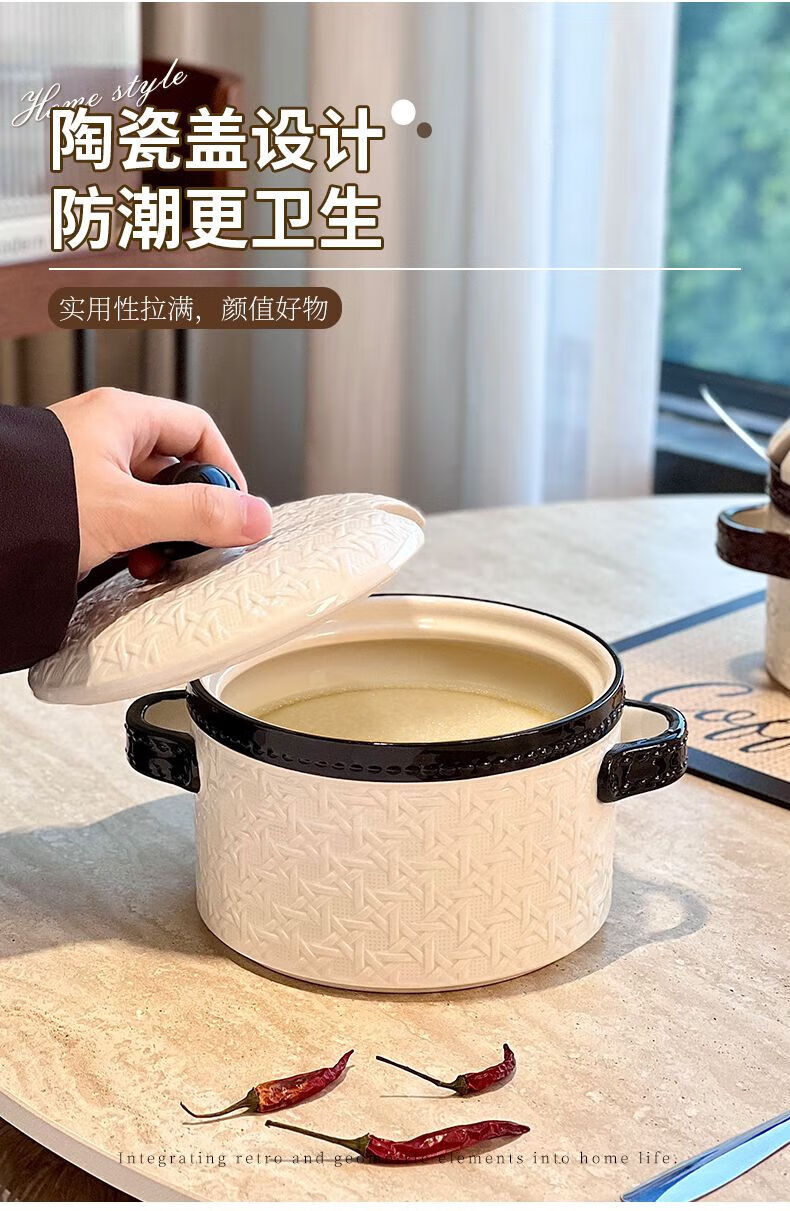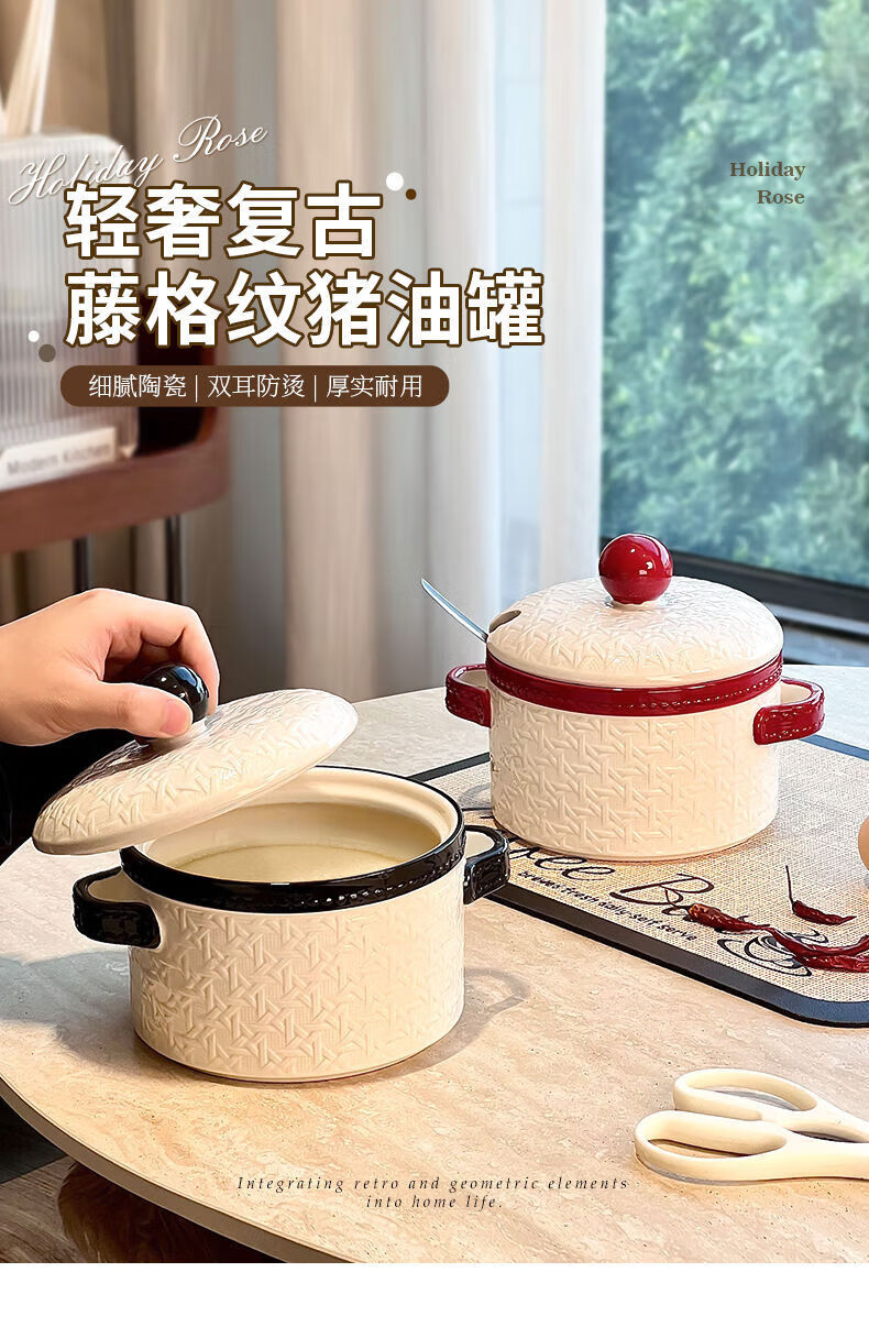 FANCYCHIC lard jar household kitchen ceramic high temperature resistant large capacity braided meat oil jar with lid braided lard jar 1.2L black with spoon no Specifications