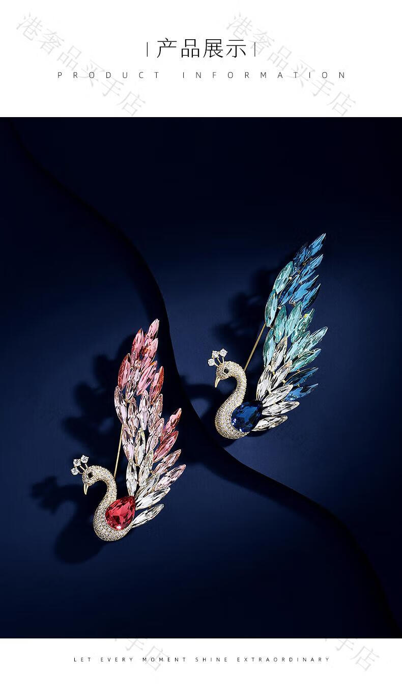 MEXNIA High-End Luxury Jewelry Swan Dance Brooch Women's Niche Design Corsage Exquisite Fashion Crystal Pin Swan Dance Sea and Sky Blue