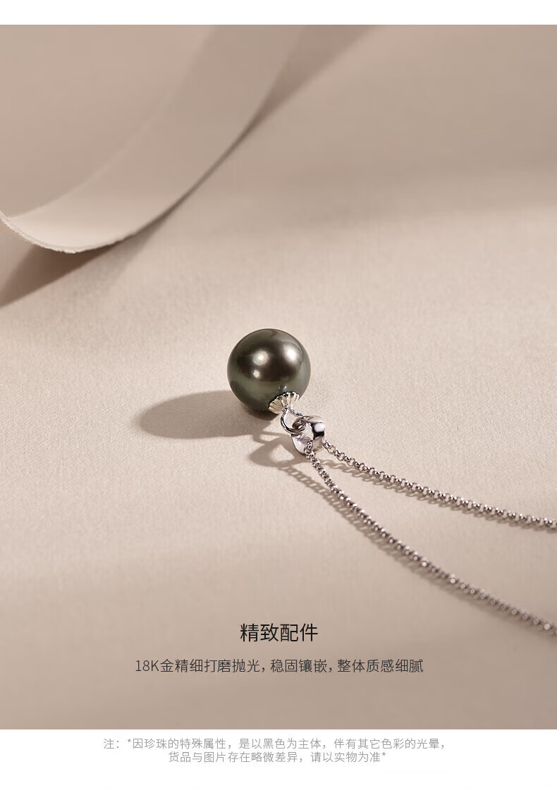 Huanyuanyang Stardust Gold Seawater Pearl Pendant Black Pearl Necklace Temperament Clavicle Chain Day Gift for Girls 8.5-9mm
