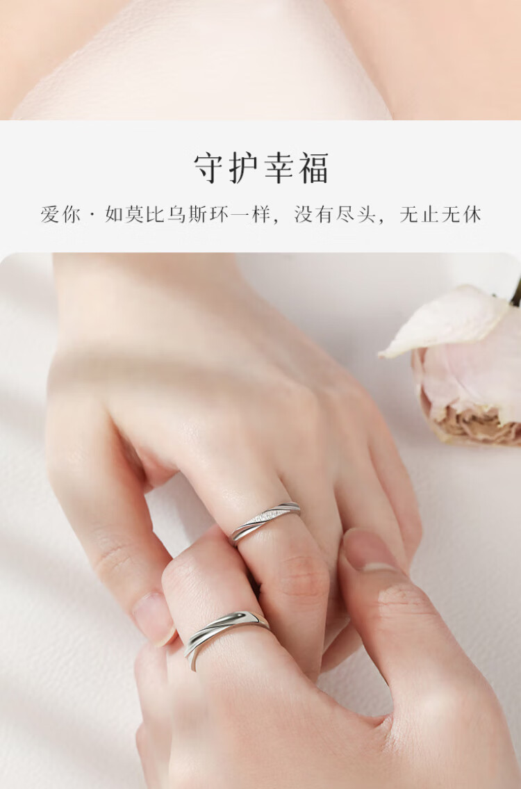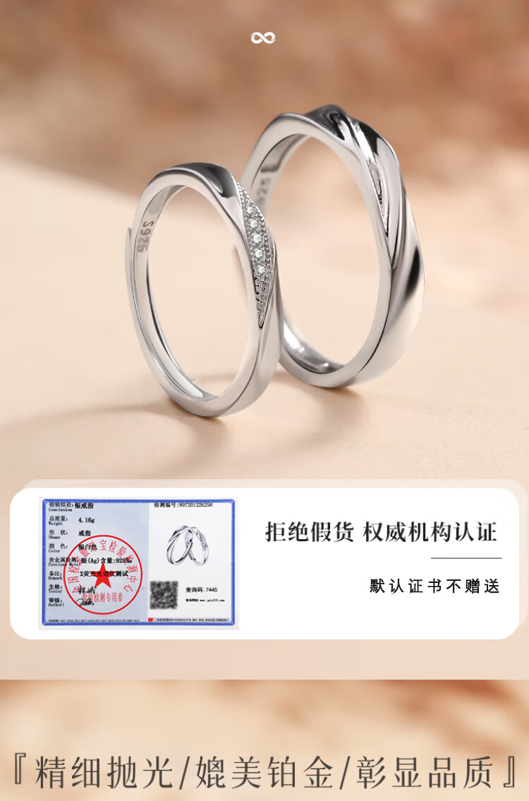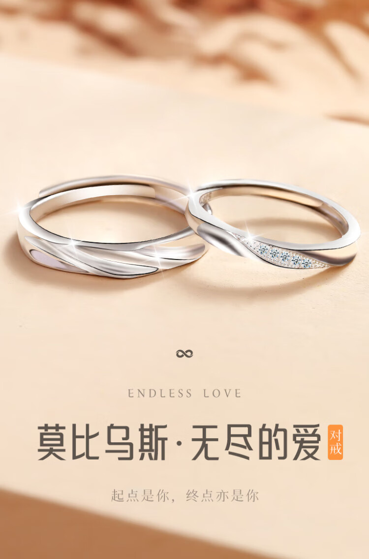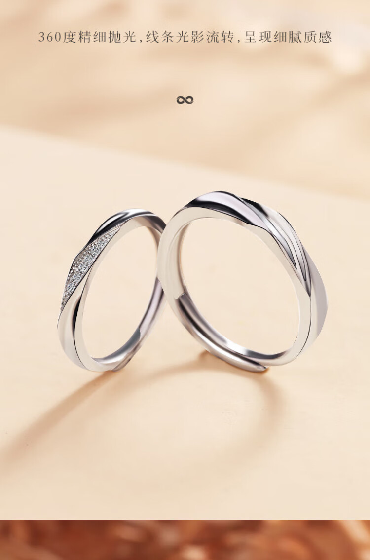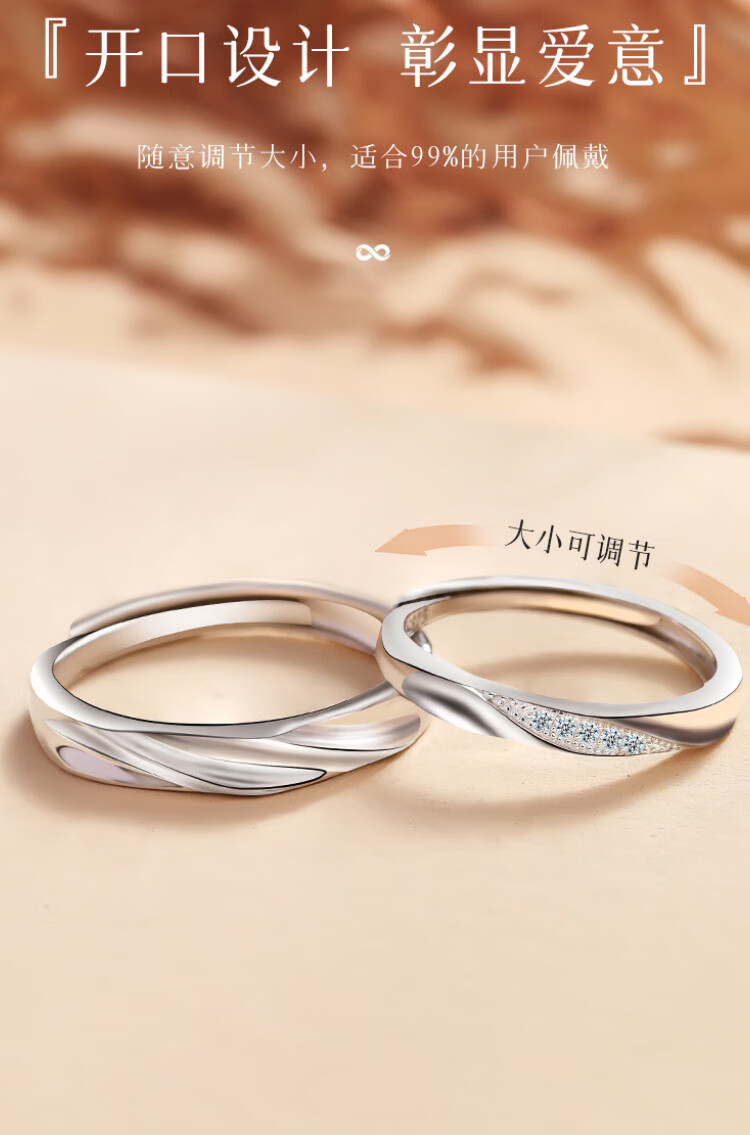 Mansheng S999 Pure Silver Couple Ring Proposal Ring for Women Women's Wedding Flash Diamond Ring for Men Adjustable Light Luxury and High-level S999 Pure Silver Love Together Ring for Women