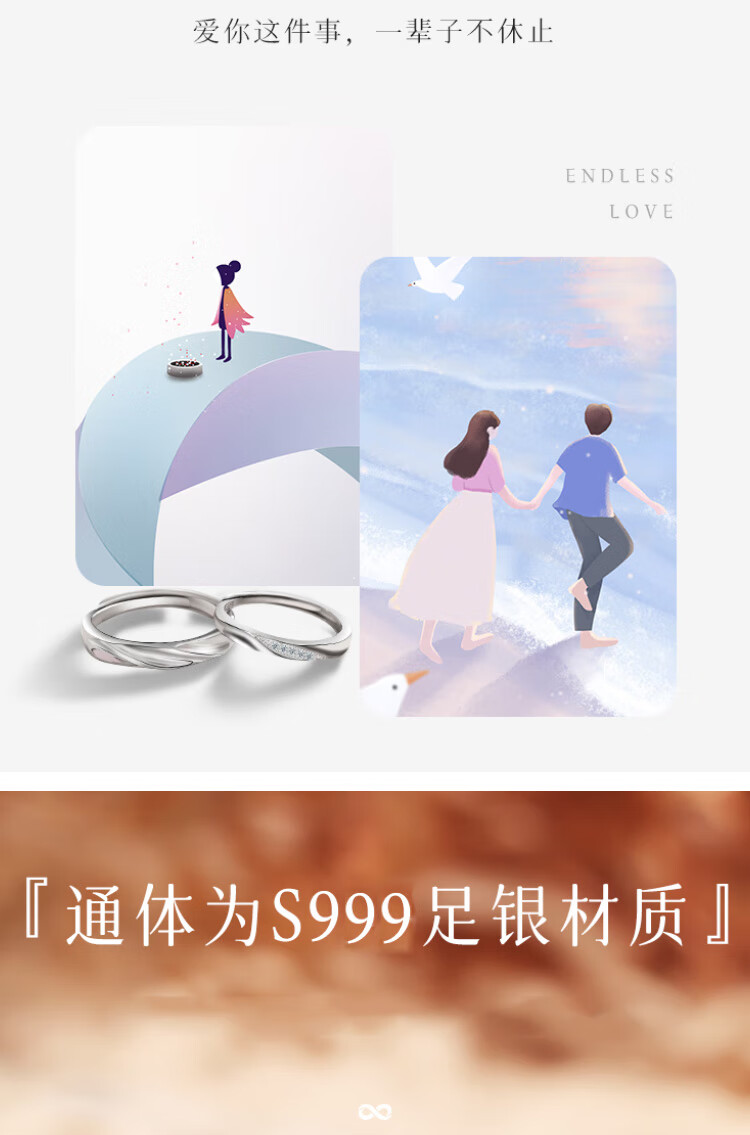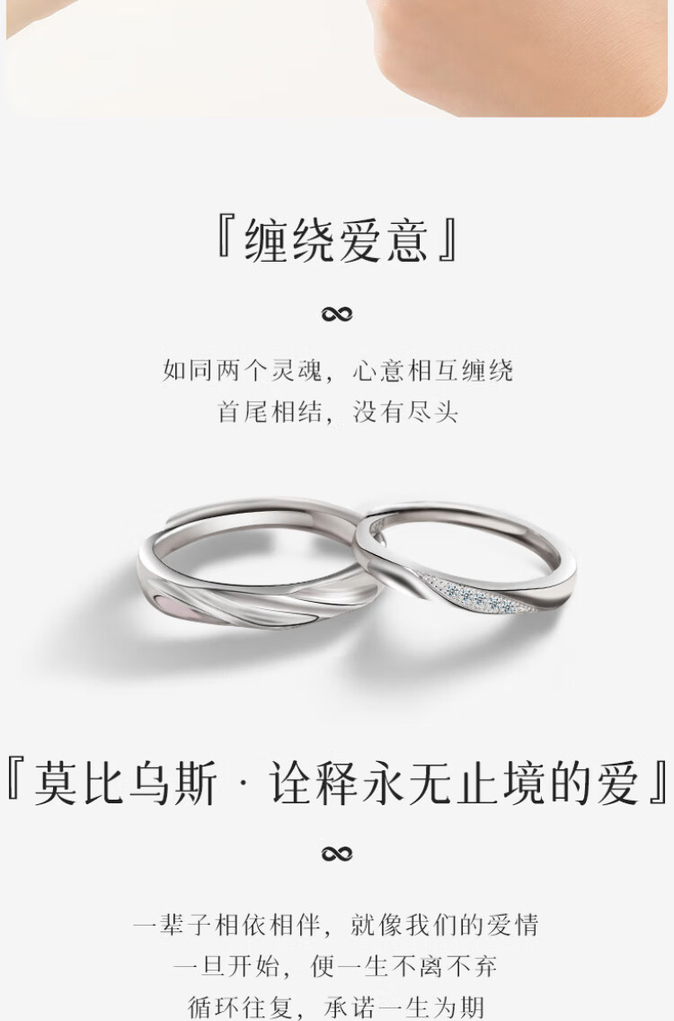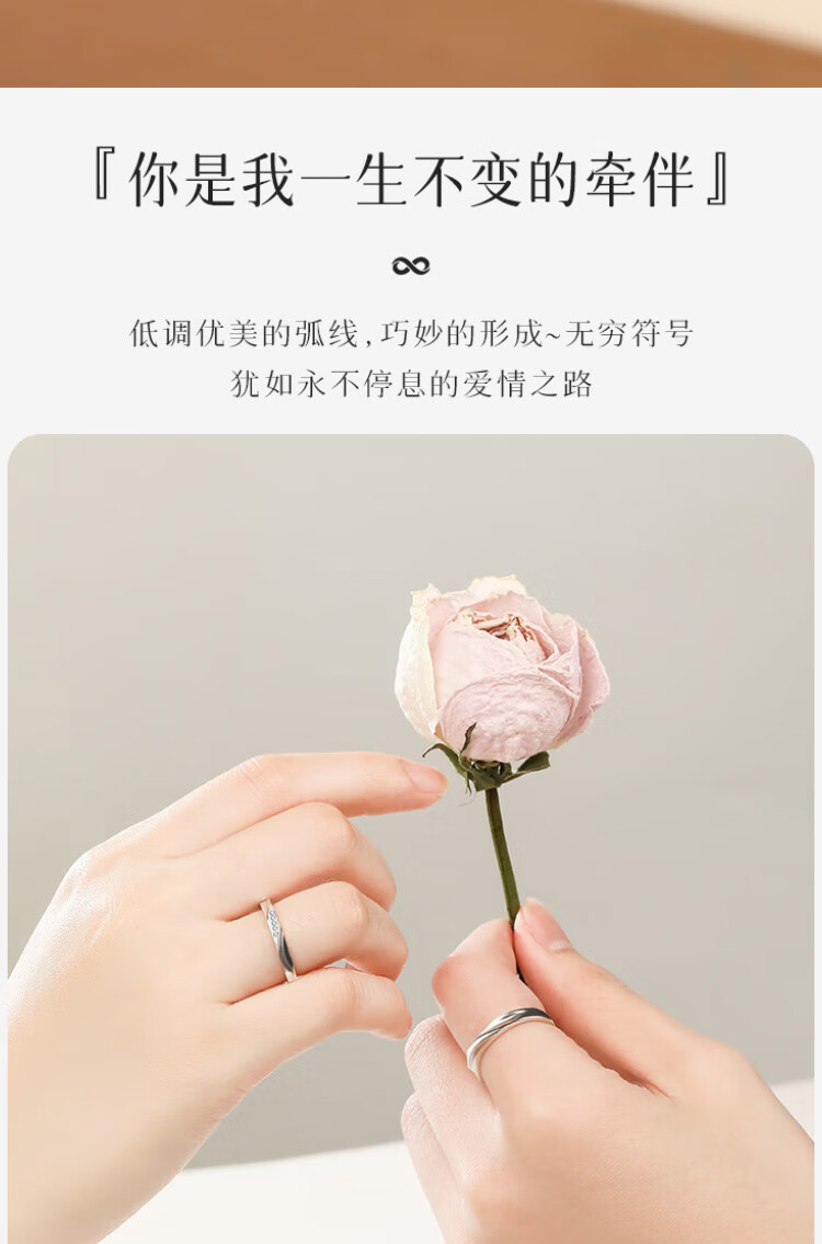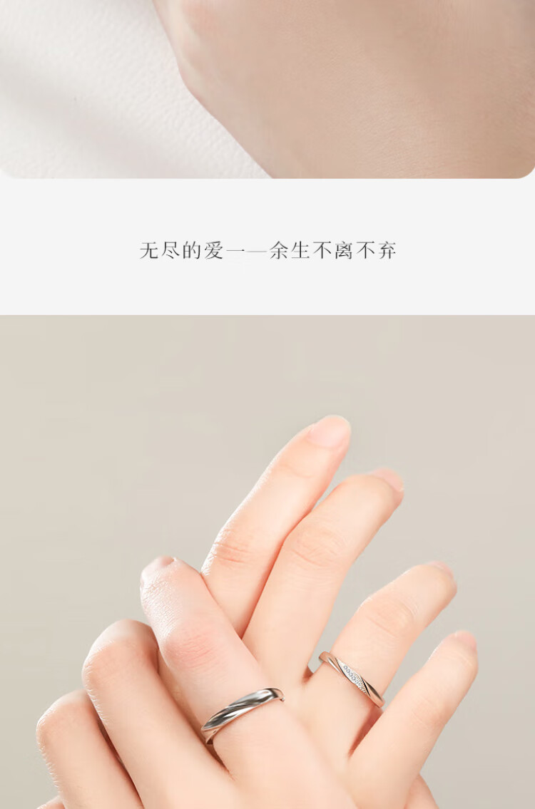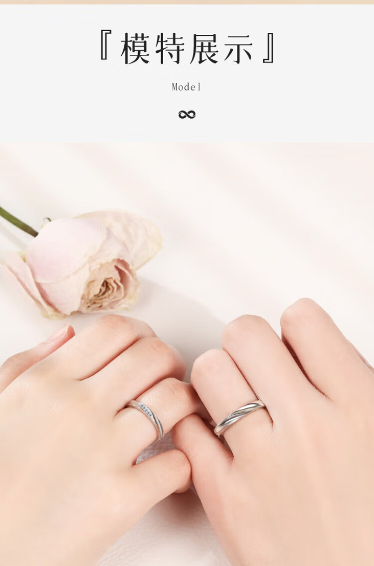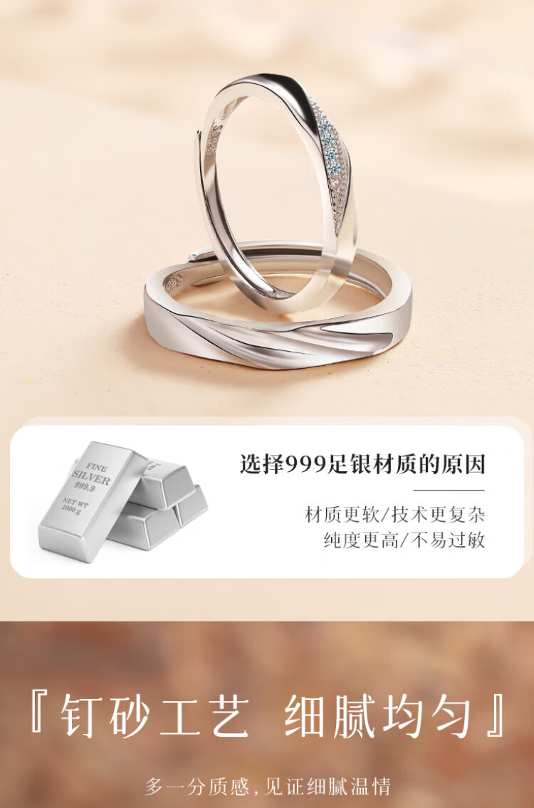 Mansheng S999 Pure Silver Couple Ring Proposal Ring for Women Women's Wedding Flash Diamond Ring for Men Adjustable Light Luxury and High-level S999 Pure Silver Love Together Ring for Women