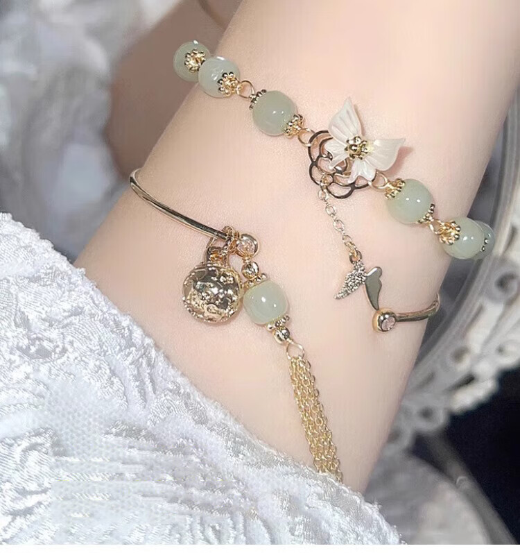 Thumb Rabbit two-piece set of butterfly bracelets for girls, new Chinese style, niche, versatile, cool, ancient style bracelets, hand accessories, bestie bracelets, butterfly shadow bracelet + bracelet
