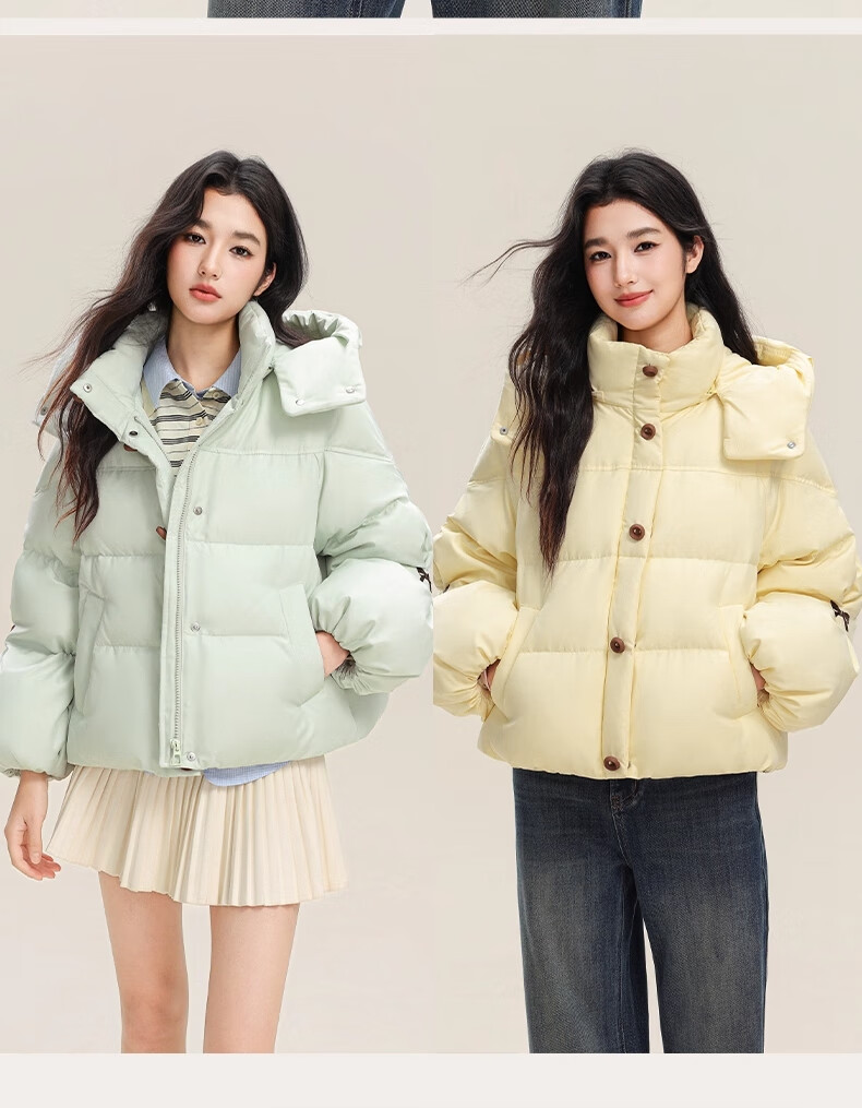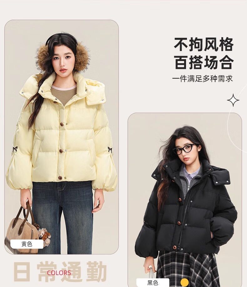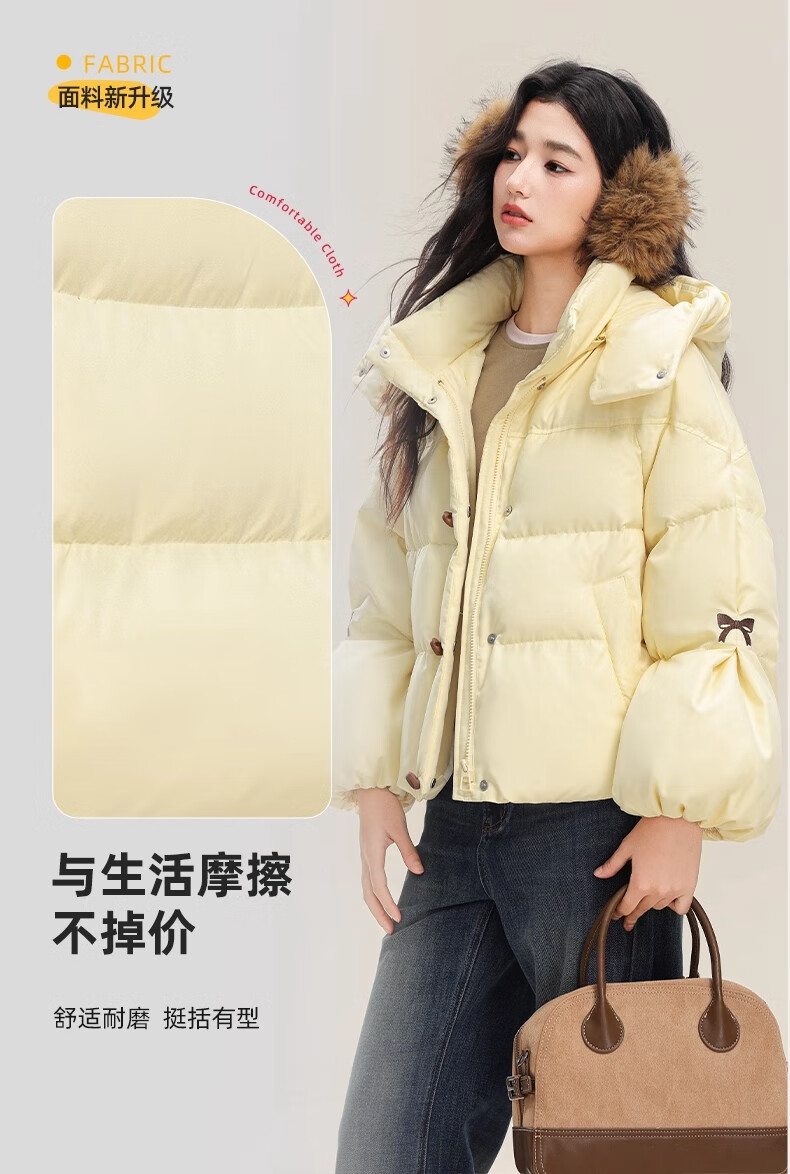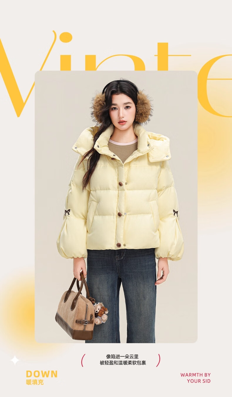 YAYA (YAYA) down jacket for women 2025 winter new style short fashion sweet cloud puff little thickened warm jacket yellow S /155 80-110Jin Jin is equal to 0.5 kg