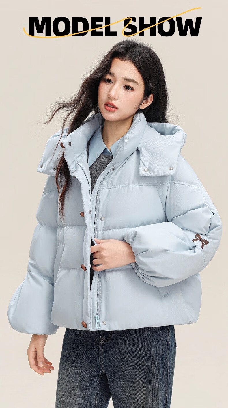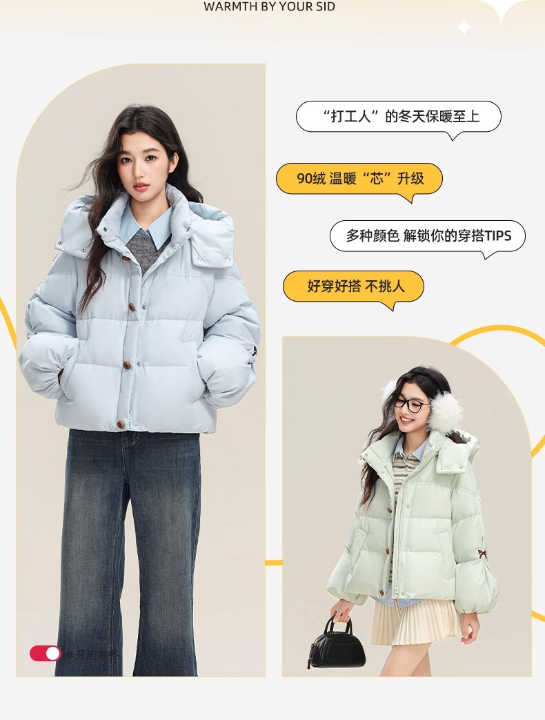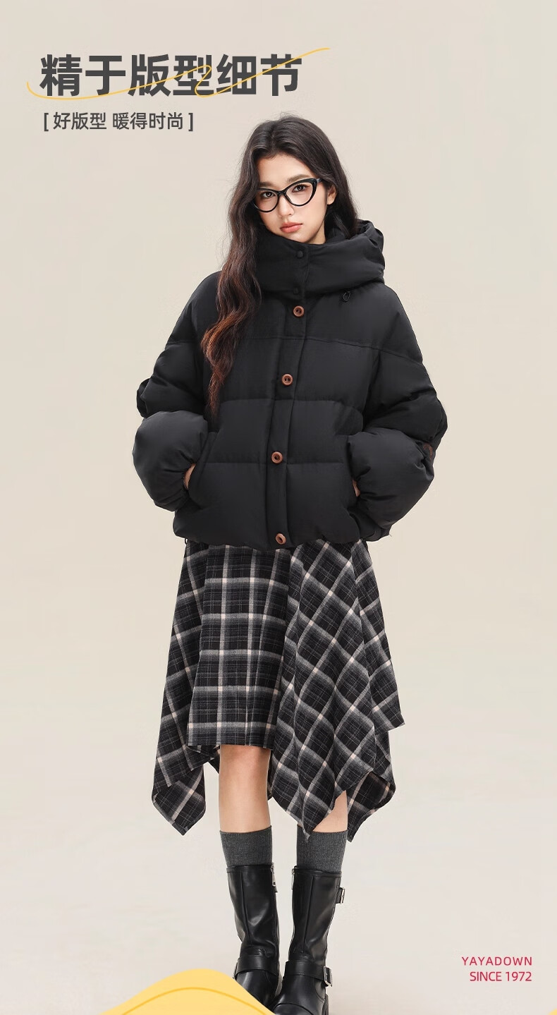 YAYA (YAYA) down jacket for women 2025 winter new style short fashion sweet cloud puff little thickened warm jacket yellow S /155 80-110Jin Jin is equal to 0.5 kg