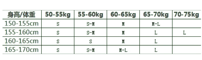 China (cm) 160-165/84-86 165-170 / 88-90 167-172 / 92-96 168-173 / 98-102 170-176 / 106-110