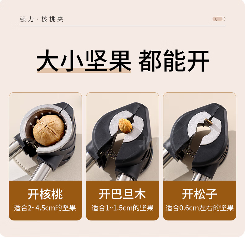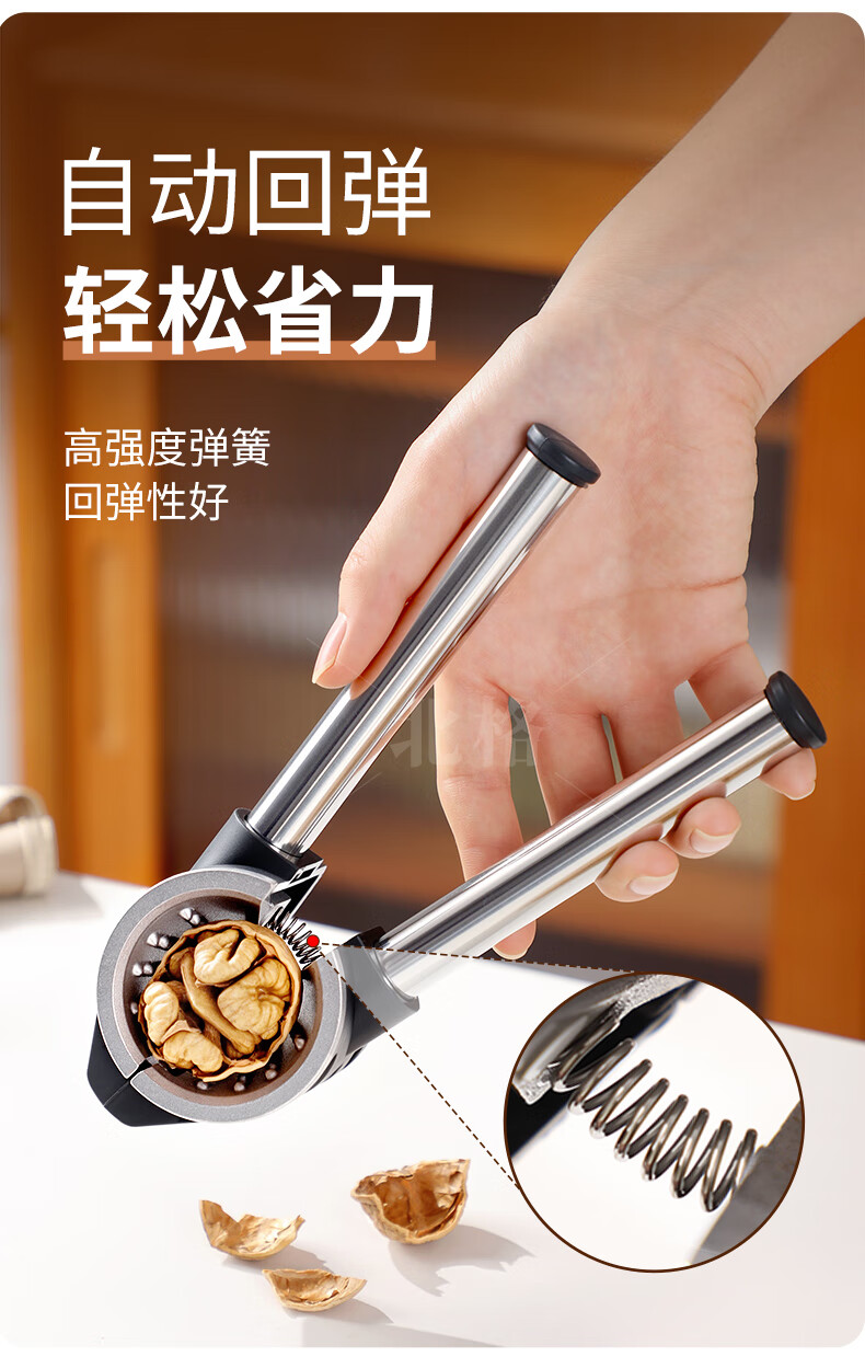 Beige walnut clamp, walnut opener, walnut cracker opener, multi-functional nut clamp, corer and peeler, fog ash clamp, easy to open the shell without splashing