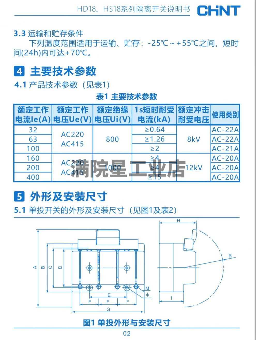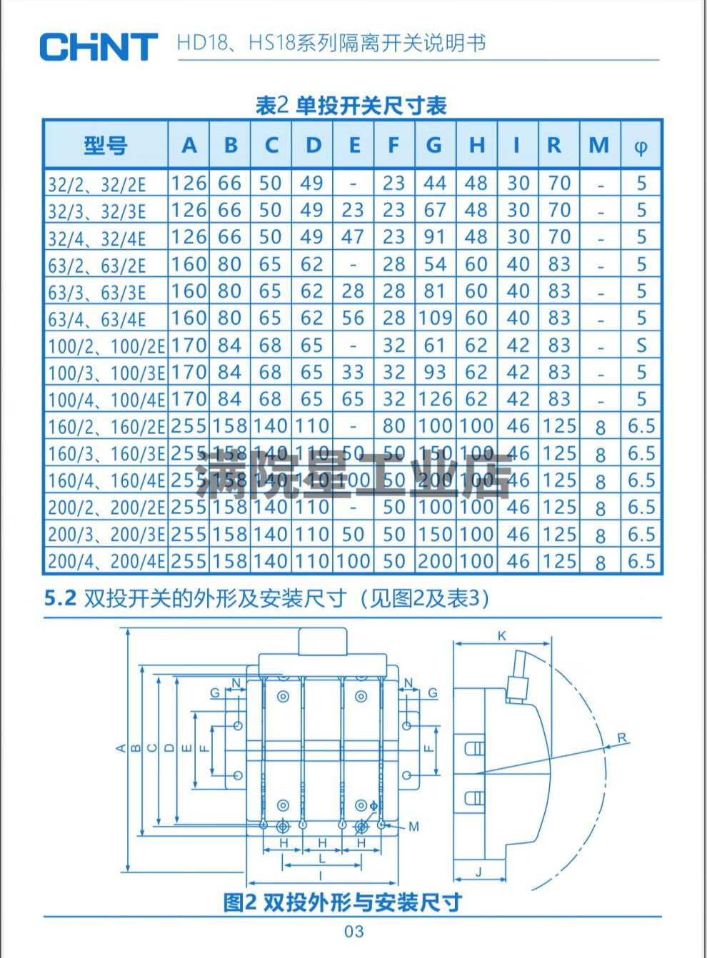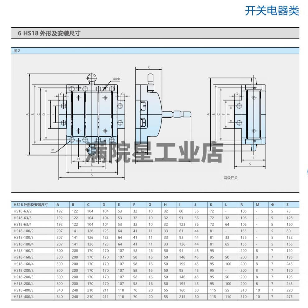 Chint double-throw knife switch bilateral knife switch double-head two-way knife switch 2P three-phase 3P63A100A200 HS18-63_4 4P_63A double-head knife switch
