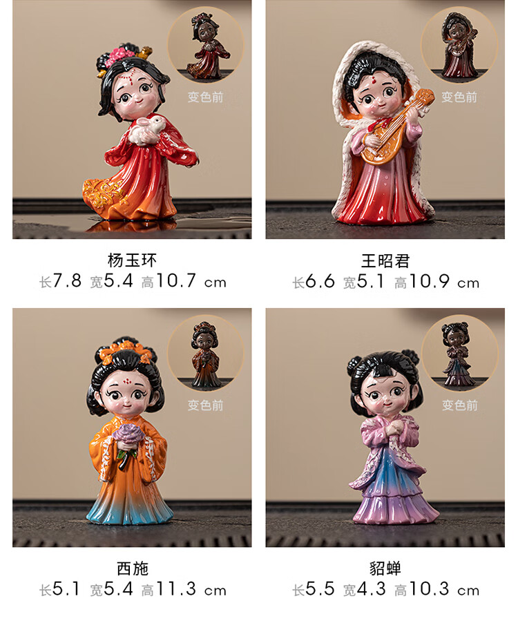Yuxuan's Four Beauties Color Changing Tea Pets Can Raise Characters Xi Shi Tea Table Ornaments Yang Yuhuan Diao Chan Wang Zhaojun Han Clothing National Trend Wang Zhaojun - Color Changing Model