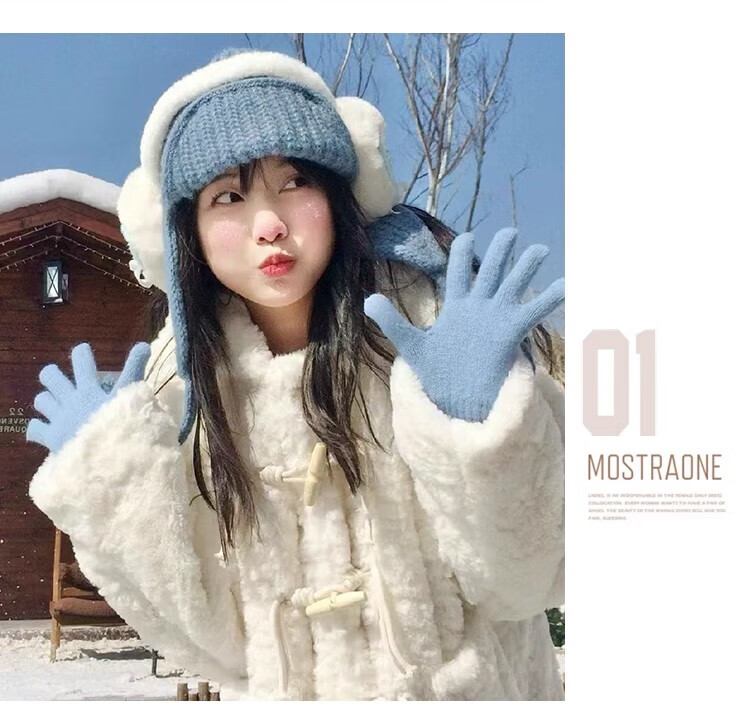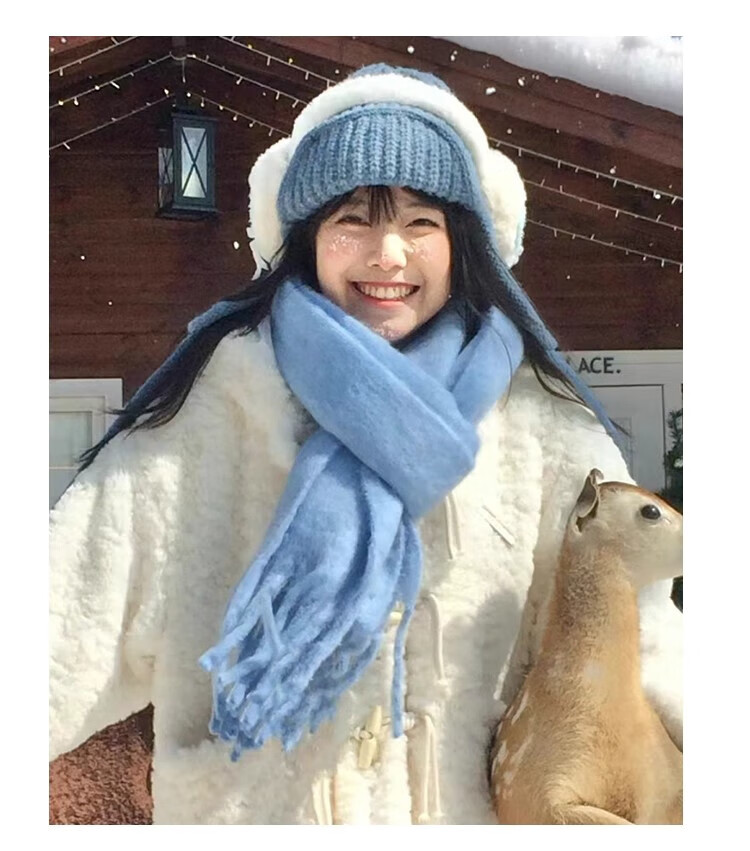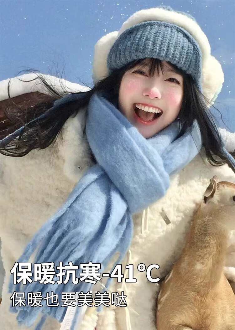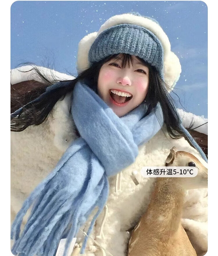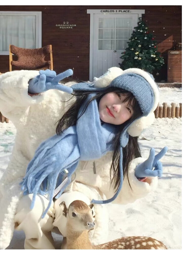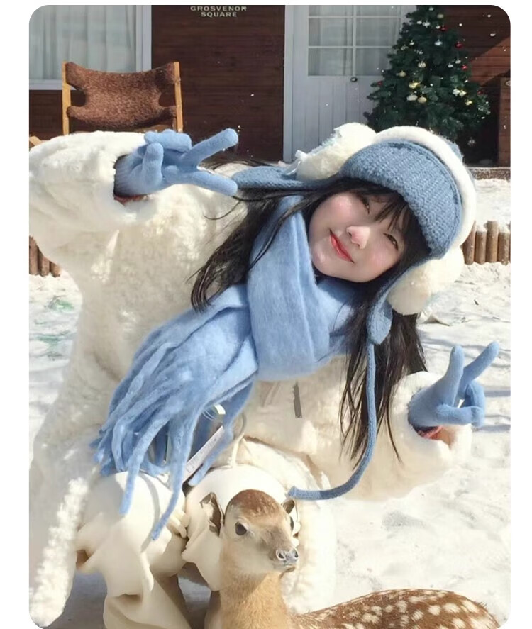 Yu Yaman Blue Scarf Gloves Winter Women's 2025 New Windproof, Antifreeze Warm Scarf, High-end Smog Blue Harbin Light Blue Gloves + Smog Blue Scarf Travel Two-piece Set