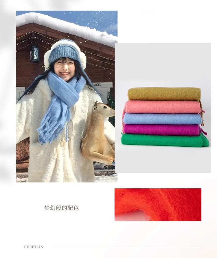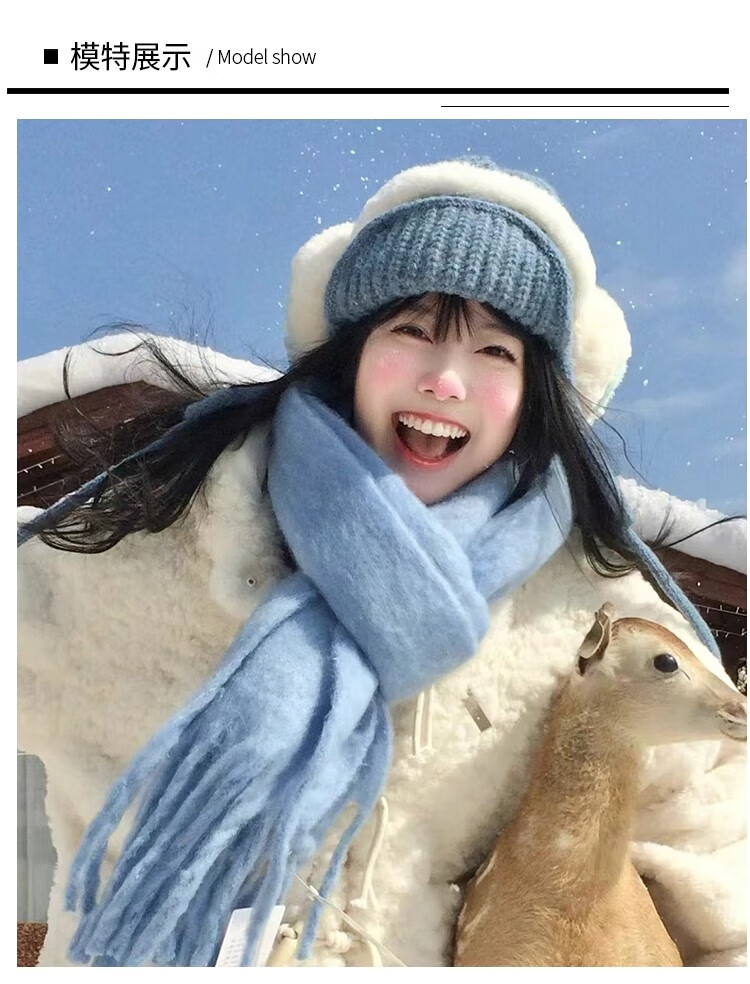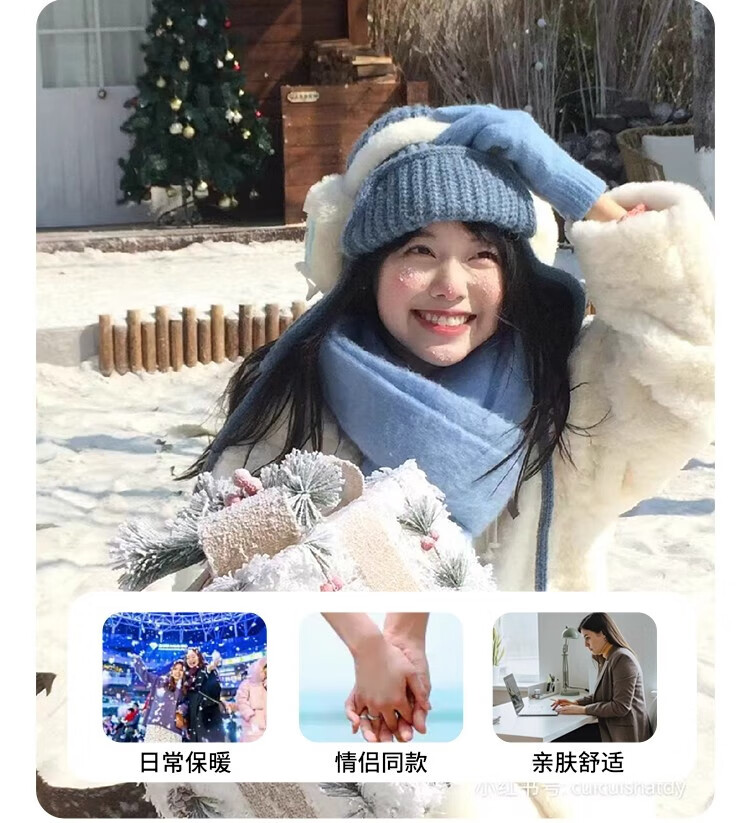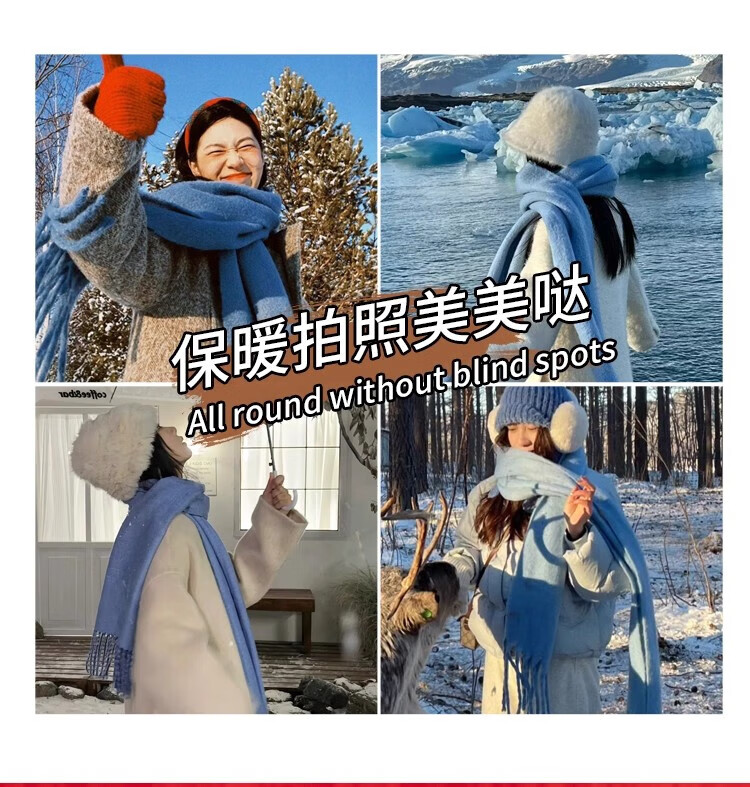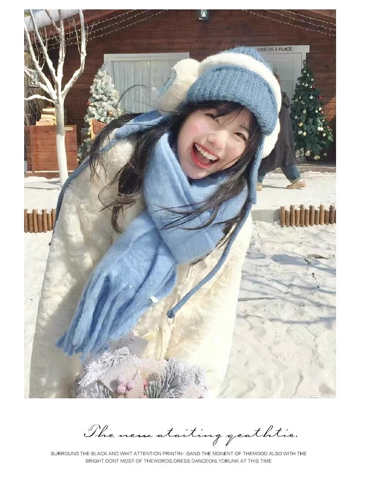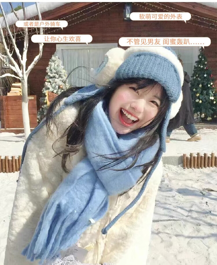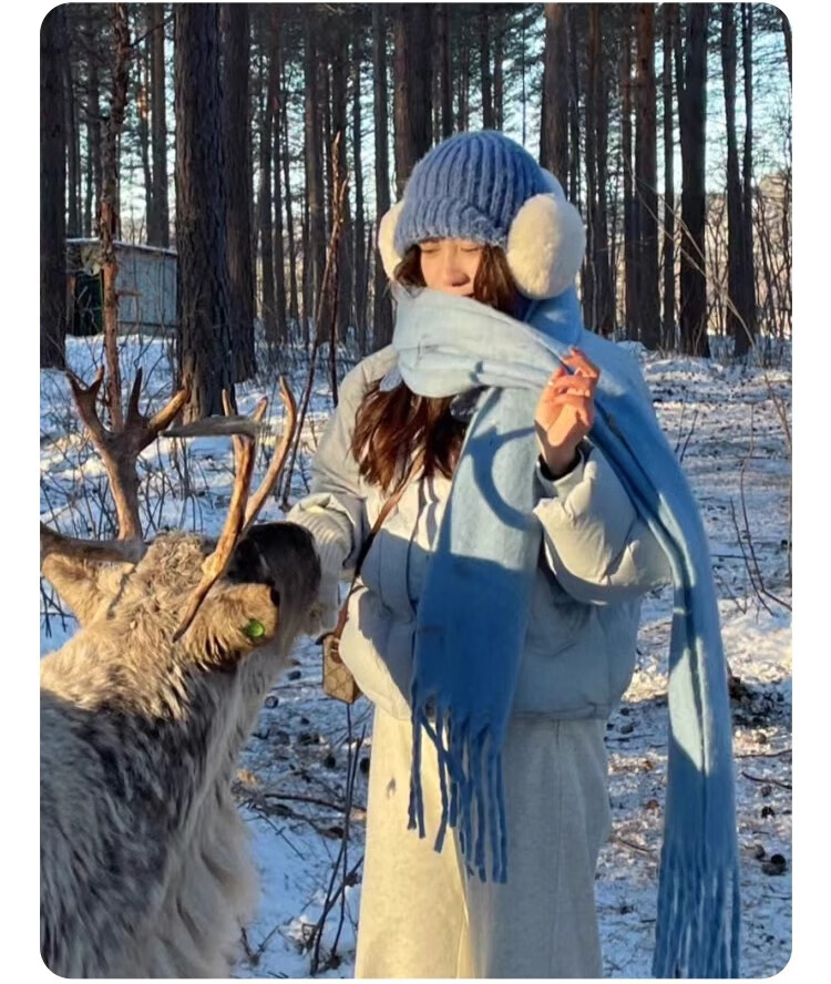 Yu Yaman Blue Scarf Gloves Winter Women's 2025 New Windproof, Antifreeze Warm Scarf, High-end Smog Blue Harbin Light Blue Gloves + Smog Blue Scarf Travel Two-piece Set