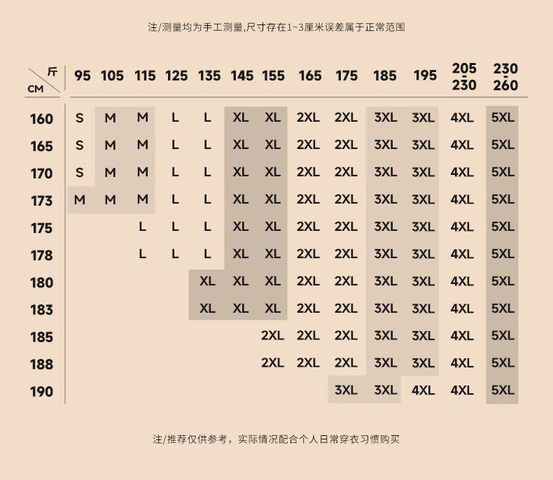 China (cm) 160-165/84-86 165-170 / 88-90 167-172 / 92-96 168-173 / 98-102 170-176 / 106-110