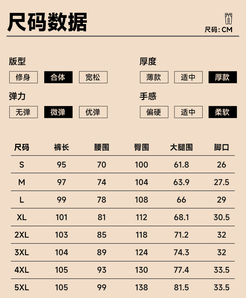 Outseam (cm) 99 cm 101.5 cm 104 cm 106.5 cm 109 cm
