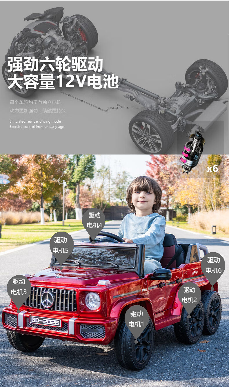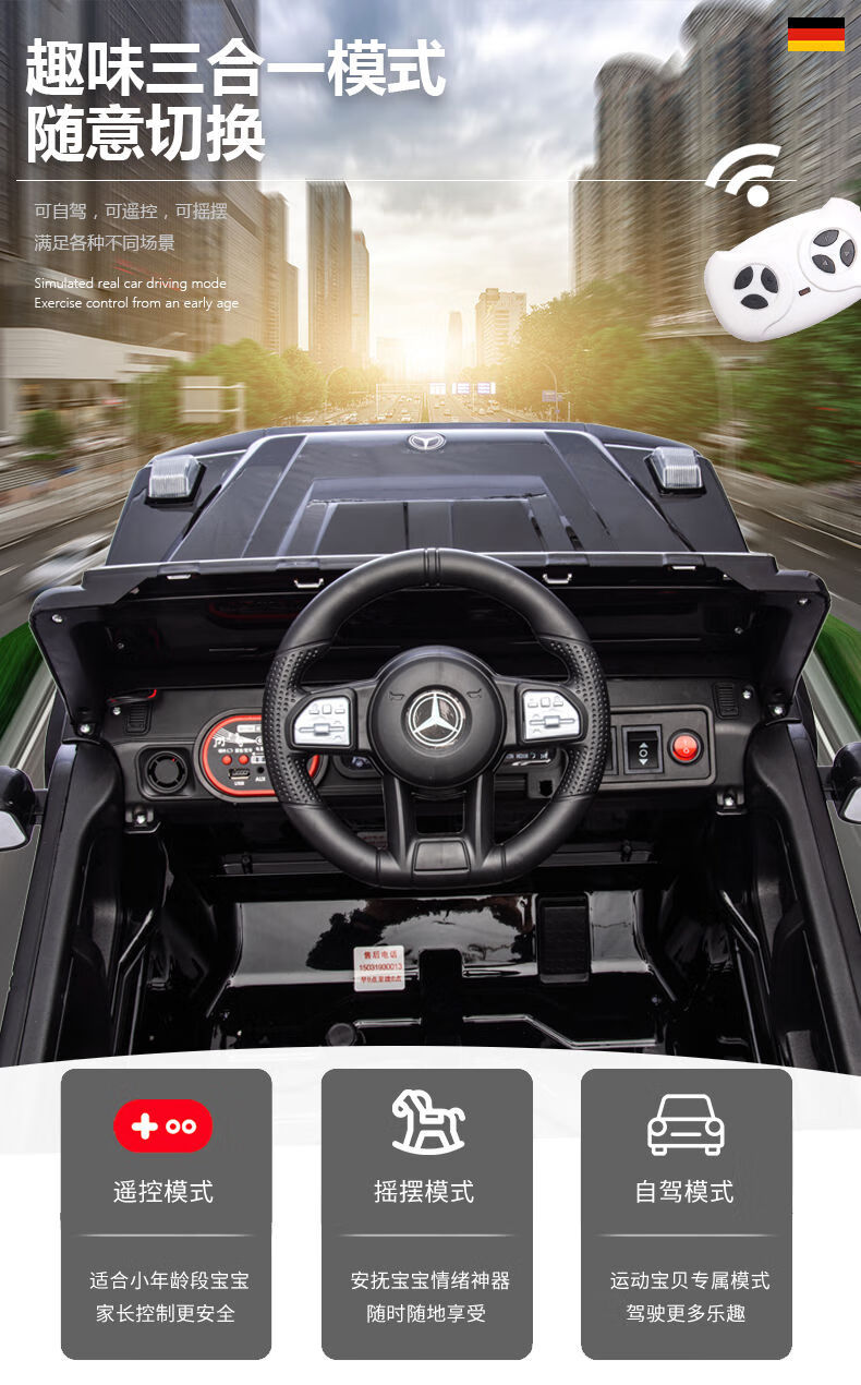 Other Homes Two-seater big G children's electric car four-wheel remote control car child off-road stroller baby toy car can seat adults parent-child ride together dual throttle black four-wheel drive Chaowei portable 12V703 electric drive + SF Express